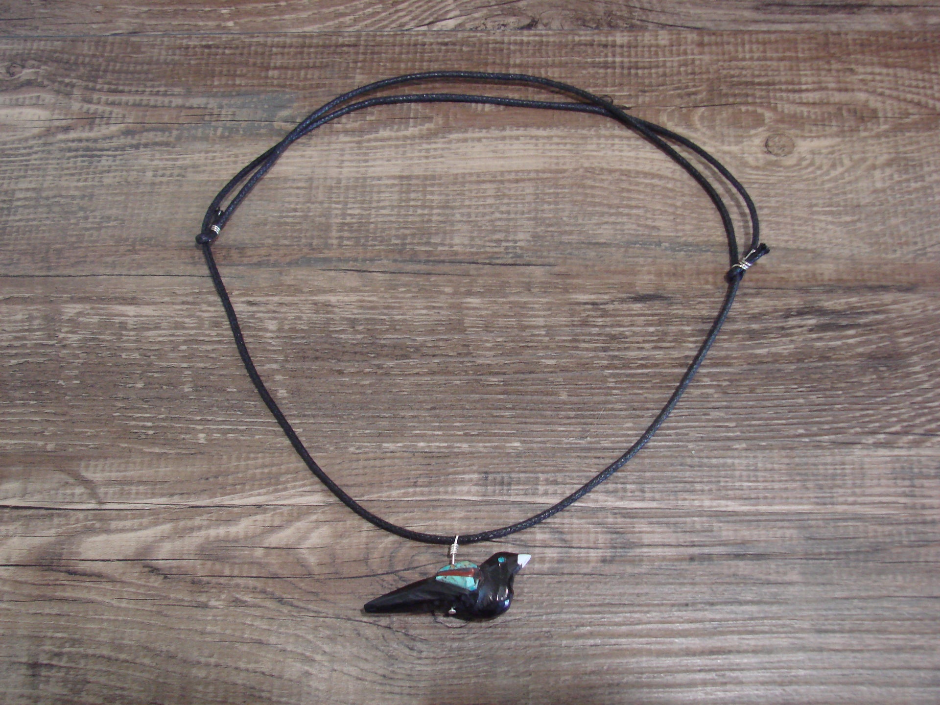 - Hand Carved Adjustable Jet Magpie Fetish Necklace by Matt Mitchell