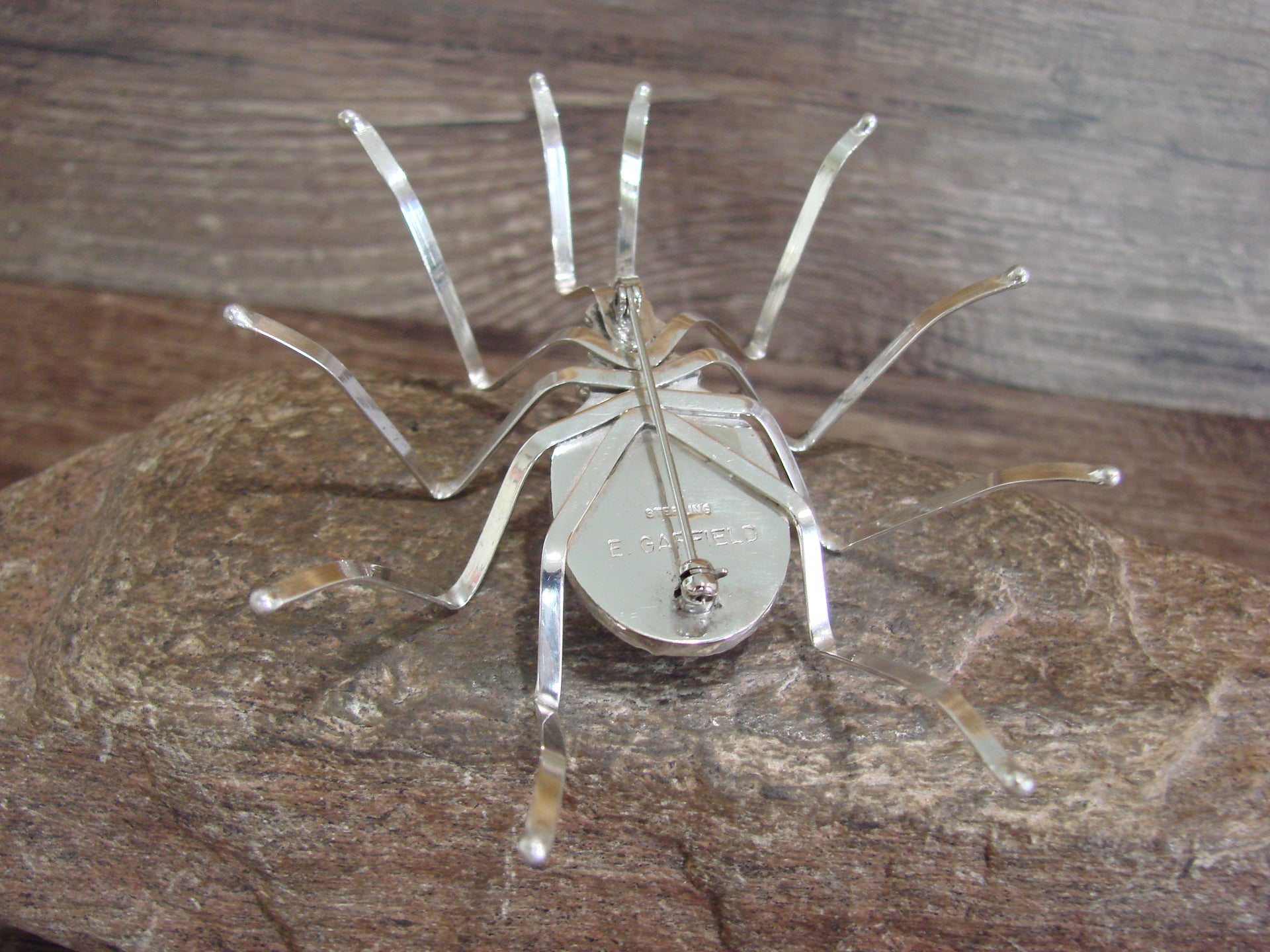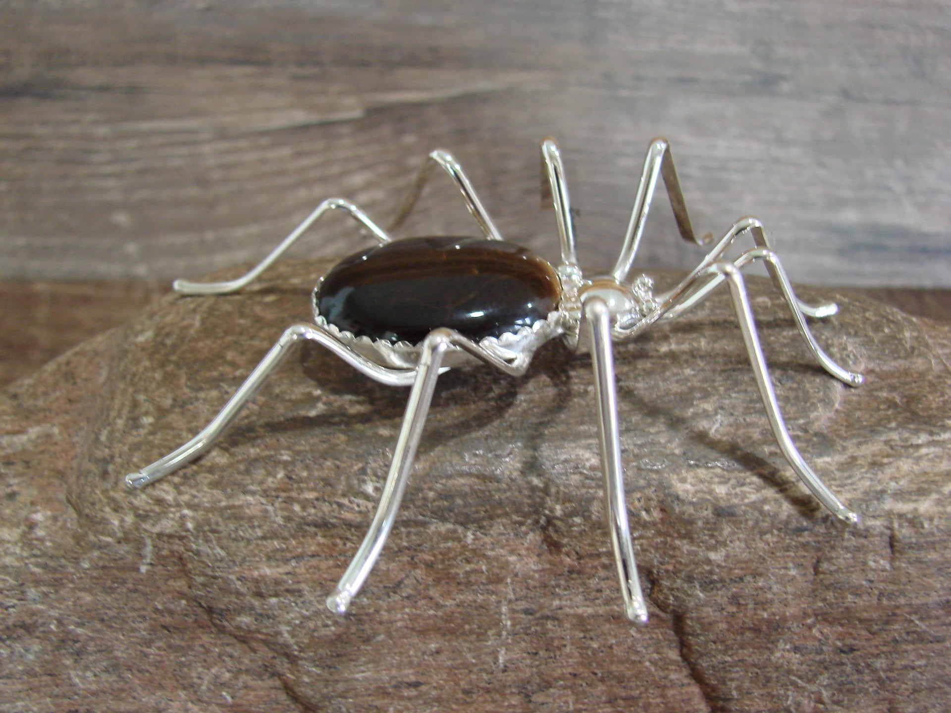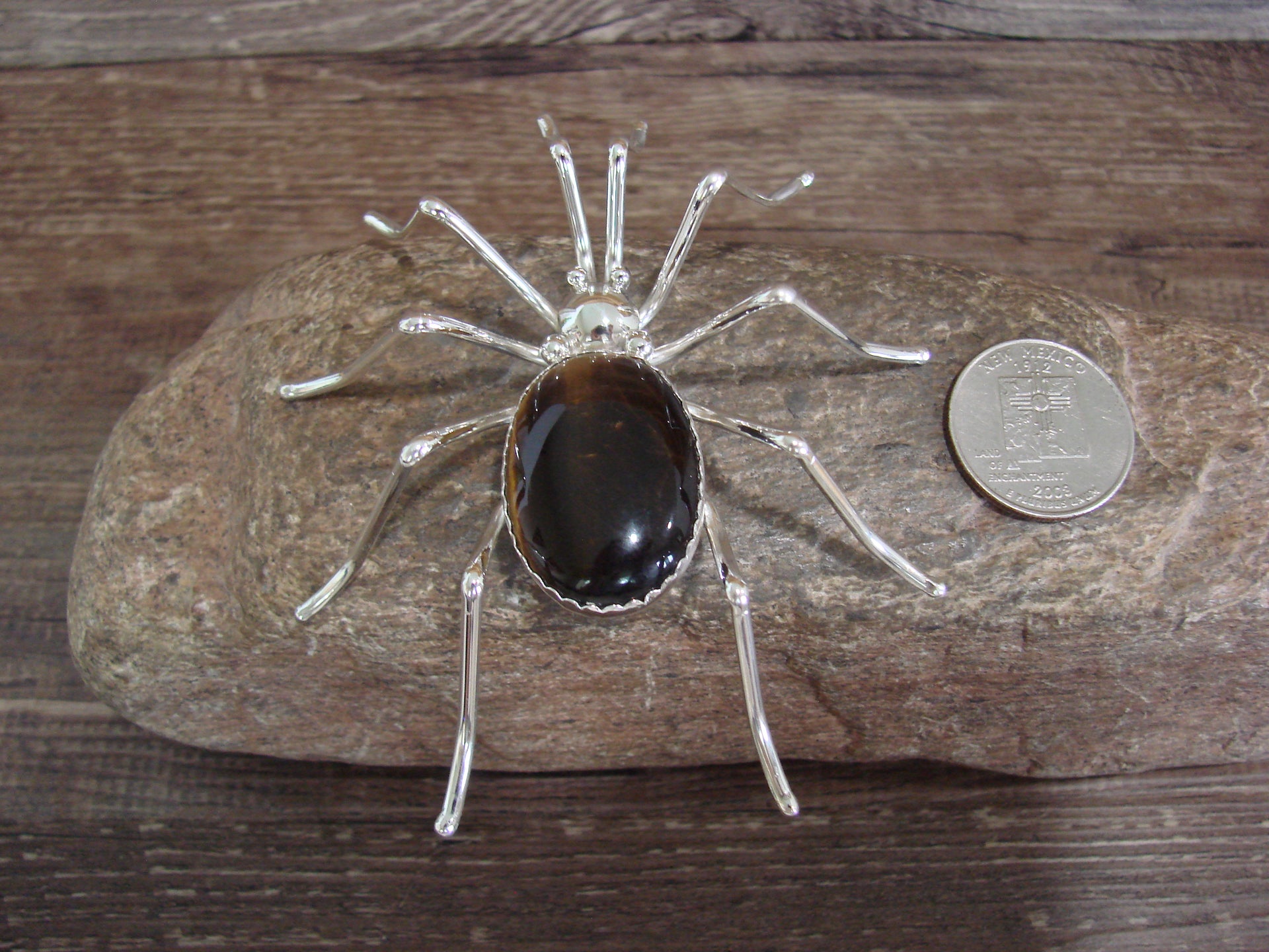 Large Native American Sterling Silver & Amber Spider Pin by Garfield