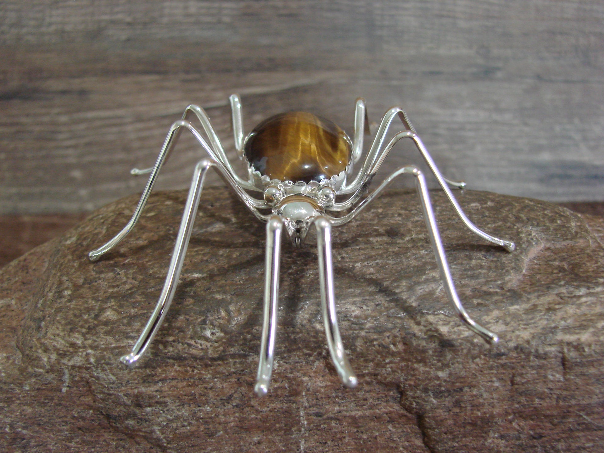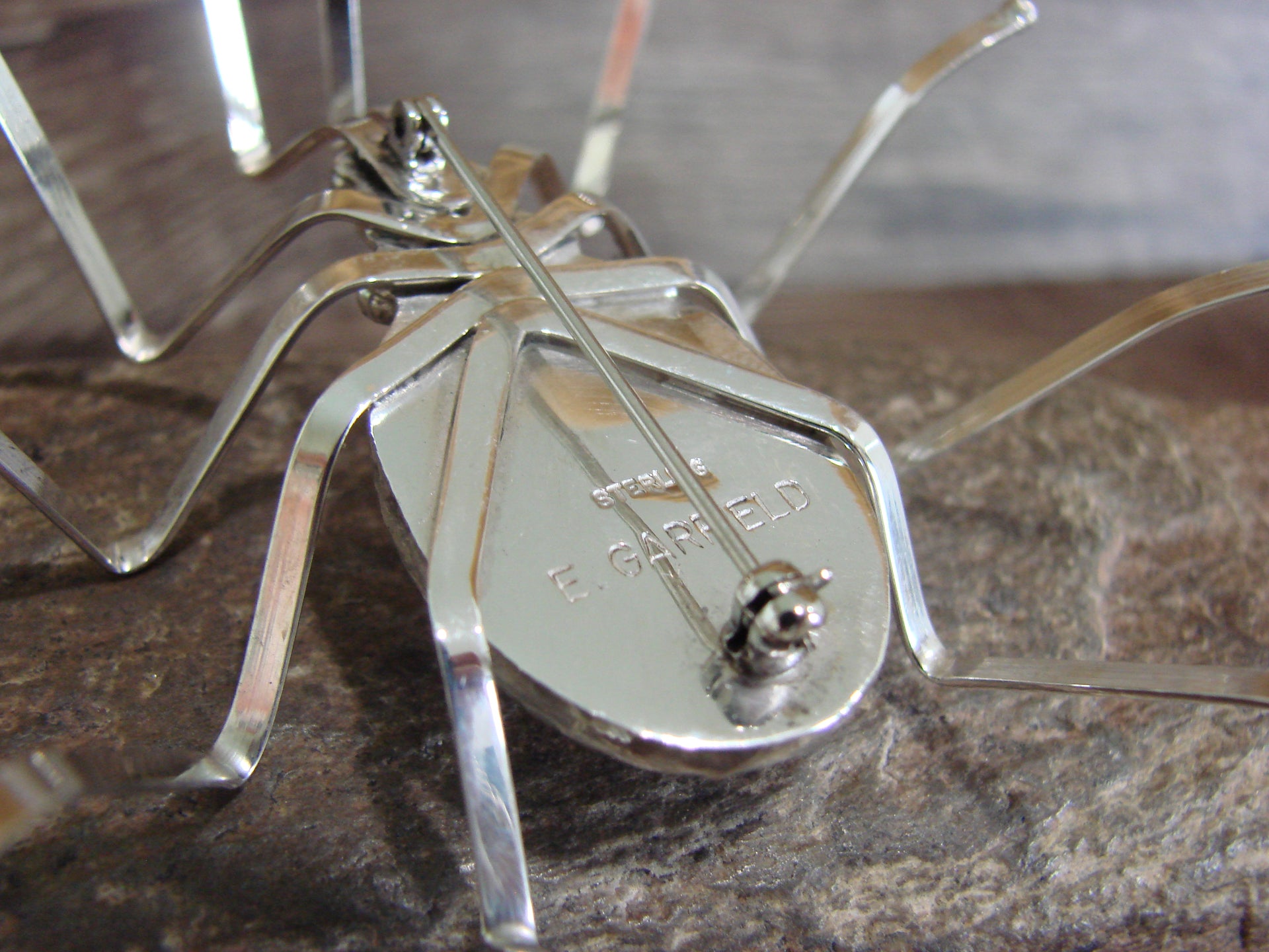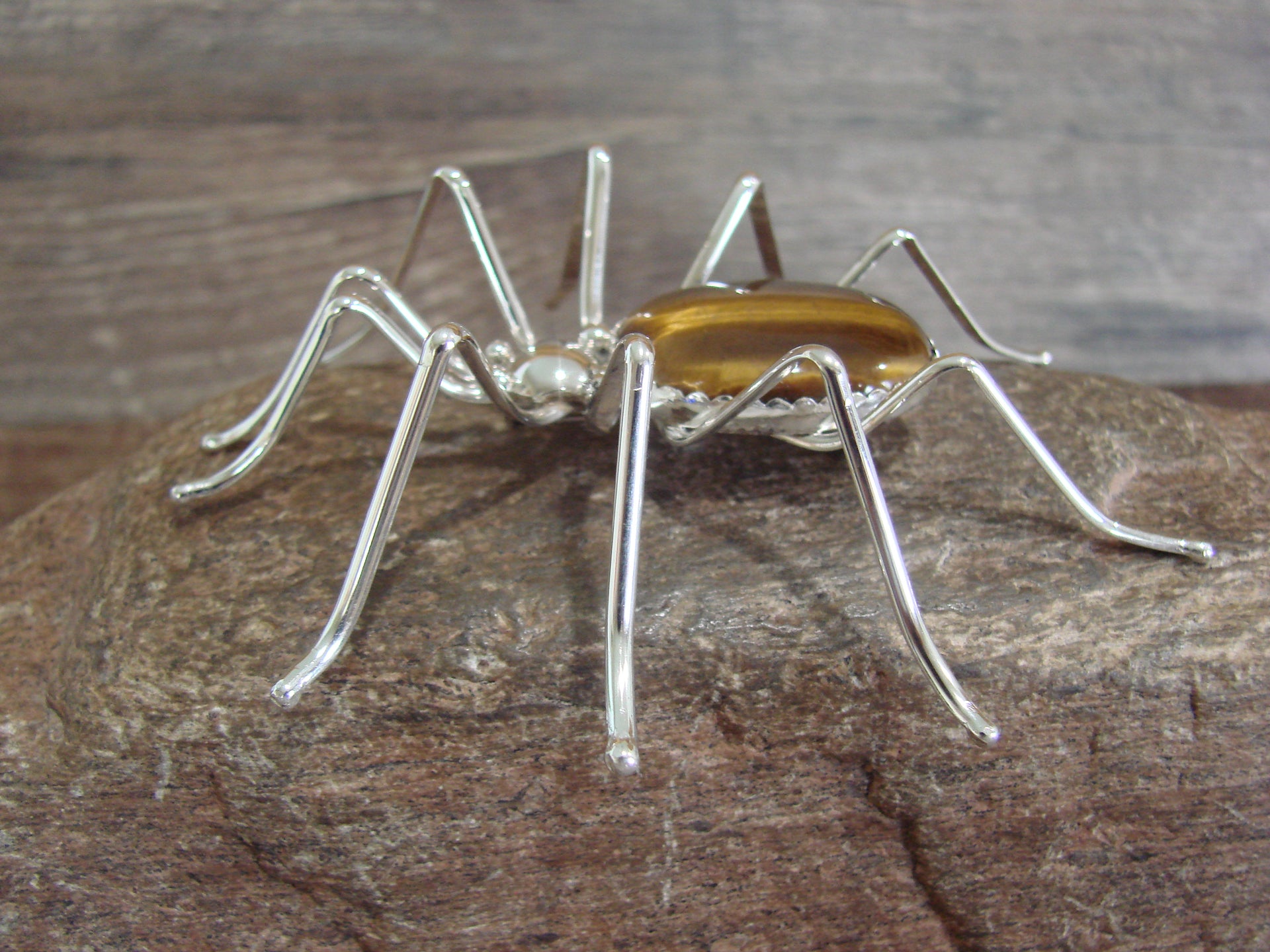 Large Native American Sterling Silver & Amber Spider Pin by Garfield