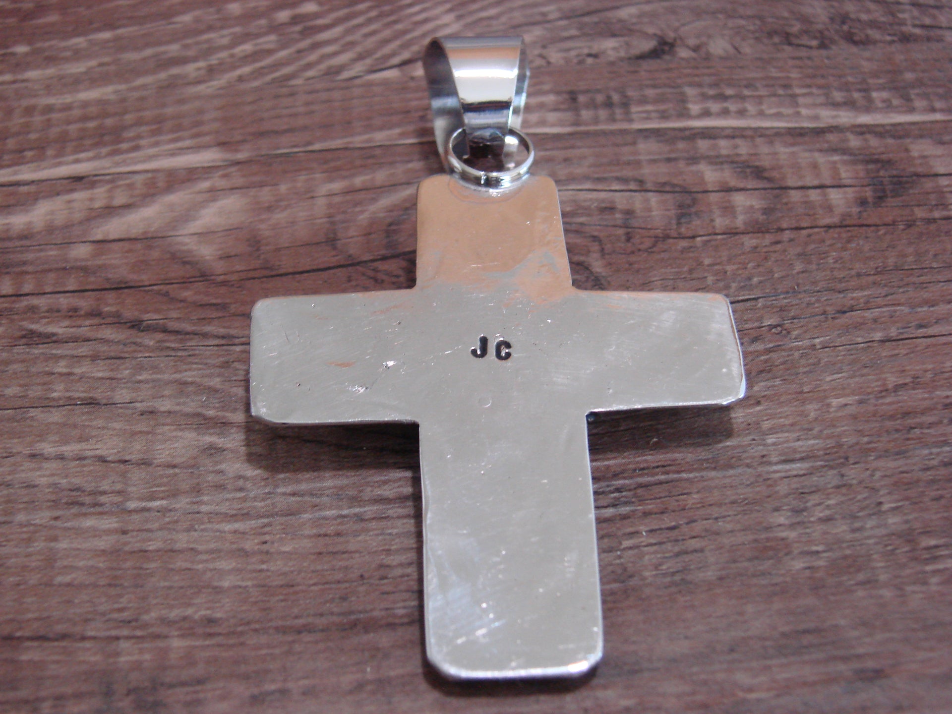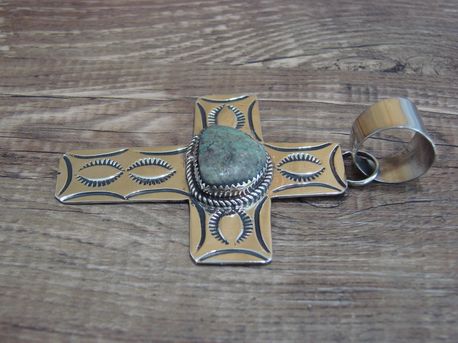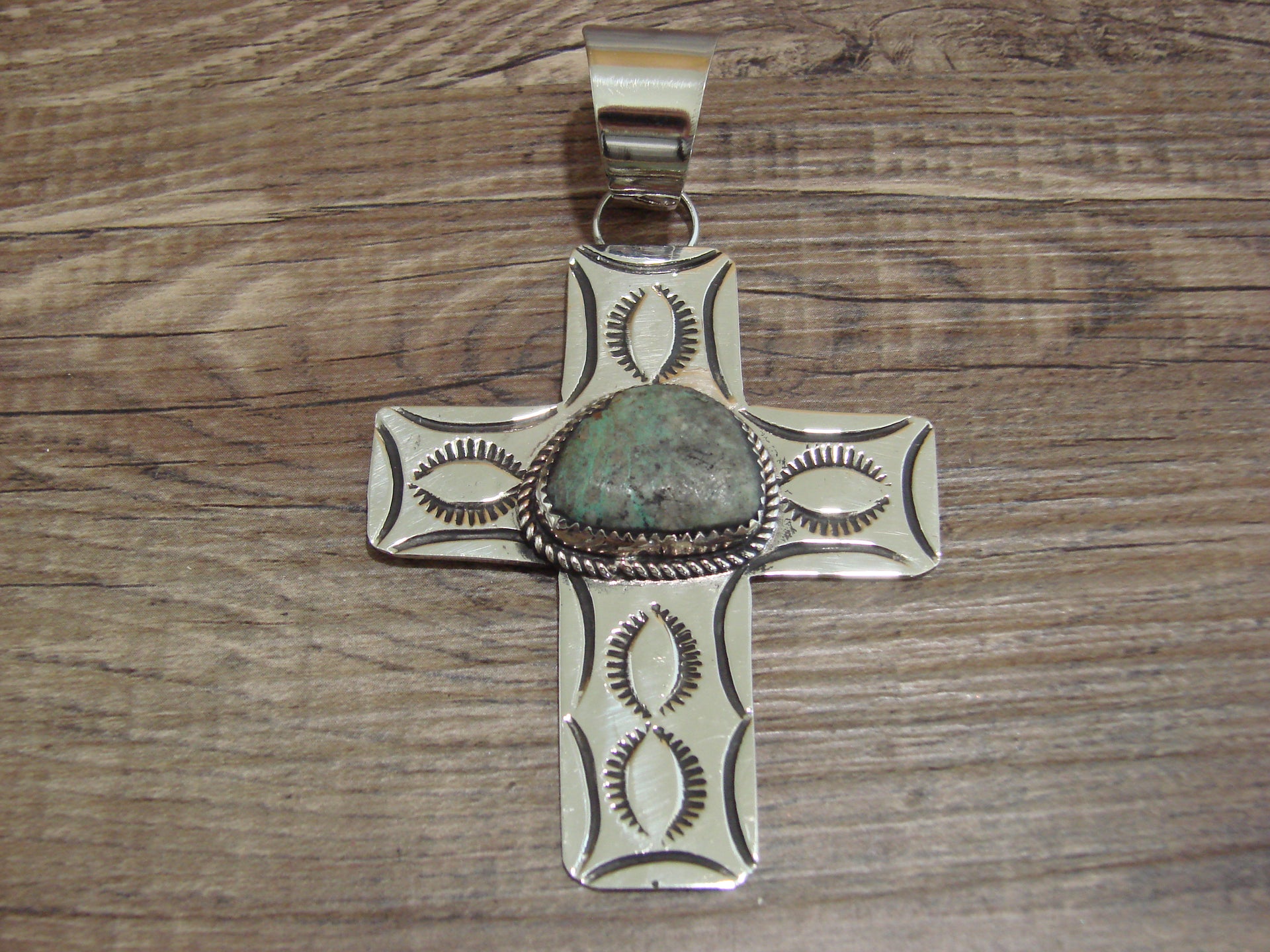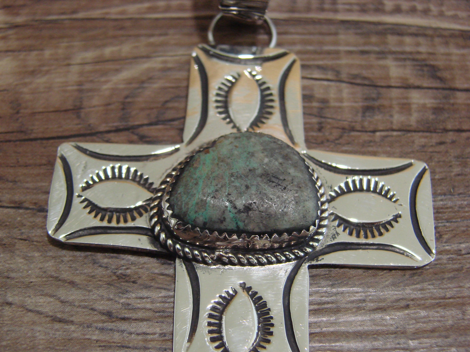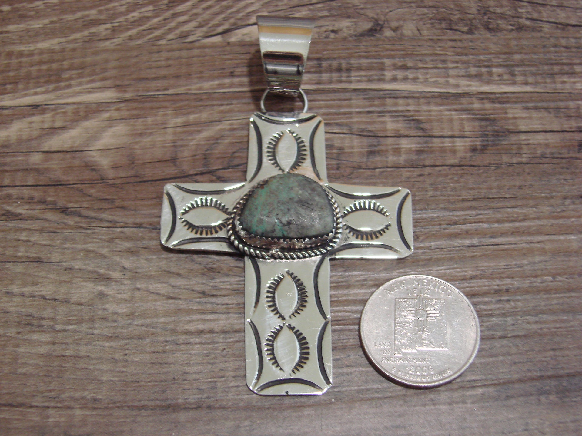 Large Navajo Nickel Silver & Turquoise Cross Pendant - Cleveland