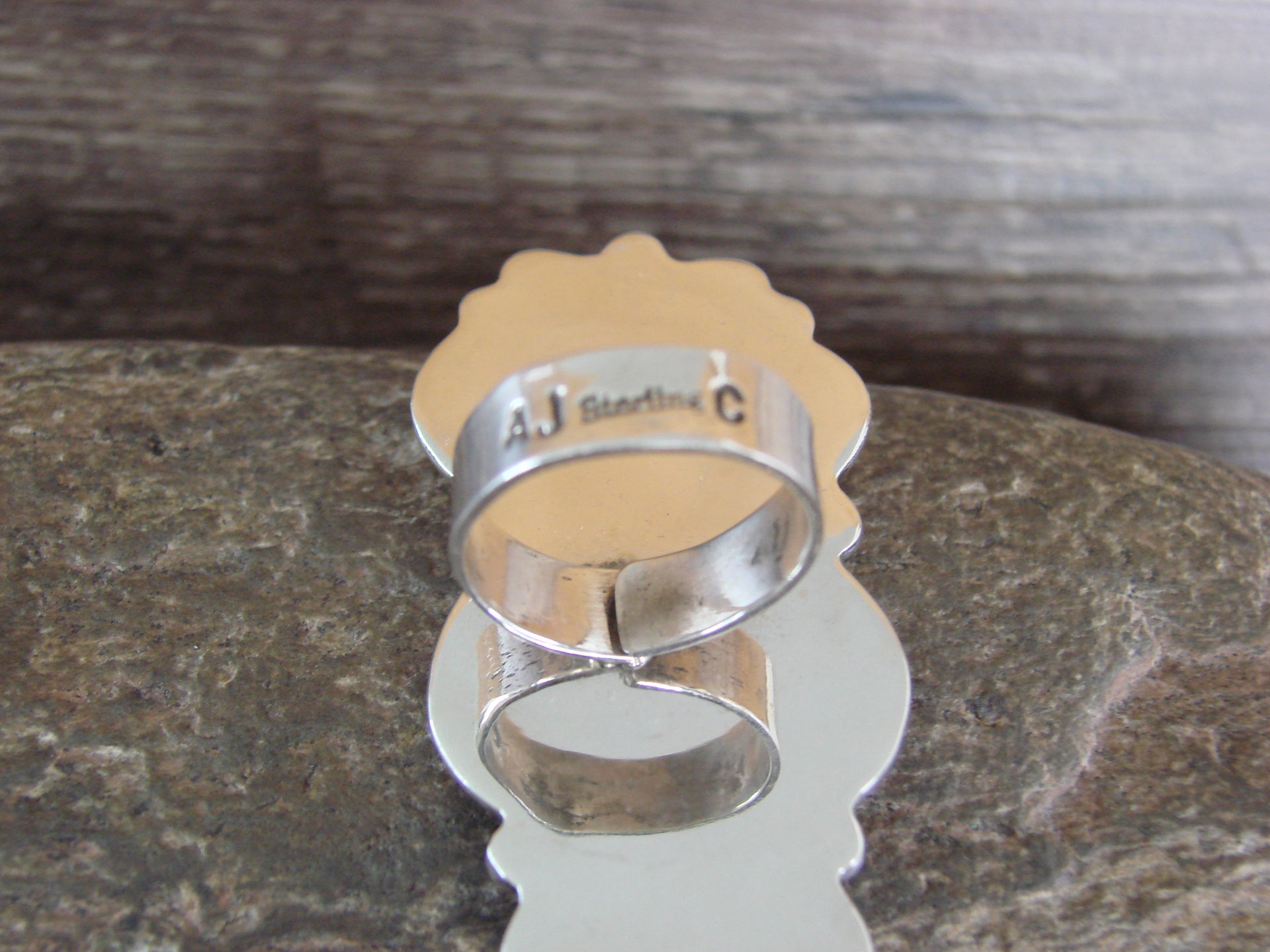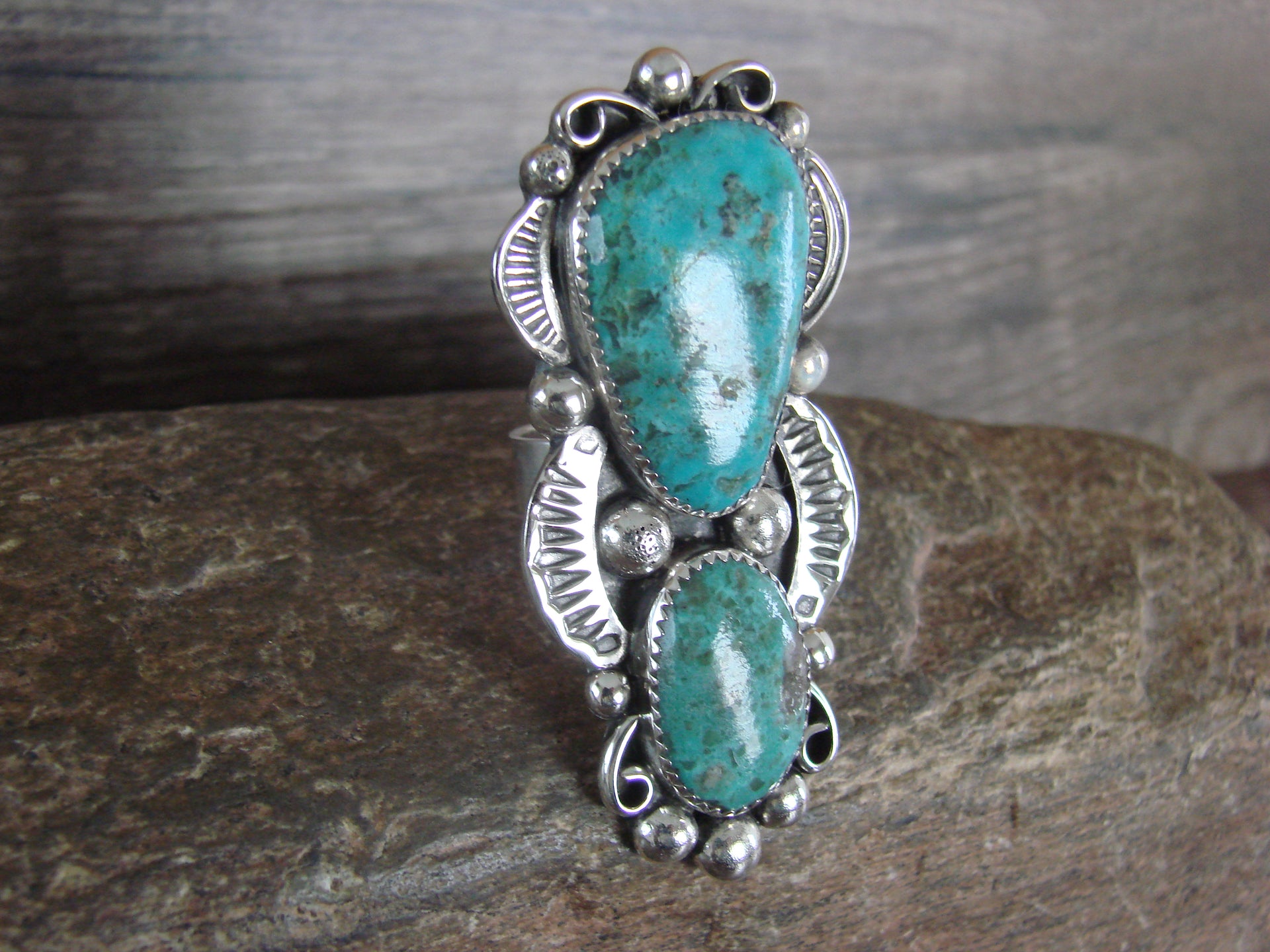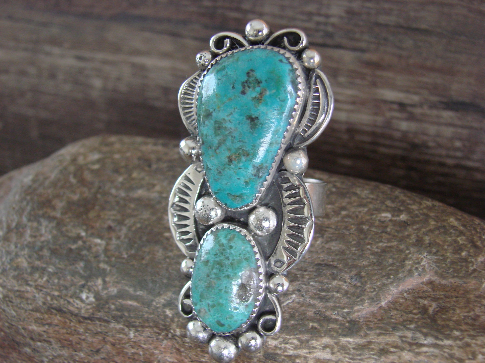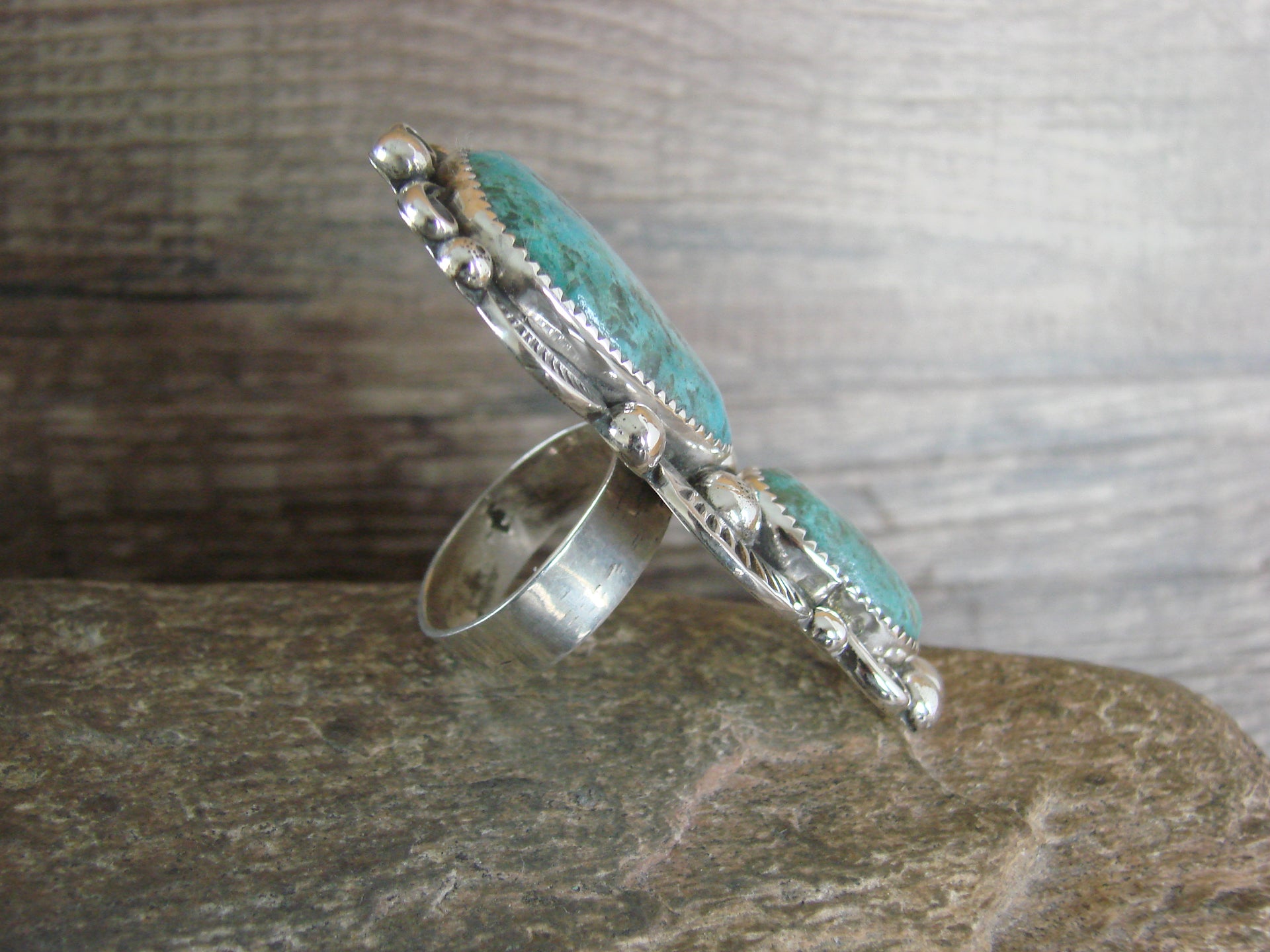 Large Navajo Sterling Silver Turquoise Adjustable Ring Size 10 to 12 - Cleveland