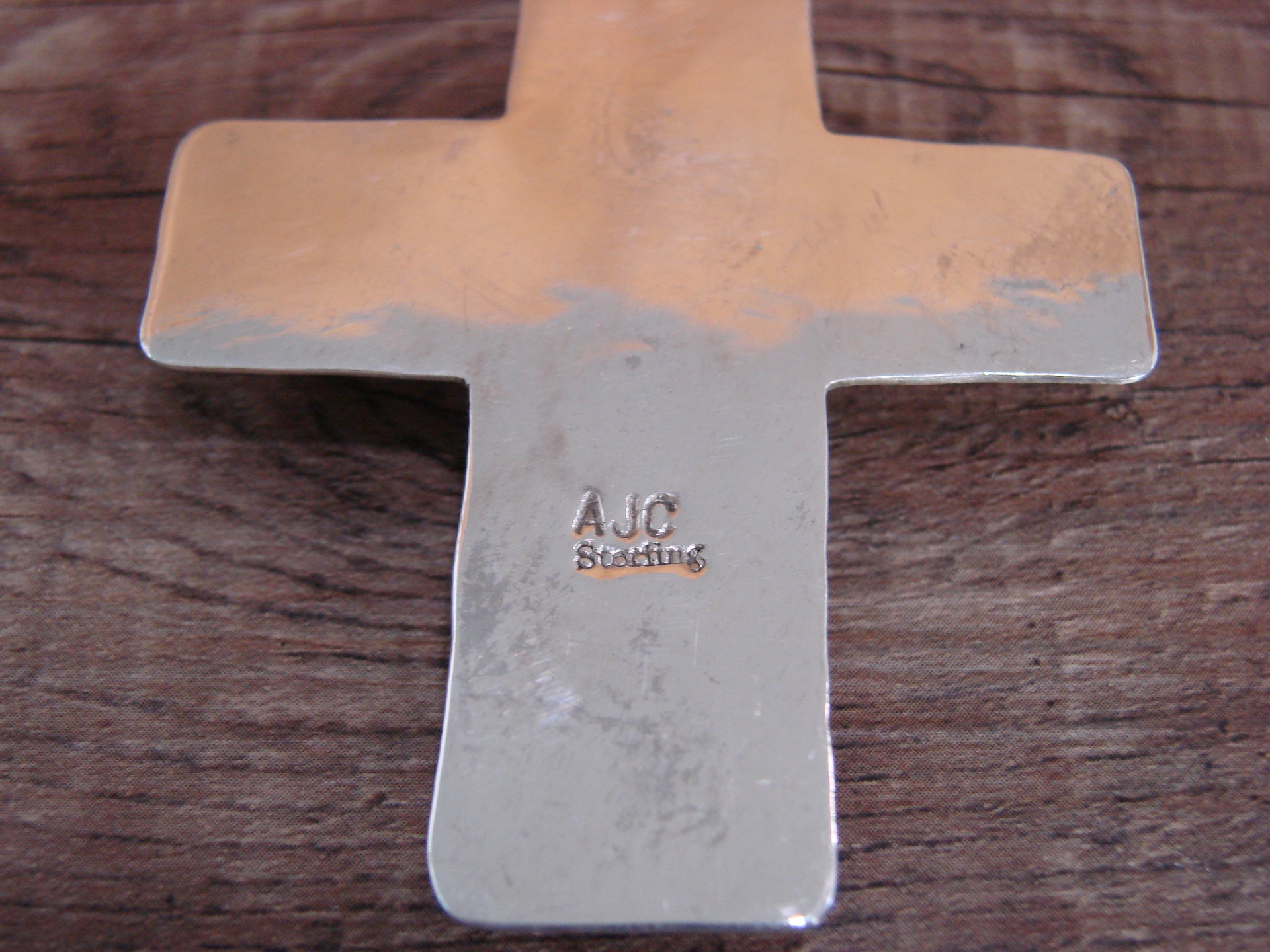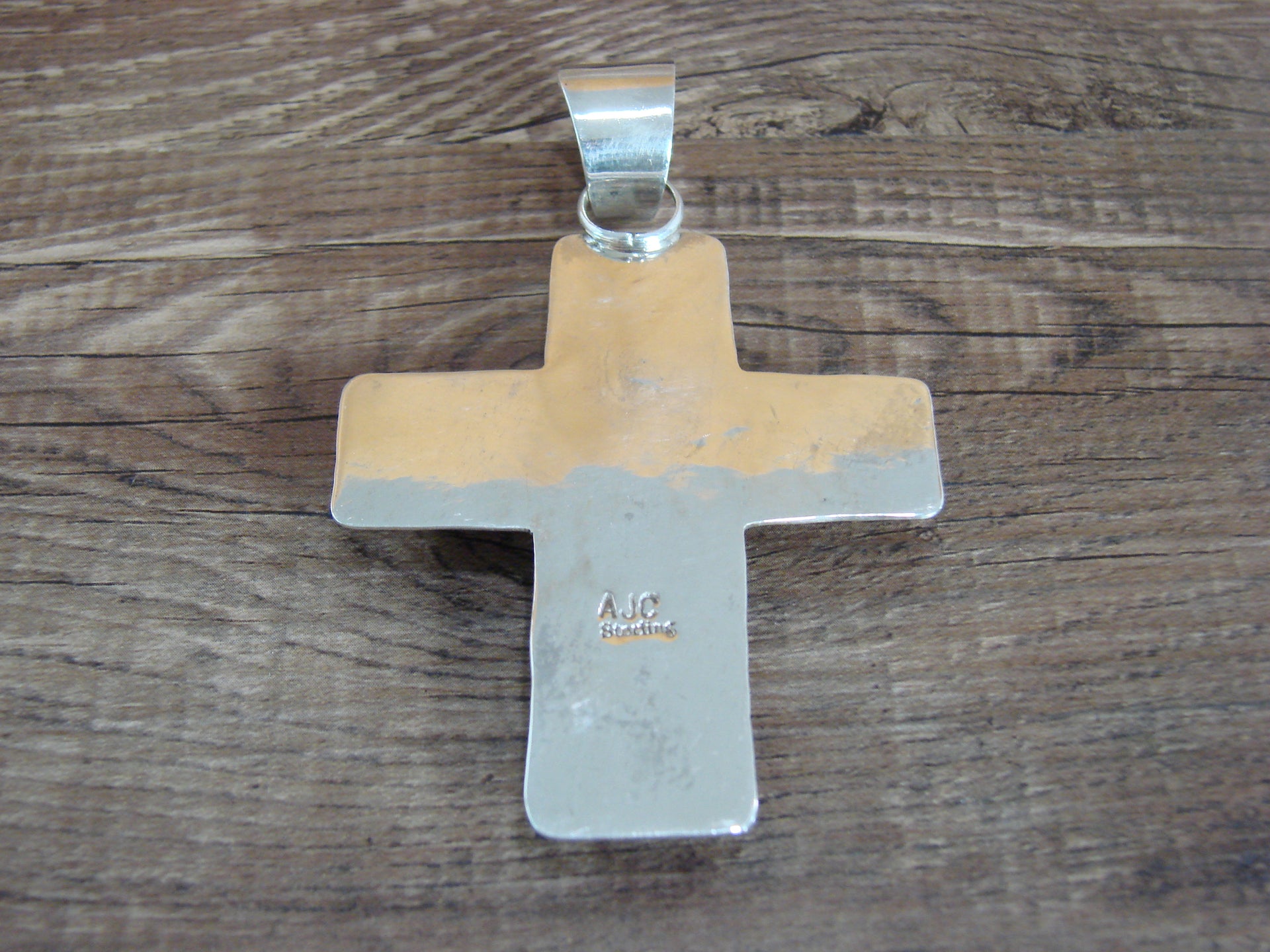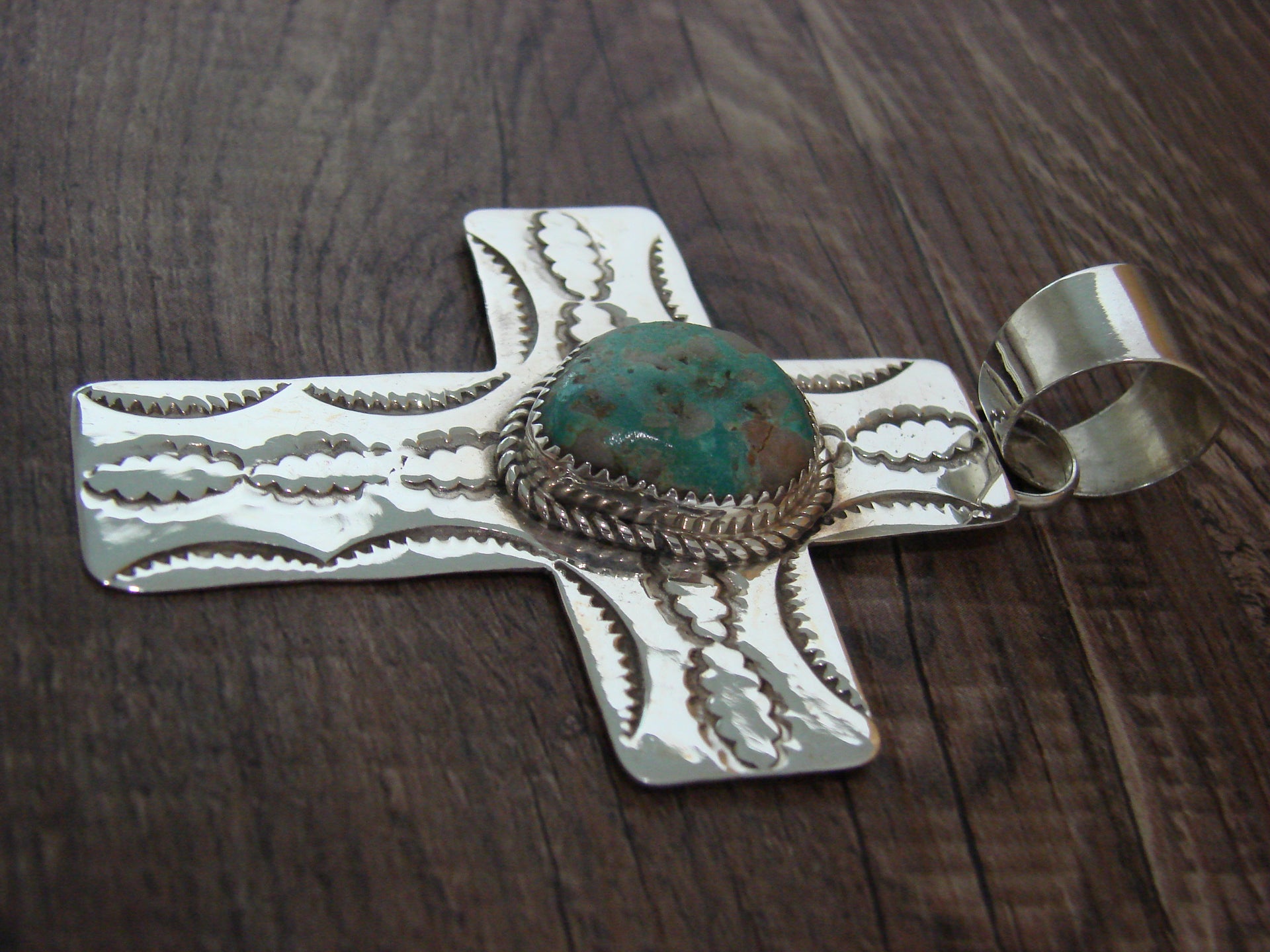 - Large Navajo Sterling Silver & Turquoise Cross Pendant Signed Cleveland