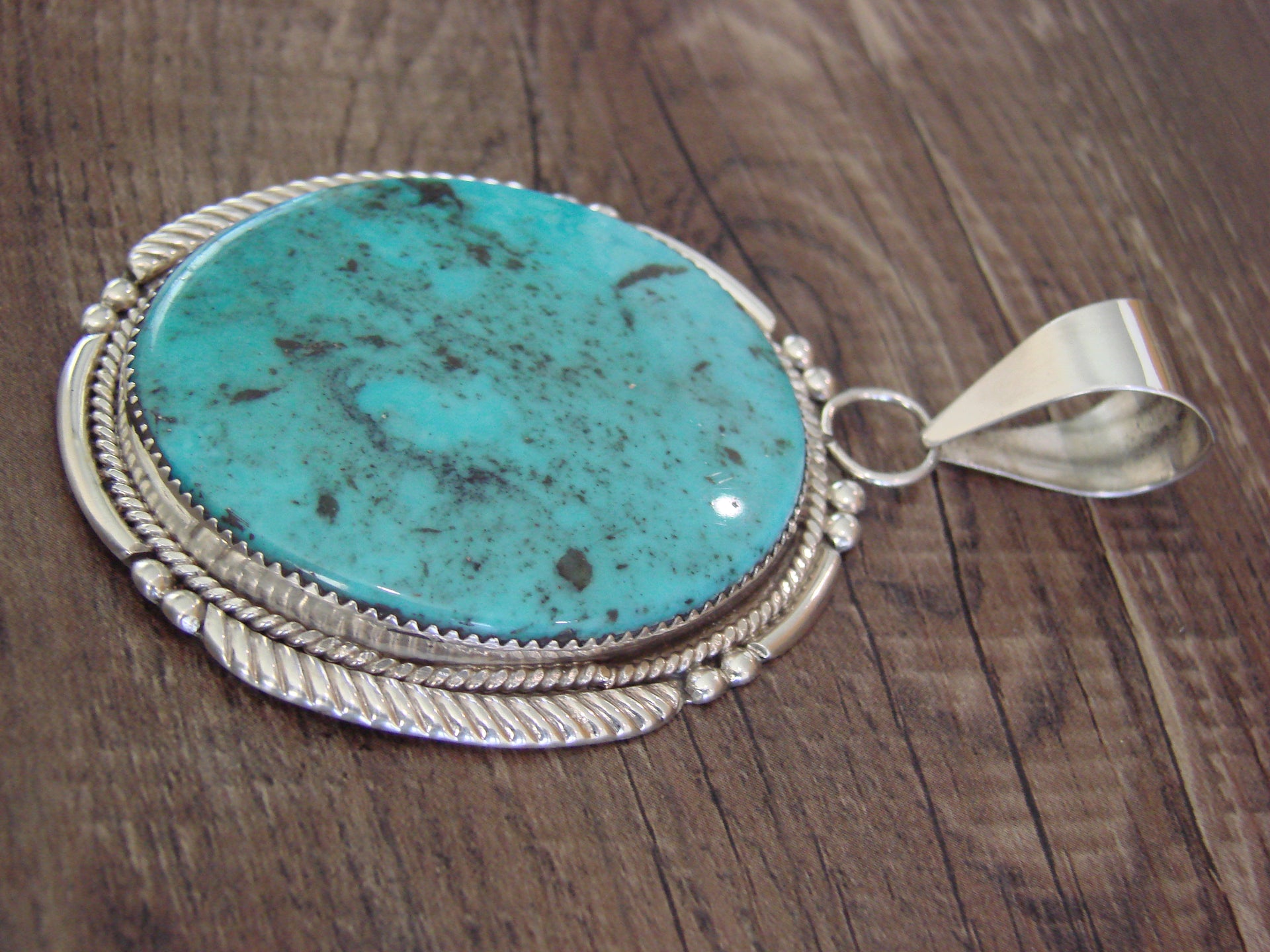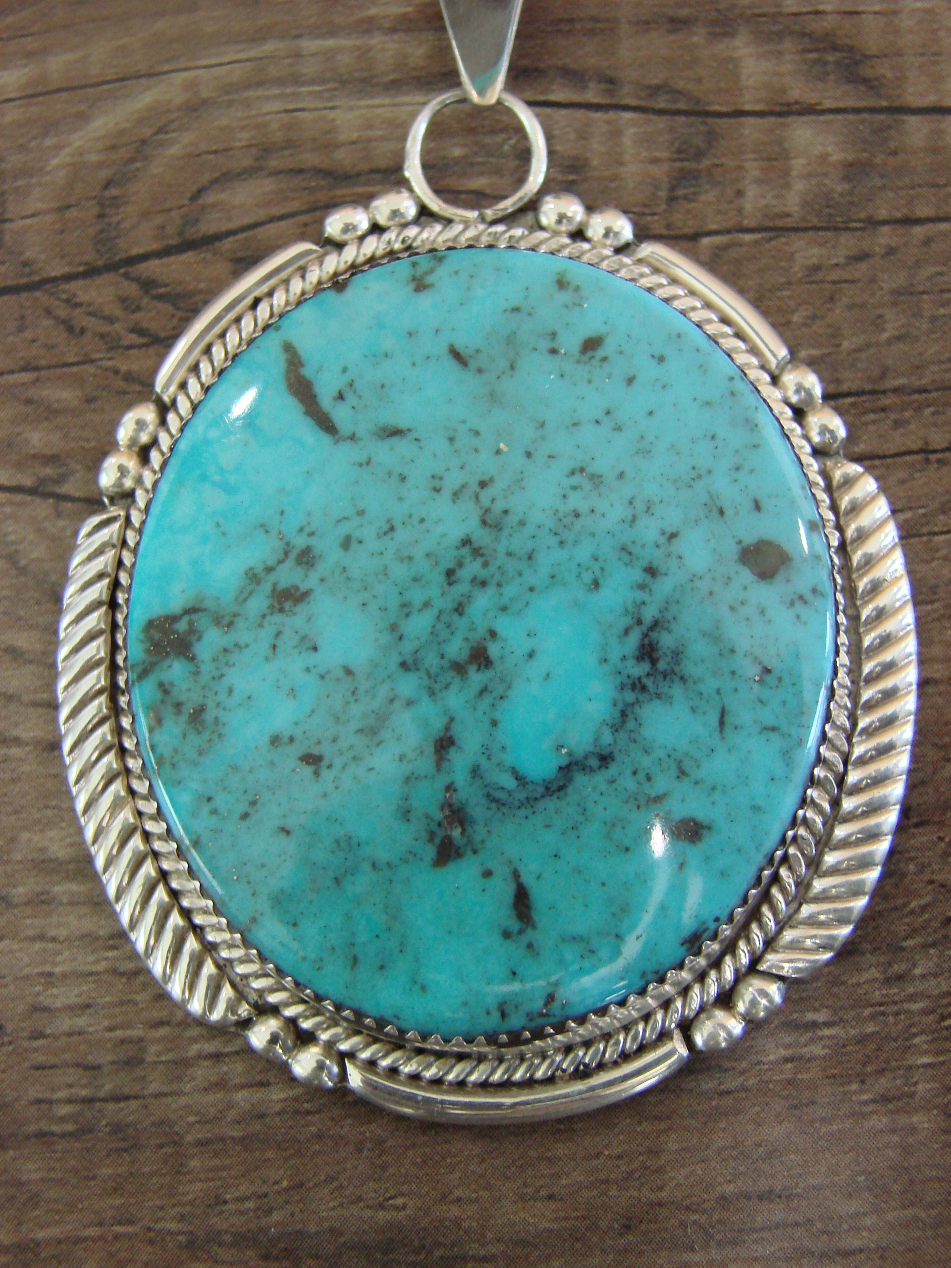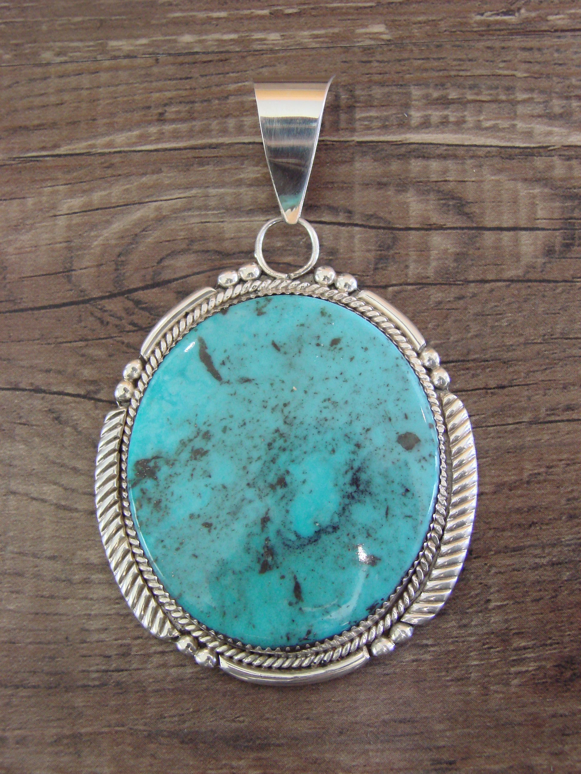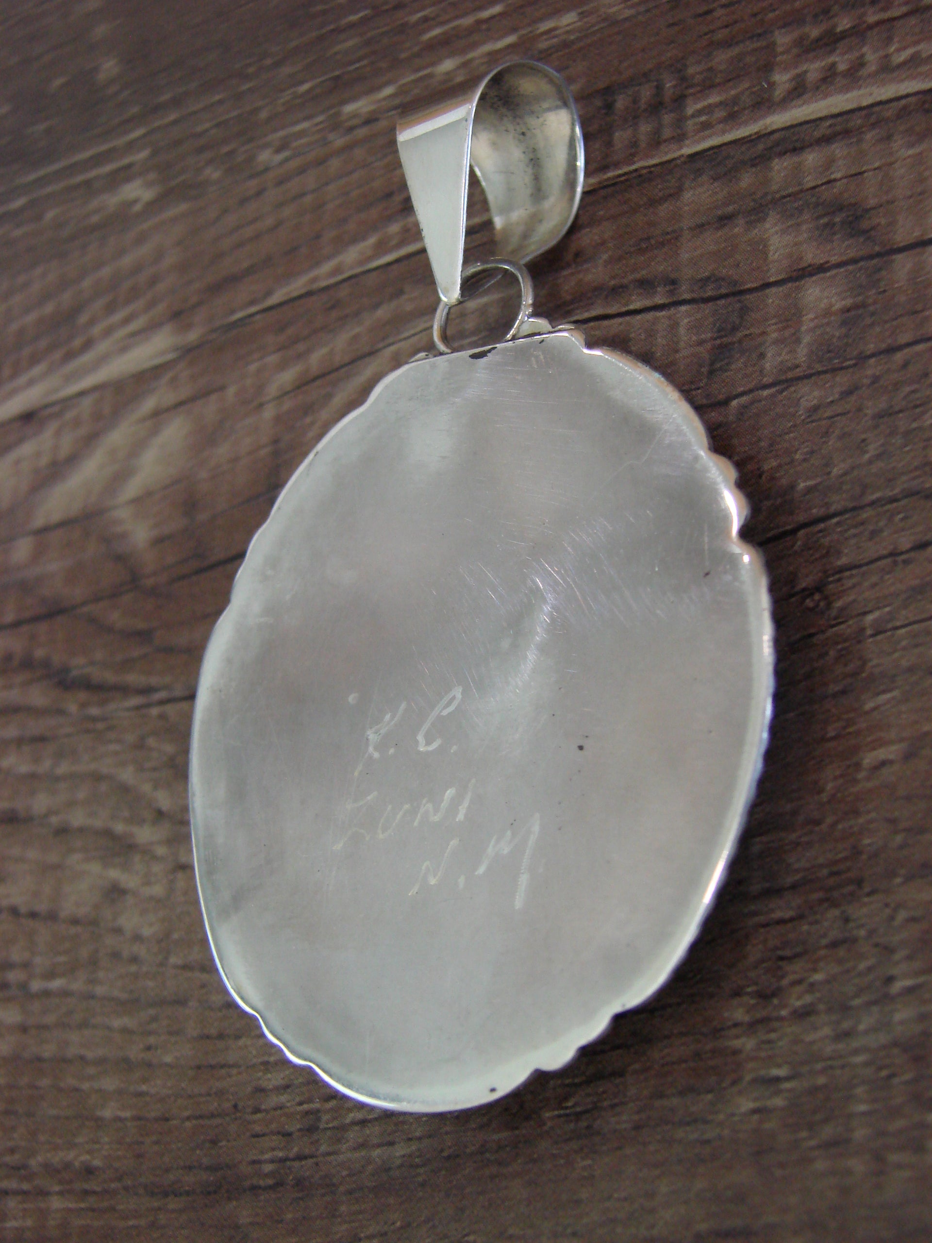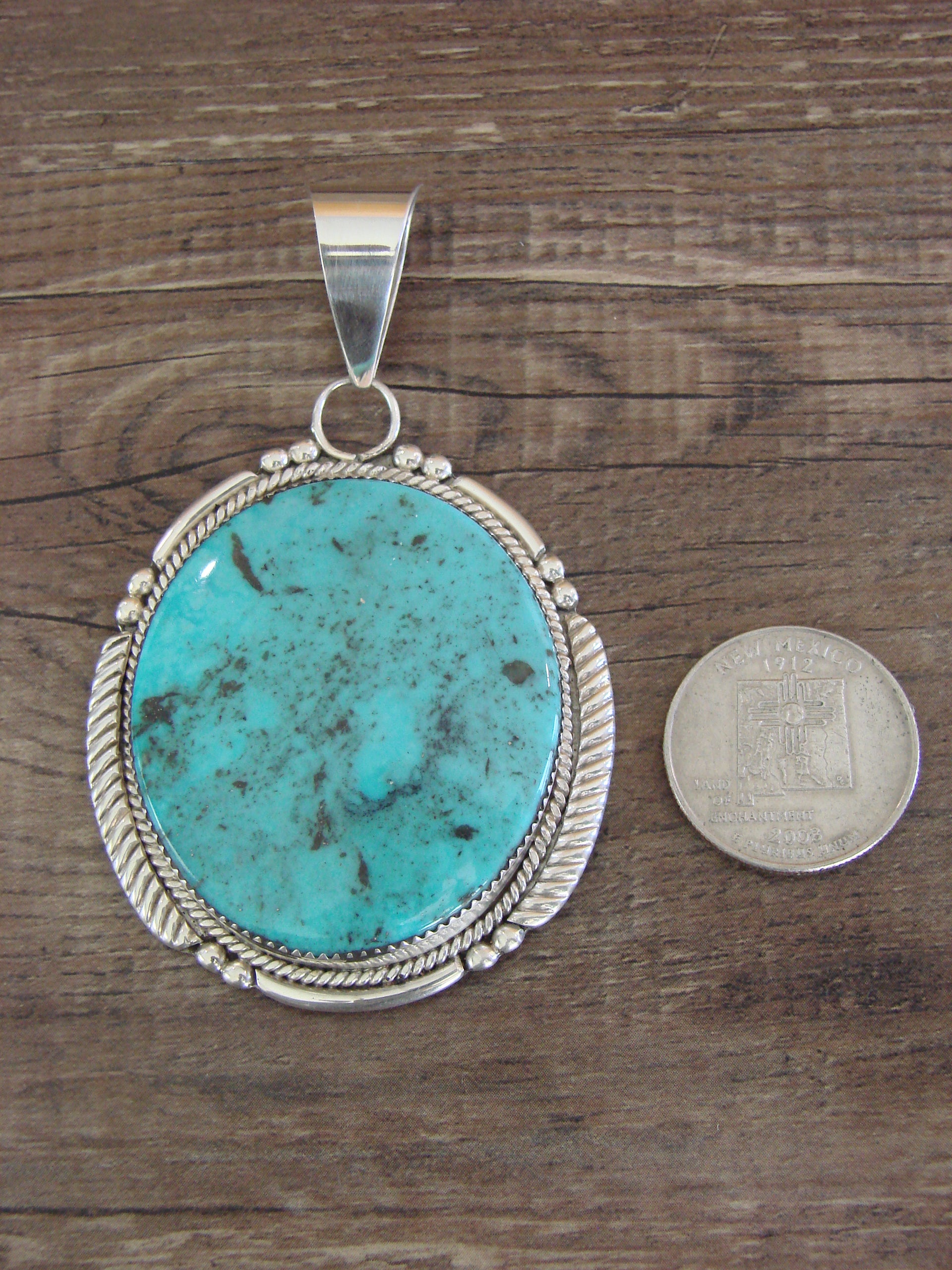 - Large Zuni Indian Sterling Silver & Turquoise Pendant - Calavaza