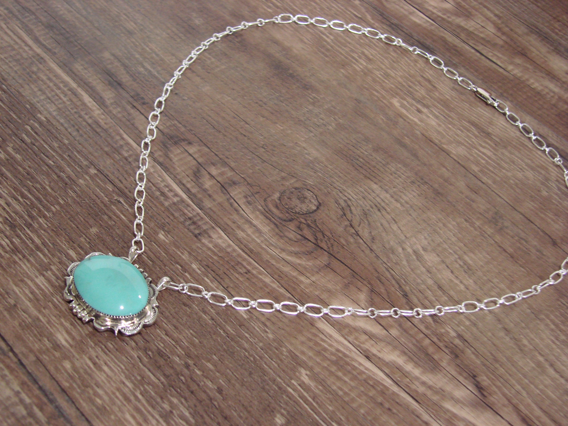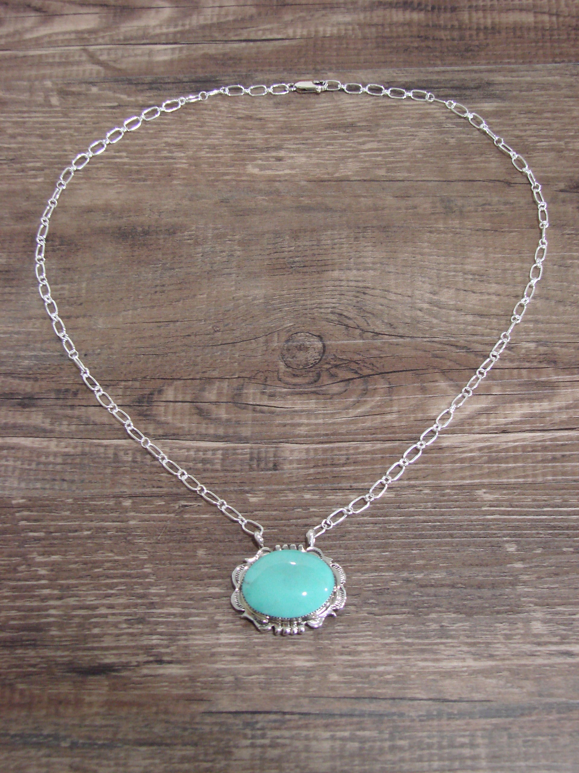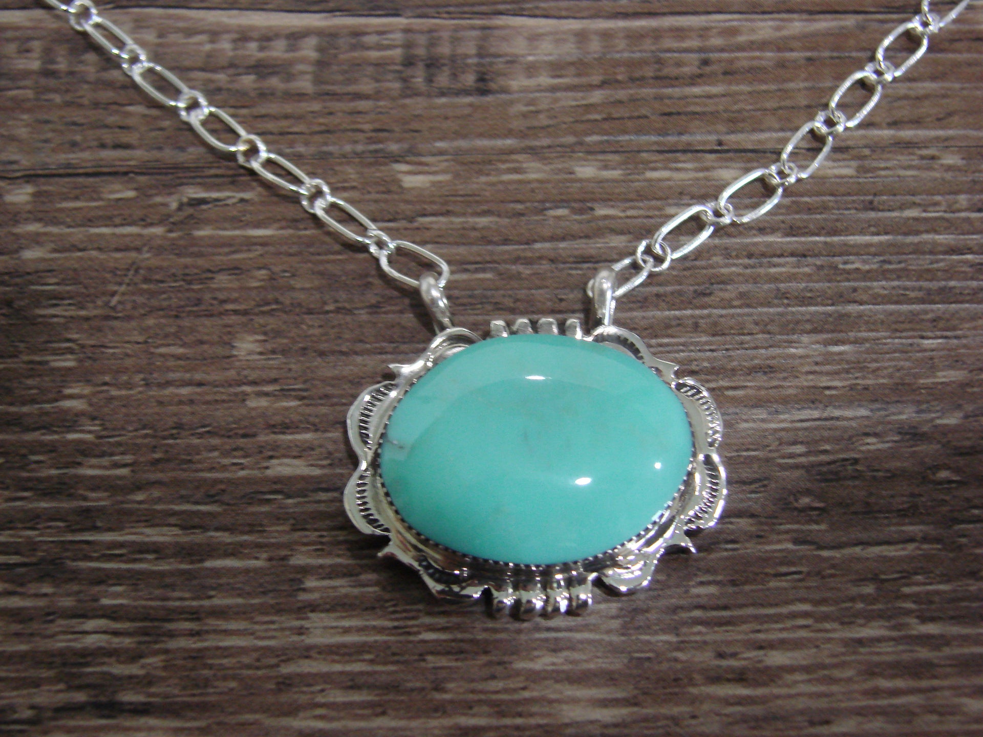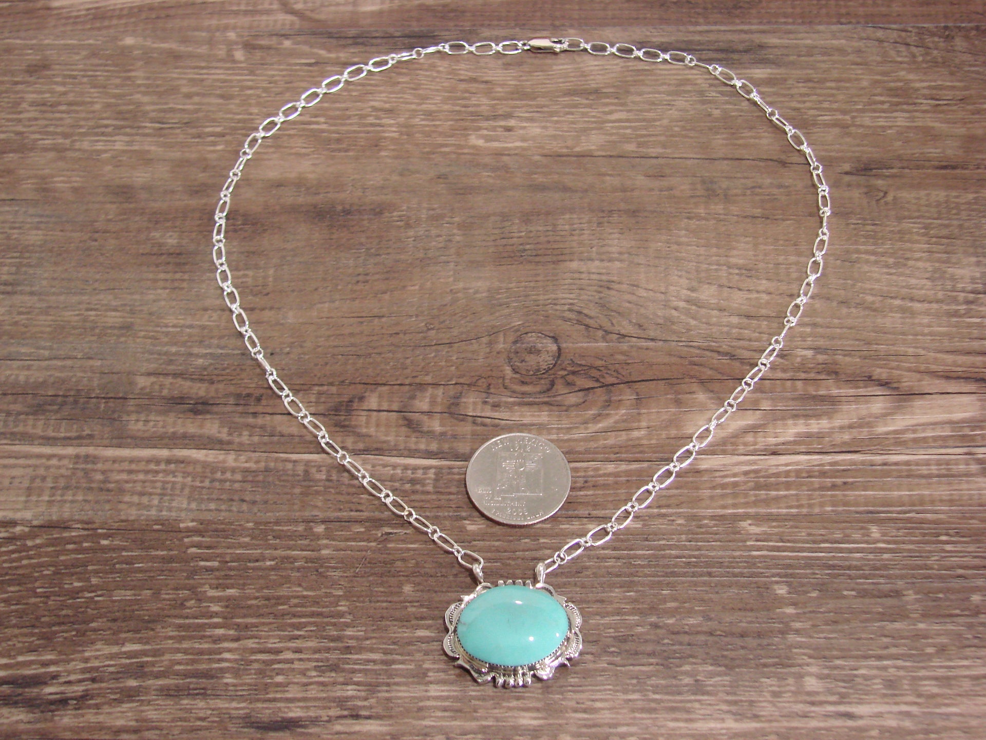 Native American 20" Sterling Silver & Turquoise Link Necklace by Silversmith