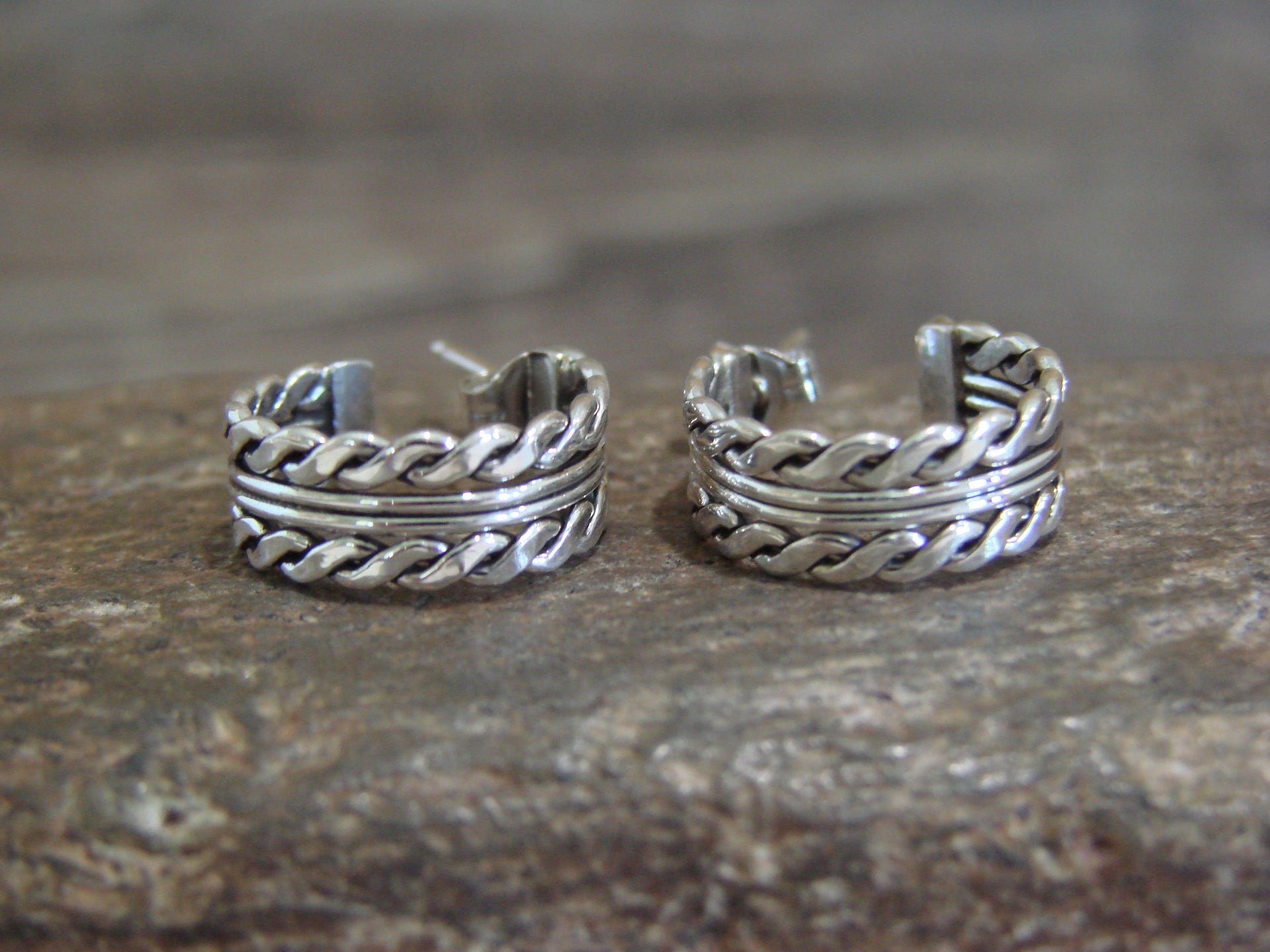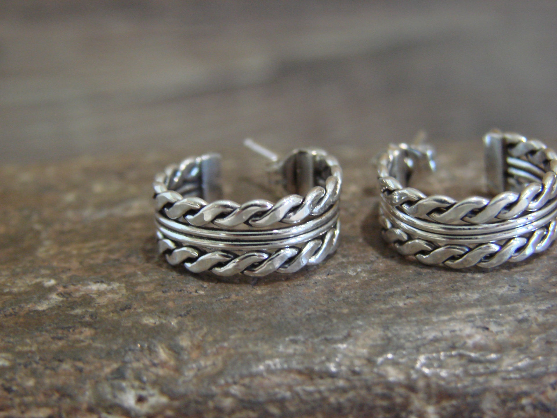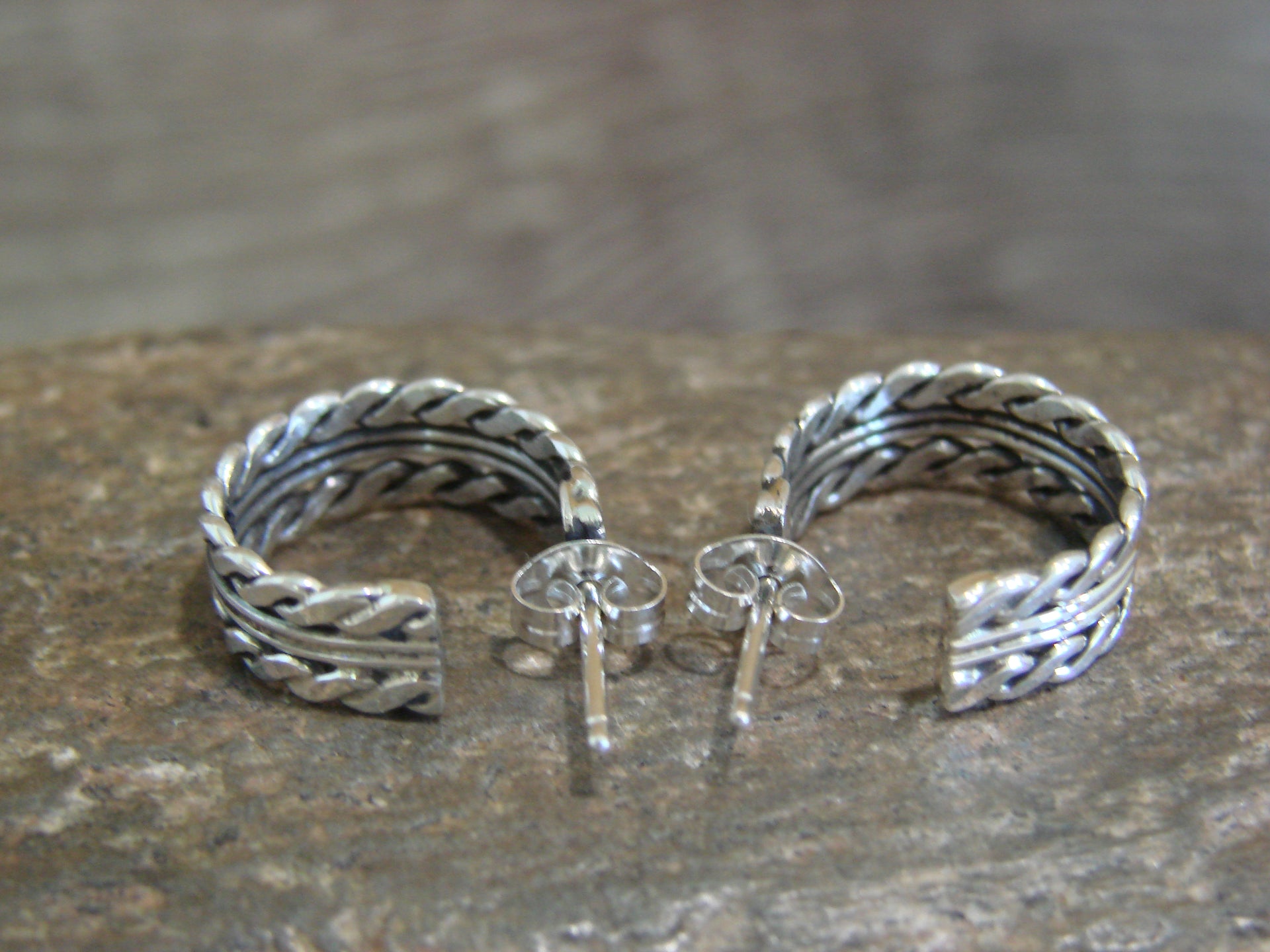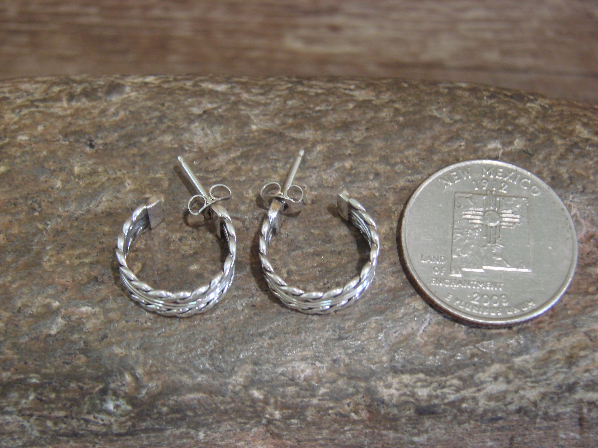 Genuine Native American Navajo Indian 5/8" Sterling Silver Twisted Hoop Post Earrings from Western New Mexico. These small post earrings feature beautiful details in sterling silver throughout. Handmade by Navajo artist Elaine Tahe. Unsigned. Free shipping with a gift box included!