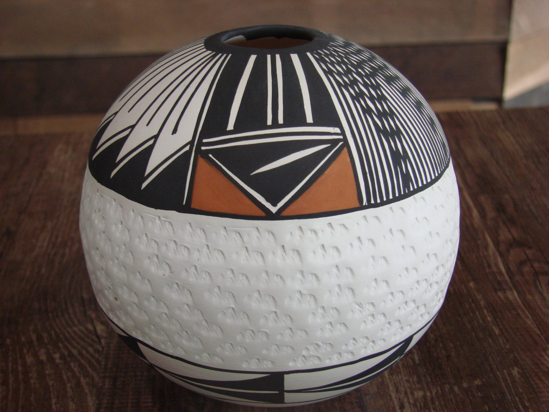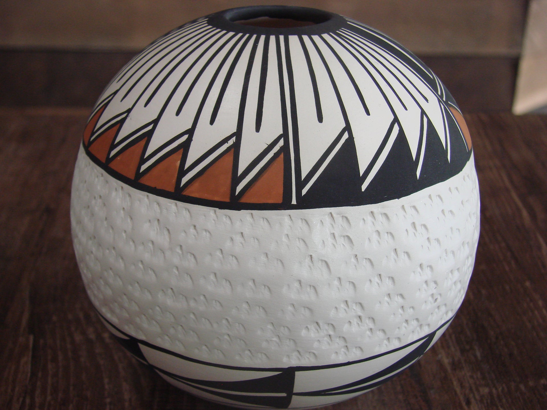 Native American Acoma Fine Line Hand Painted Pottery by B. Garcia