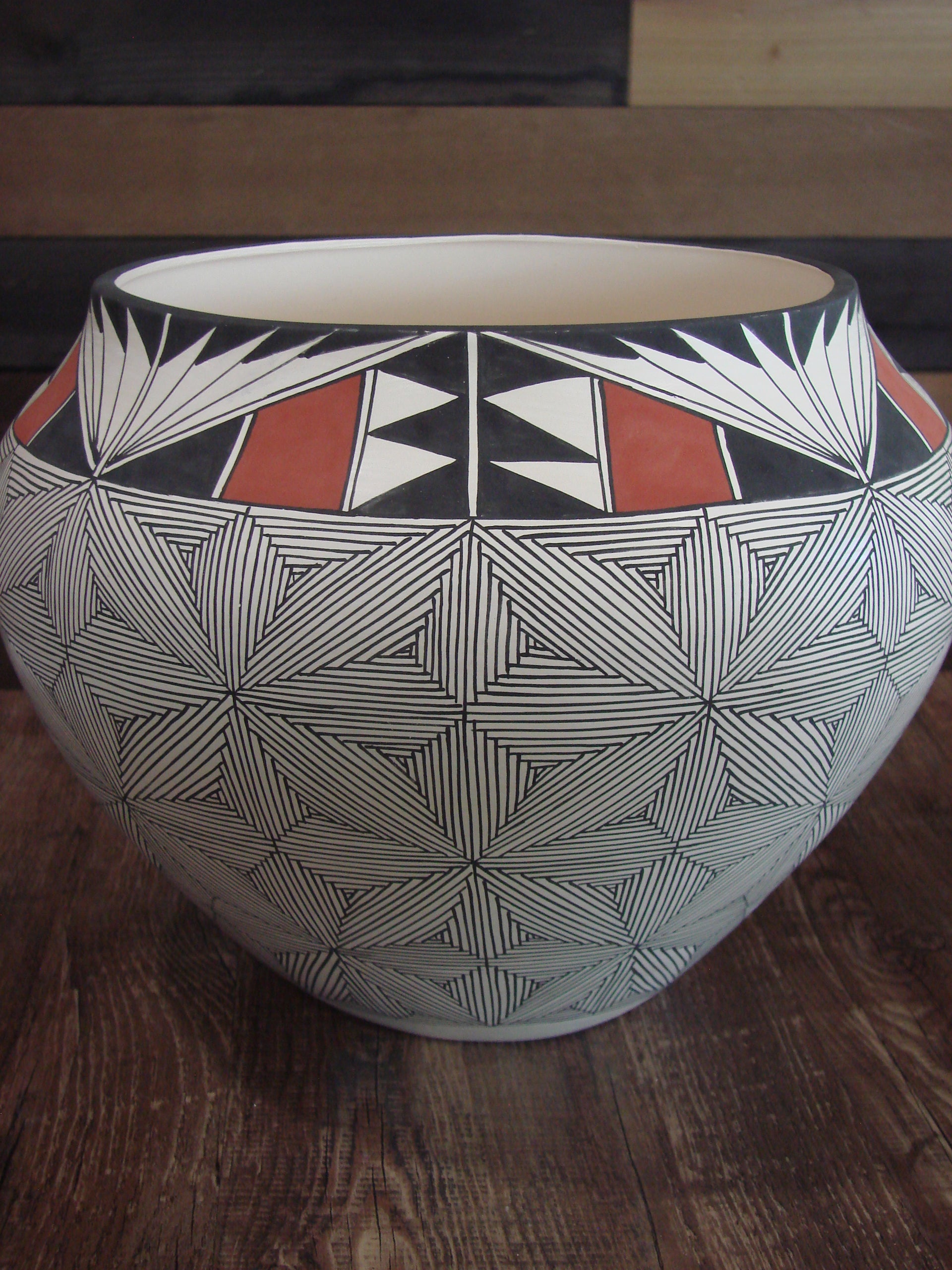 Native American Acoma Fine Line Hand Painted Pottery by D. Malie