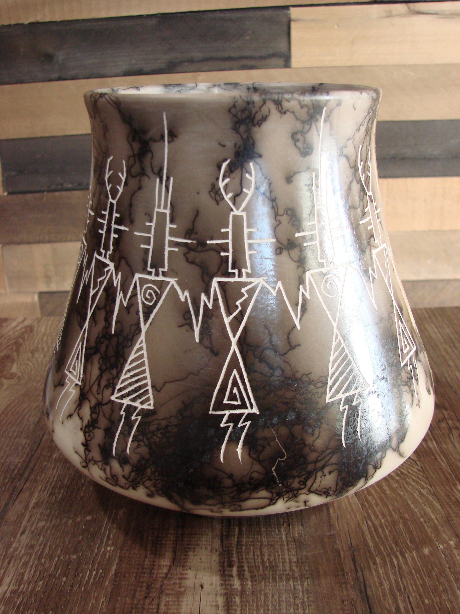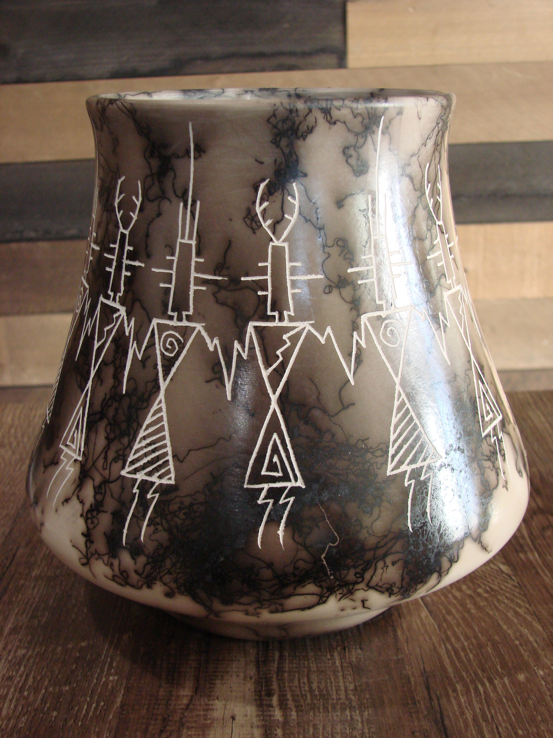 - Native American Acoma Hand Etched Horse Hair Pottery by Yellow Corn