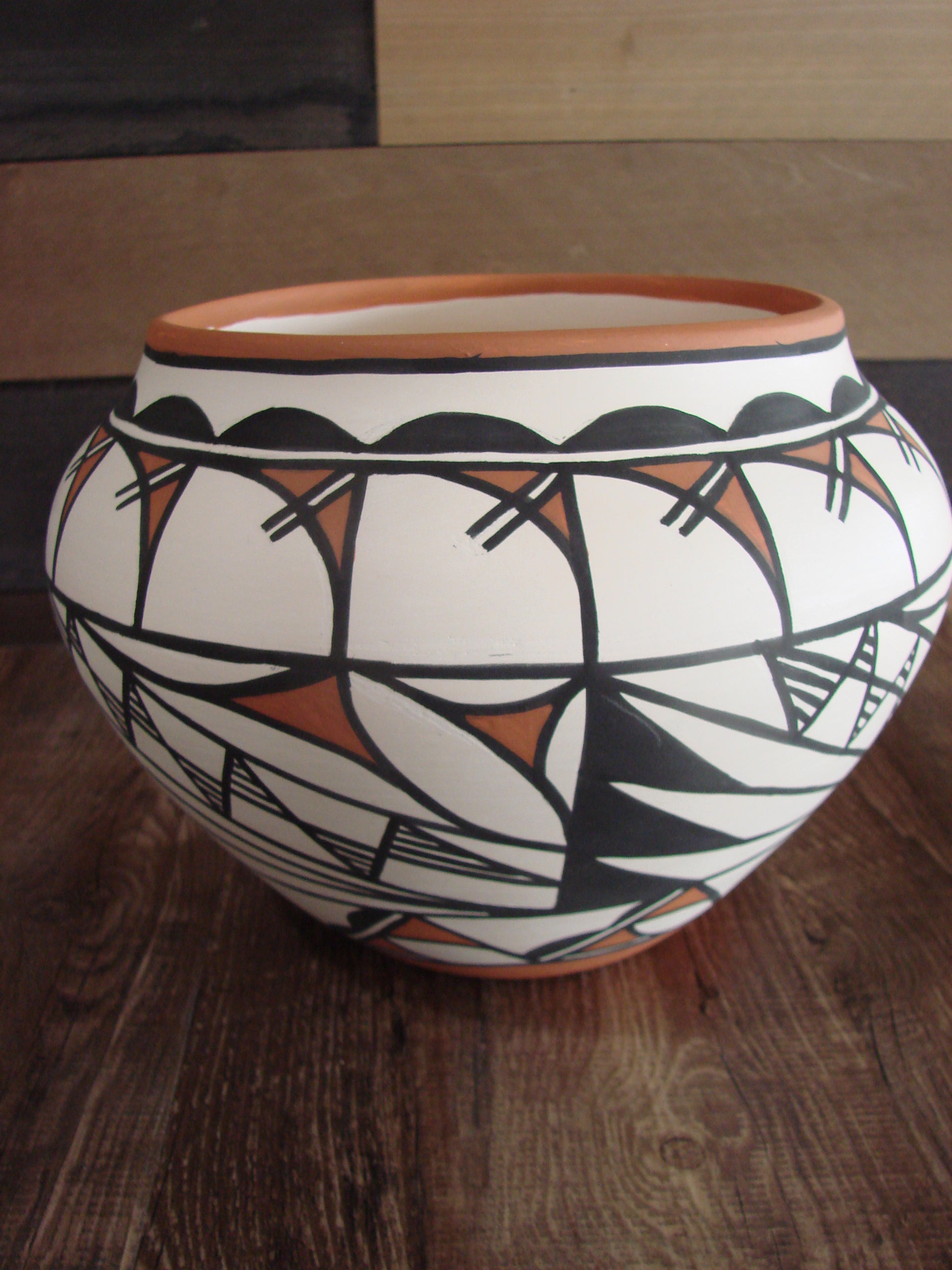 - Native American Acoma Pueblo Fine Line Hand Painted Pottery by S. Daris