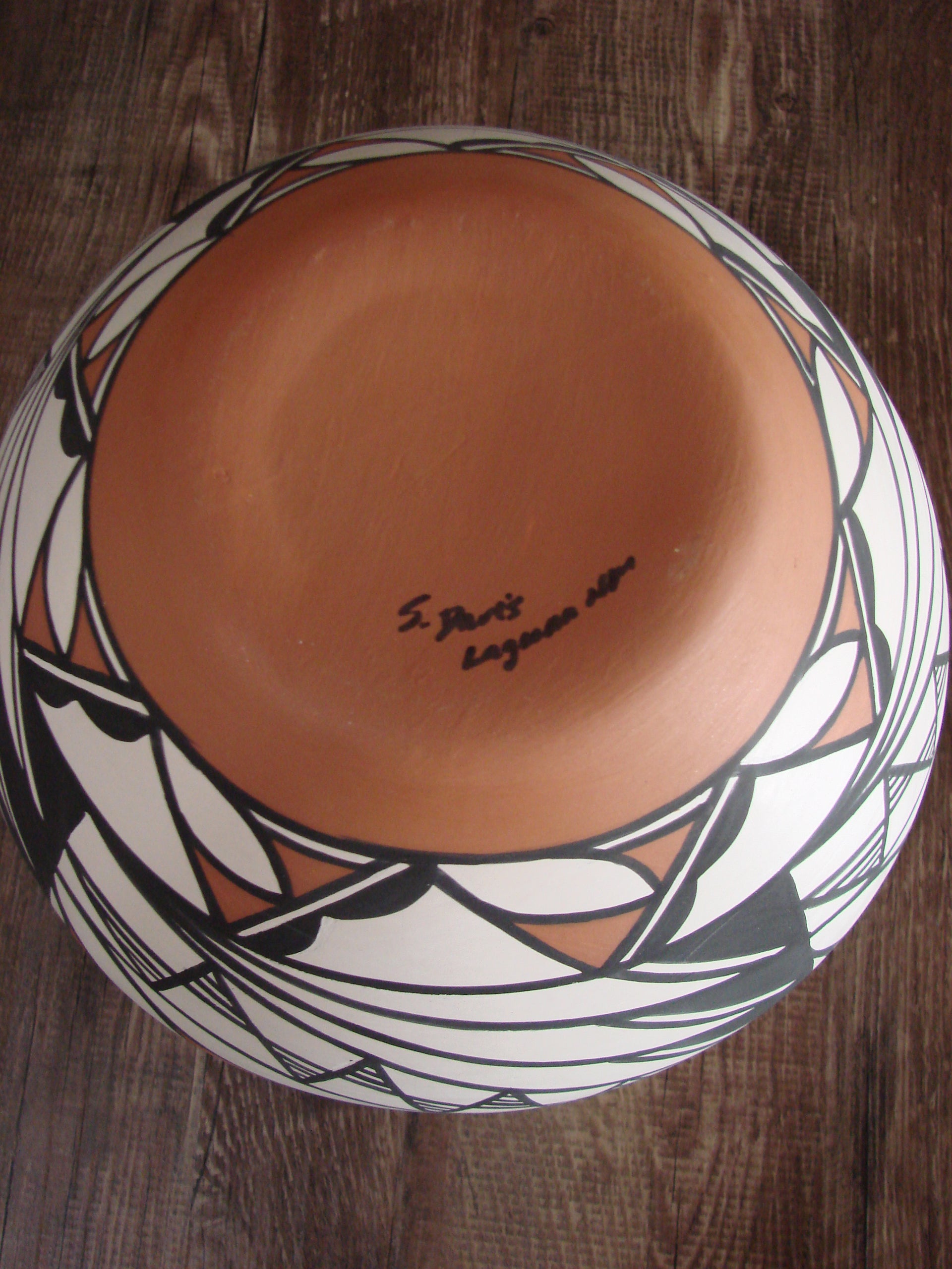 Genuine Native American Acoma Pueblo Indian Hand Painted Fine Line Pottery from Western New Mexico. This Beautiful piece of pottery features Stunning natural pigment hand painted patterns throughout. The detail is exquisite! Hand painted by Acoma artist S. Daris. The bottom is signed. Free Shipping included!