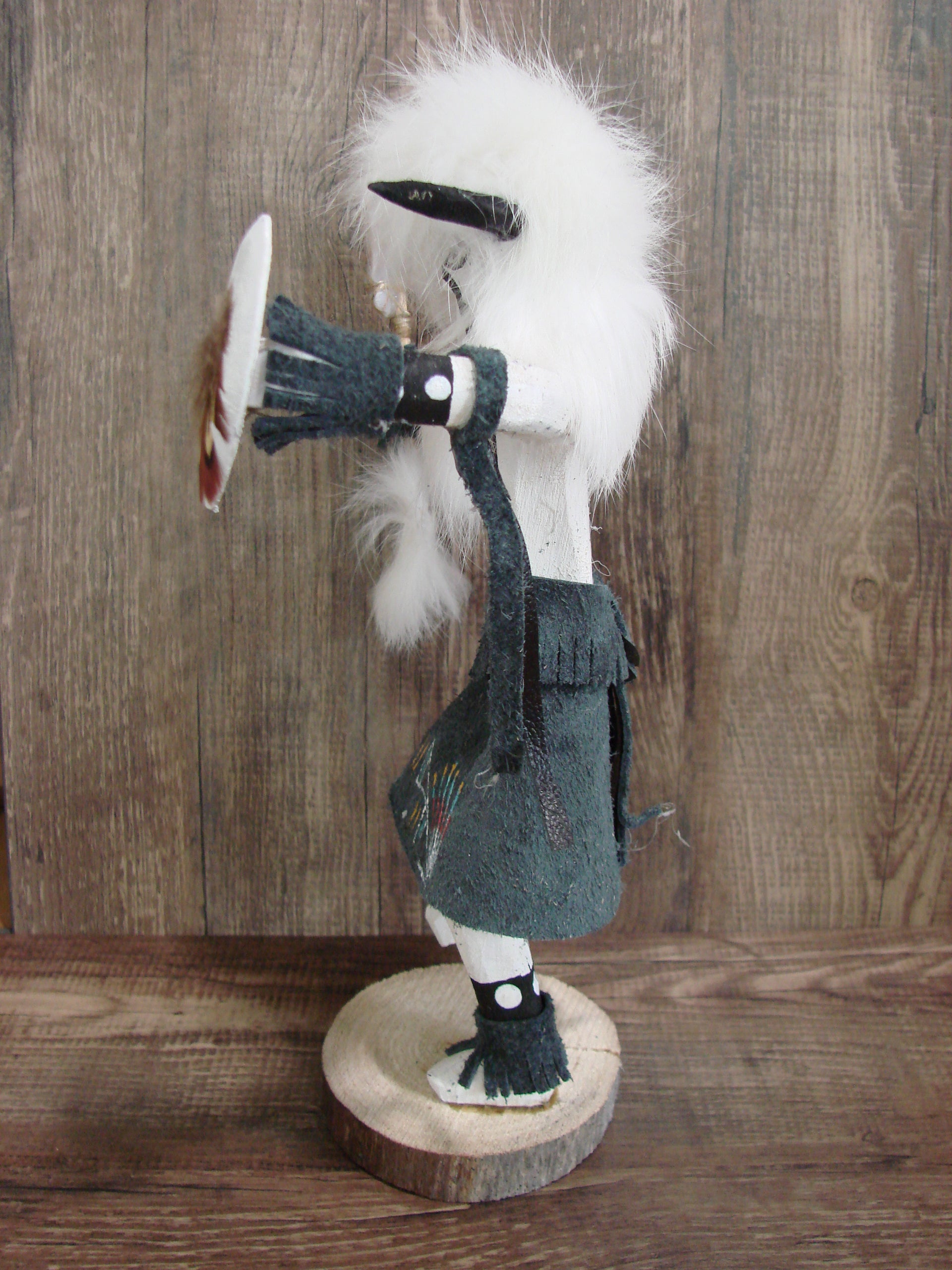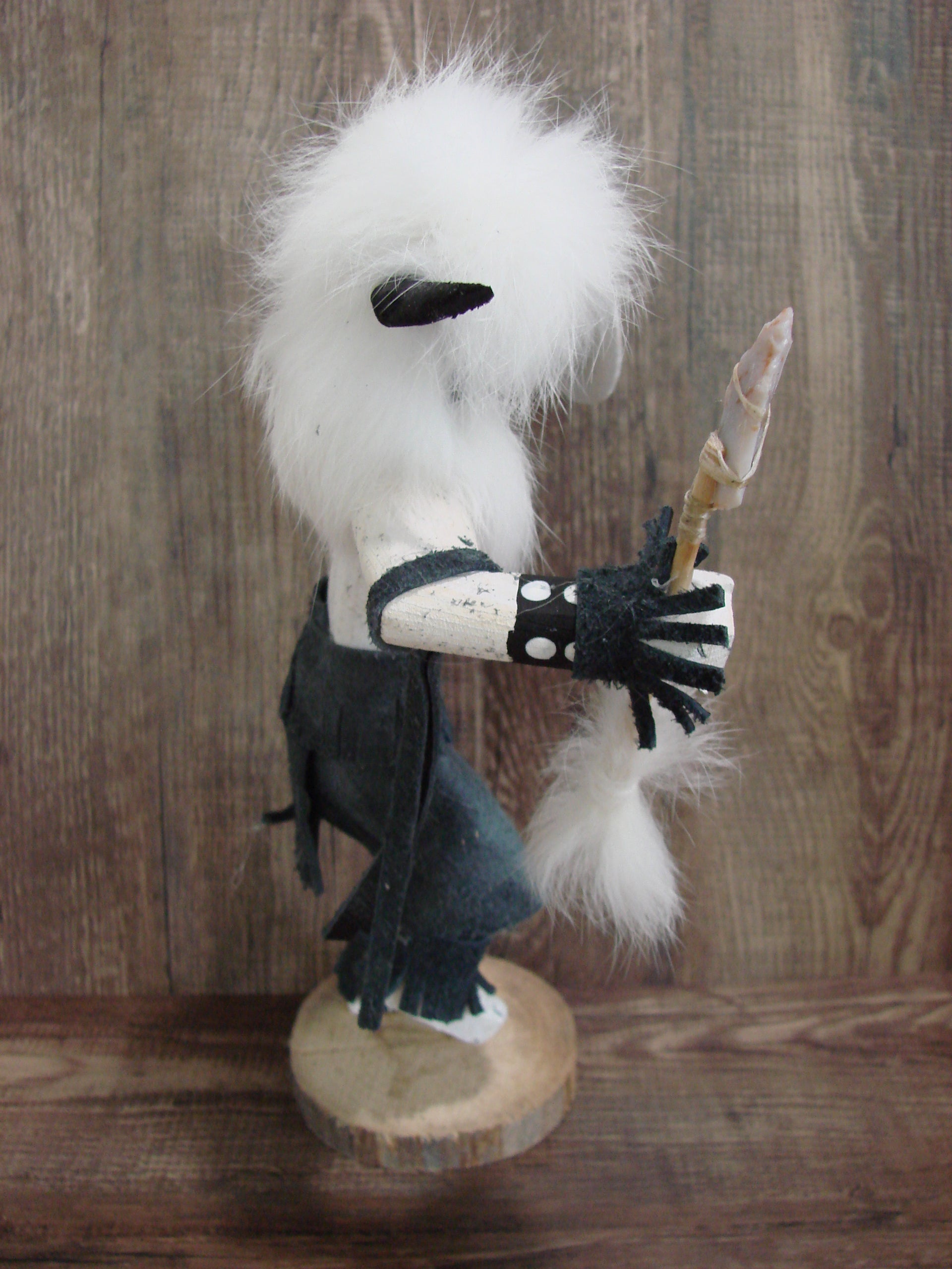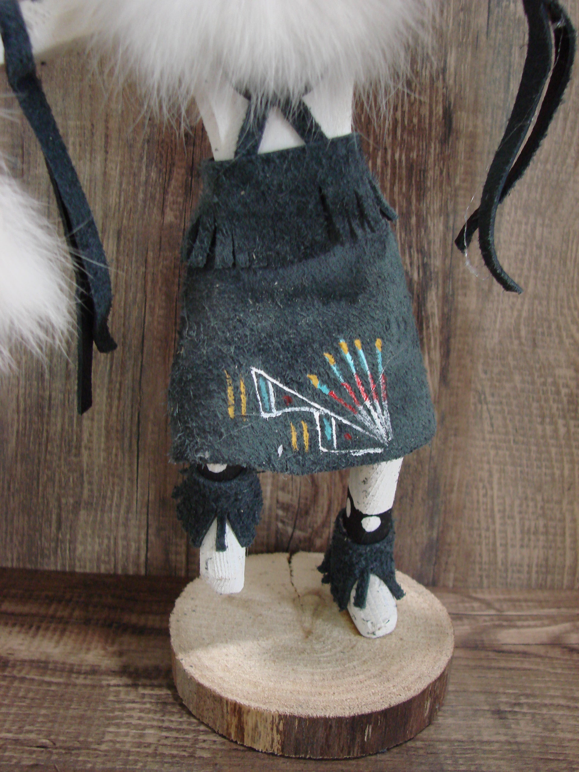 Native American Navajo Indian Kachina Dancer from the Navajo Nation. This Kachina features beautiful hand painting and hand carving from top to bottom. This Kachina is carved into pine and decorated with feathers, Rabbit Fur, and leather. Navajo Indian Handmade and Signed by B.W. on the base. Free shipping included!