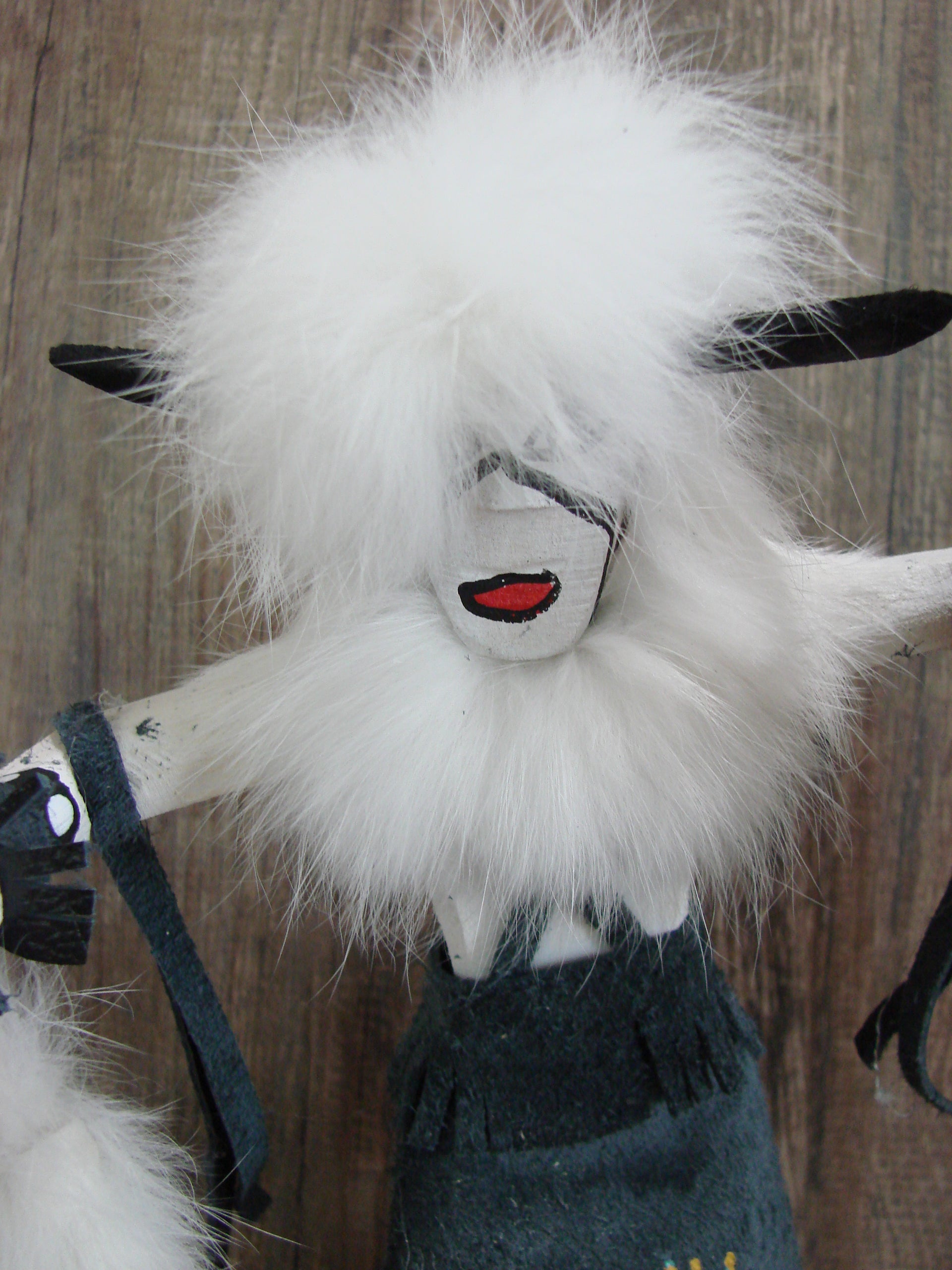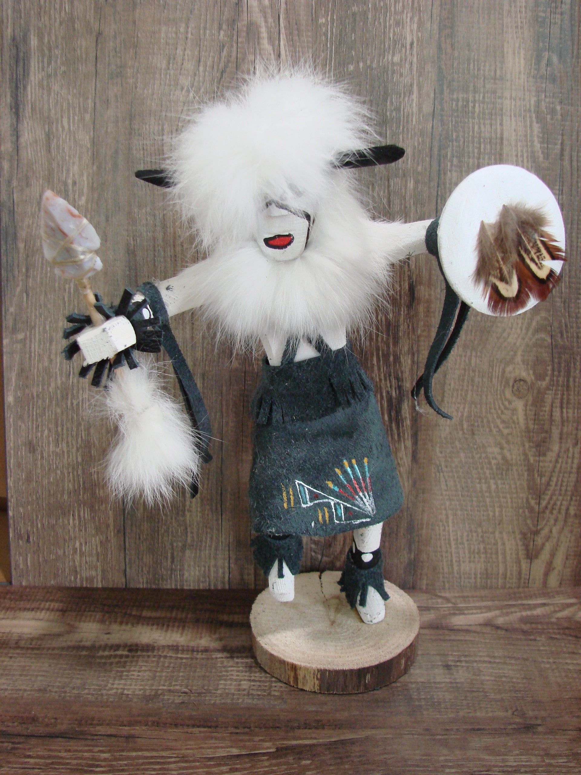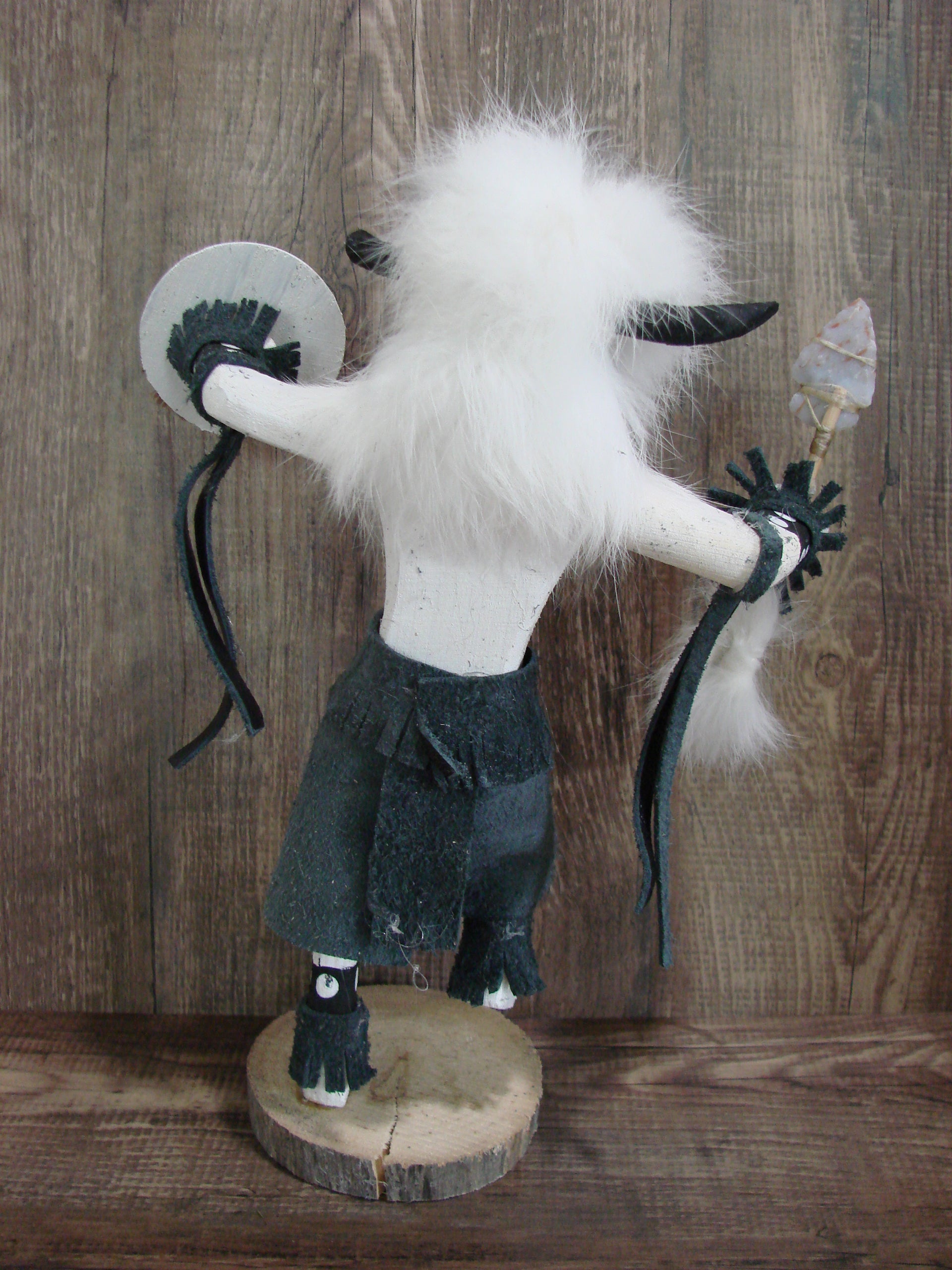 Native American Navajo Indian Kachina Dancer from the Navajo Nation. This Kachina features beautiful hand painting and hand carving from top to bottom. This Kachina is carved into pine and decorated with feathers, Rabbit Fur, and leather. Navajo Indian Handmade and Signed by B.W. on the base. Free shipping included!