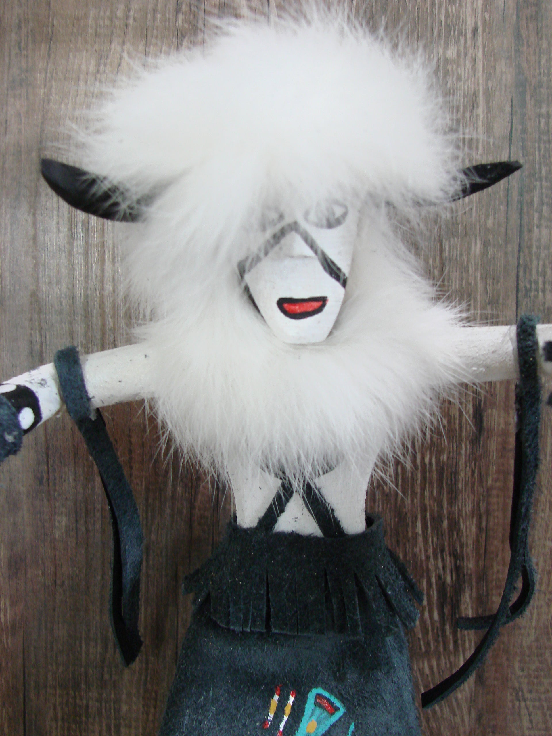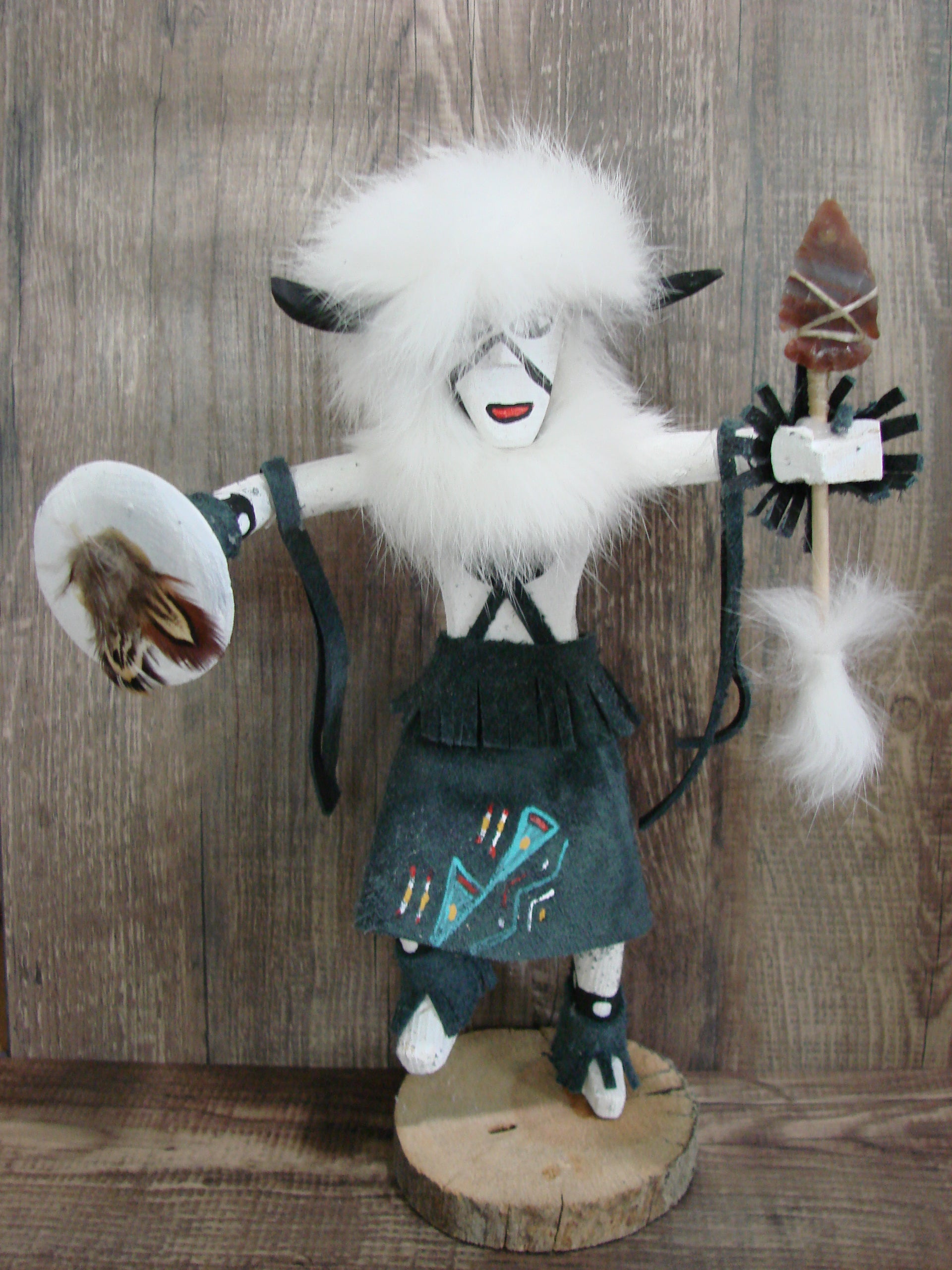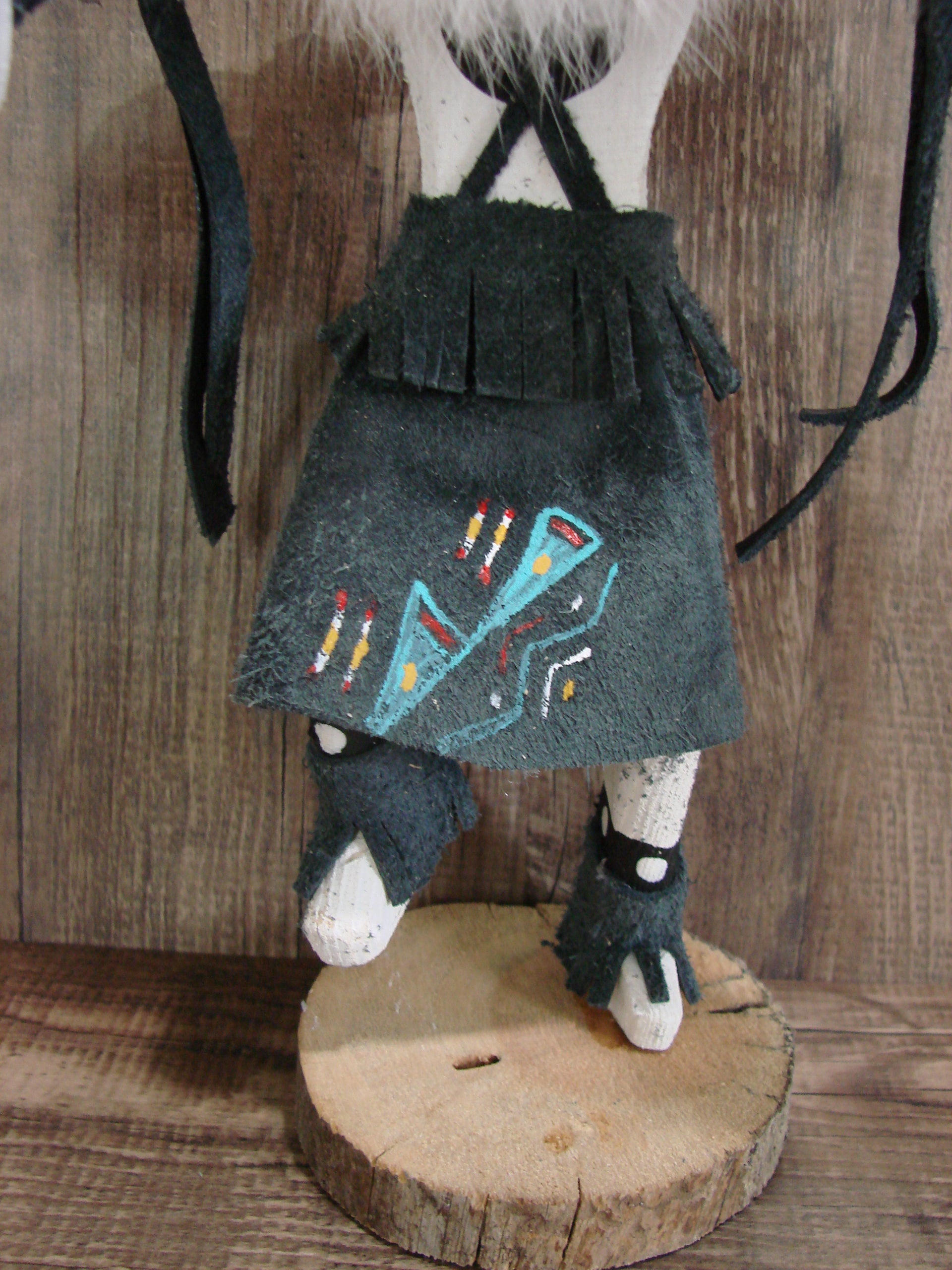 Native American Navajo Indian Kachina Dancer from the Navajo Nation. This Kachina features beautiful hand painting and hand carving from top to bottom. This Kachina is carved into pine and decorated with feathers, Rabbit Fur, and leather. Navajo Indian Handmade and Signed by B.W. on the base. Free shipping included!