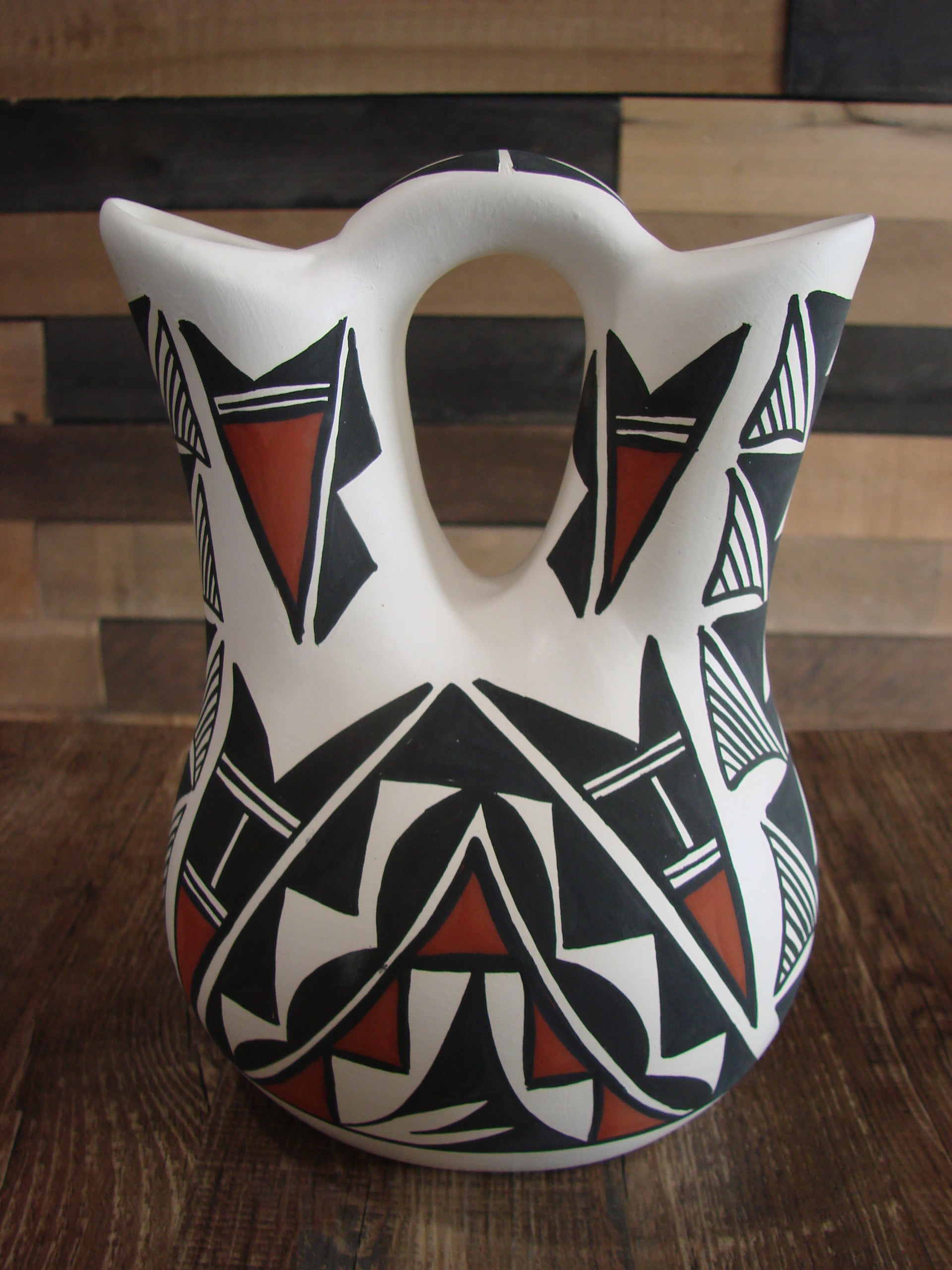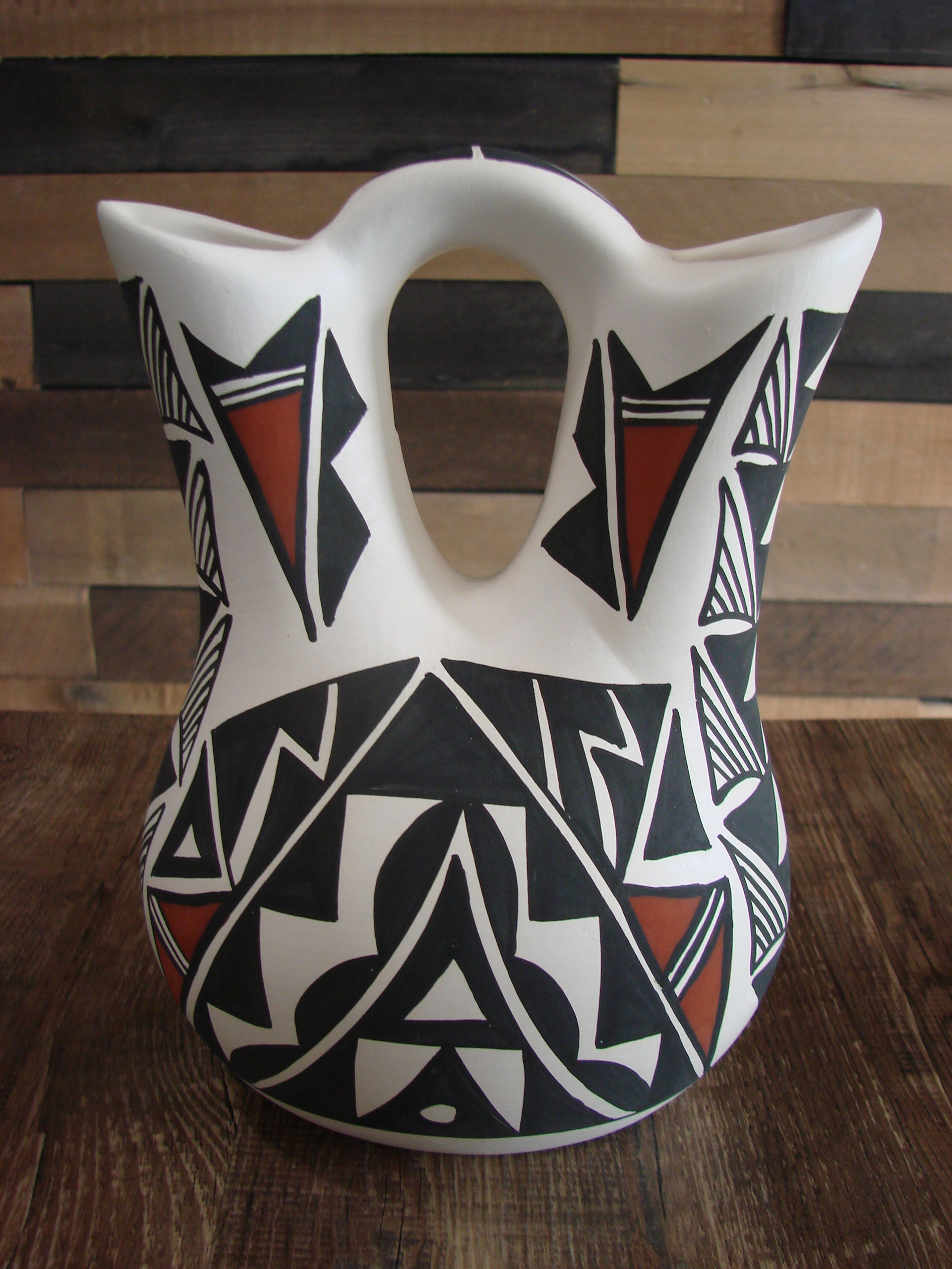 Native American Fine Line Hand Painted Wedding Vase by L. Concho
