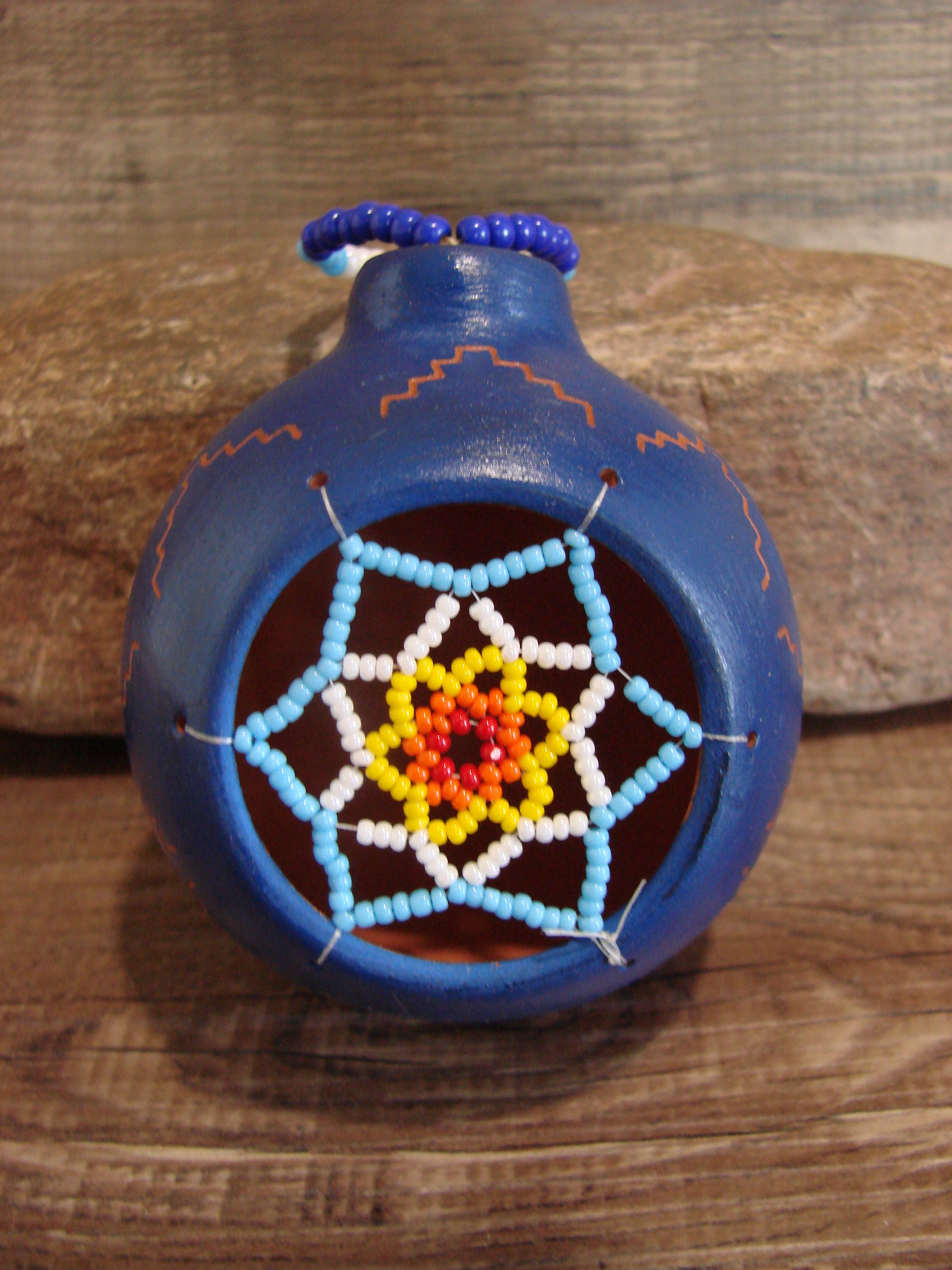 Genuine Native American Navajo Indian Hand Etched, Hand Painted, and Hand Beaded Dream Catcher Ornament Pottery from Western New Mexico. This Beautiful Hand Made Masterpiece features Stunning Details and Navajo patterns throughout! Hand Made by Kianna Benally. Signed on the bottom. Free shipping included!