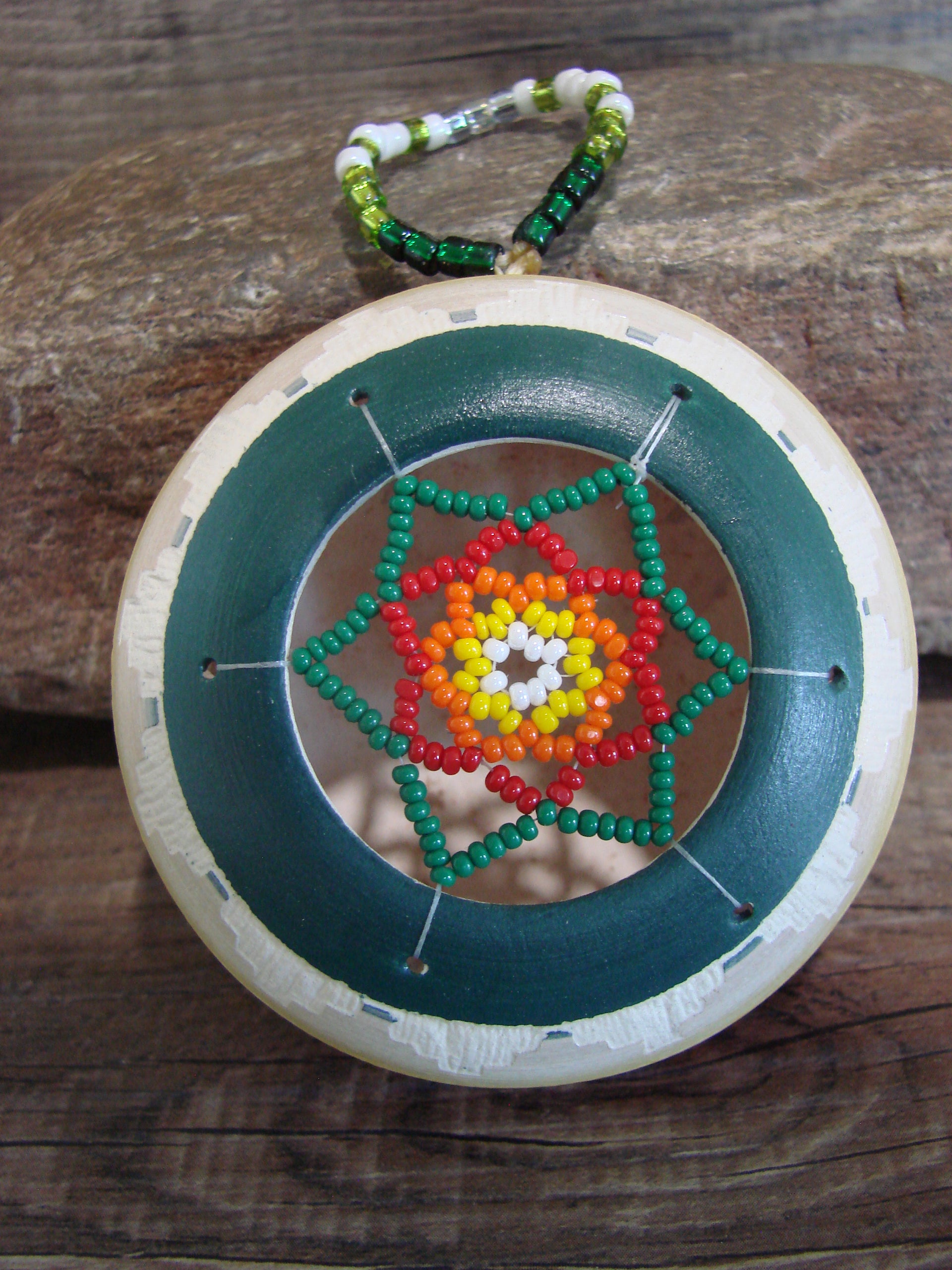 - Native American Hand Etched Beaded Dream Catcher Ornament - Benally