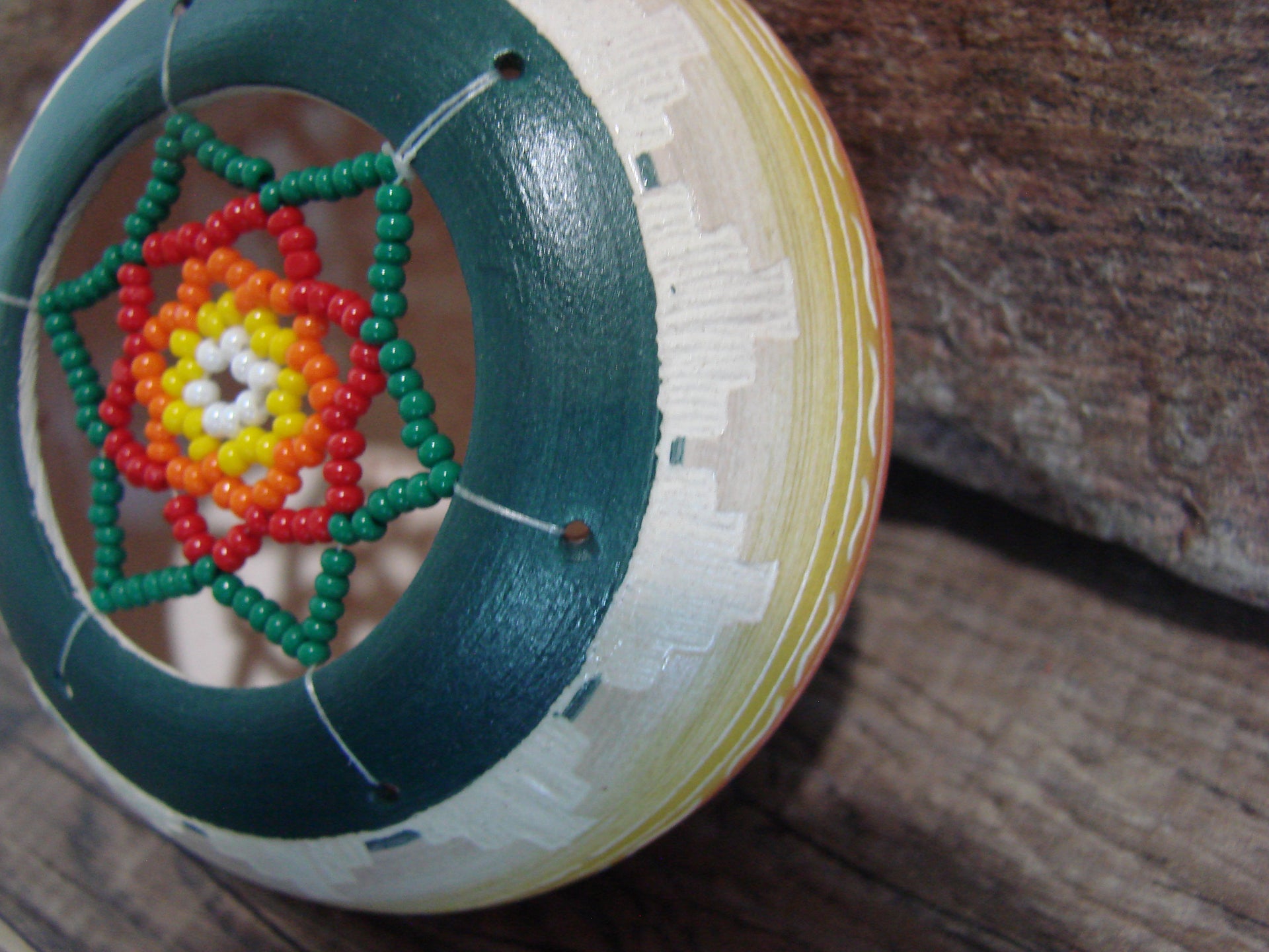 Genuine Native American Navajo Indian Hand Etched, Hand Painted, and Hand Beaded Dream Catcher Ornament Pottery from Western New Mexico. This Beautiful Hand Made Masterpiece features Stunning Details and Navajo patterns throughout! Hand Made by Kianna Benally. Signed on the bottom. Free shipping included!