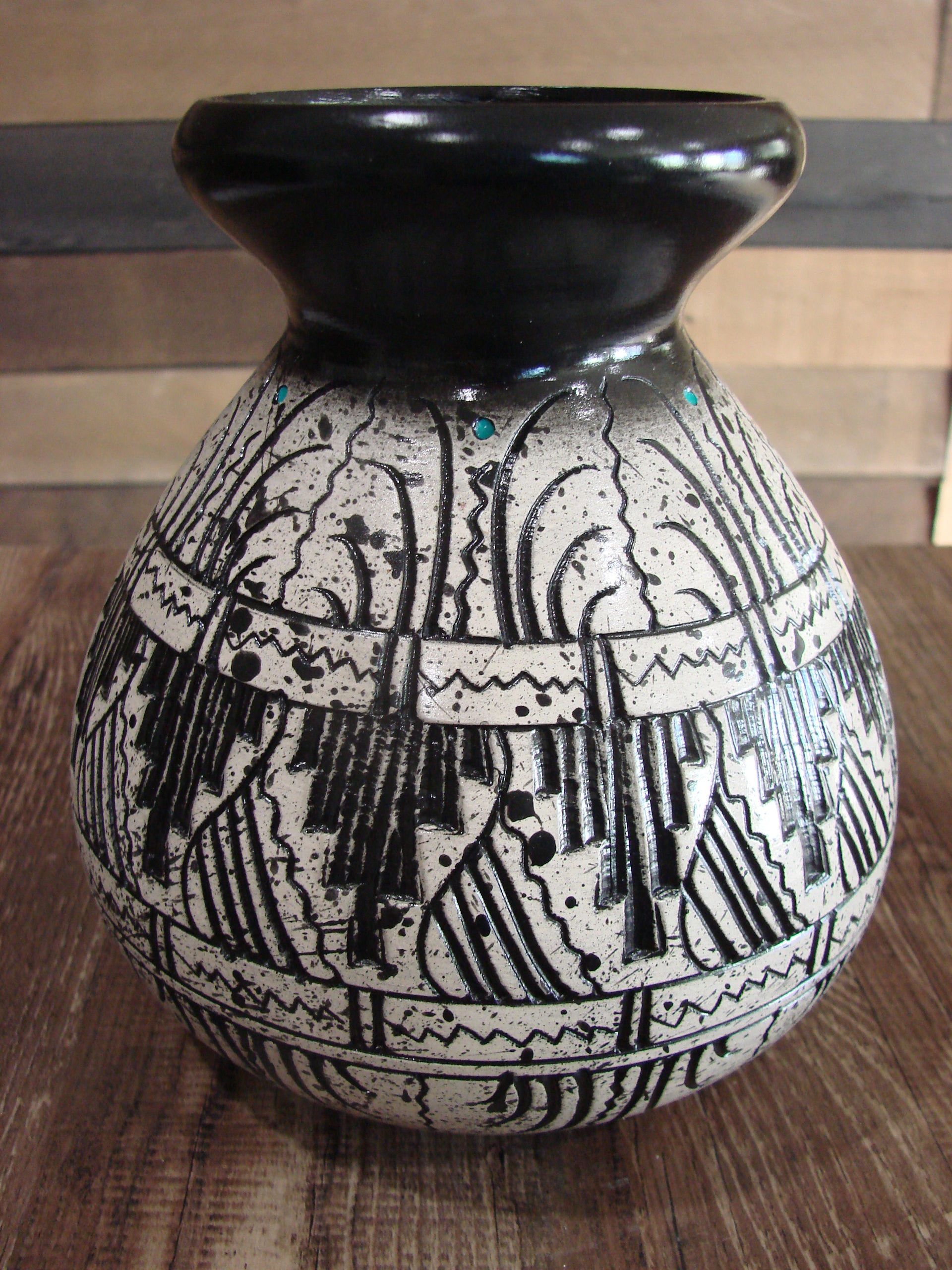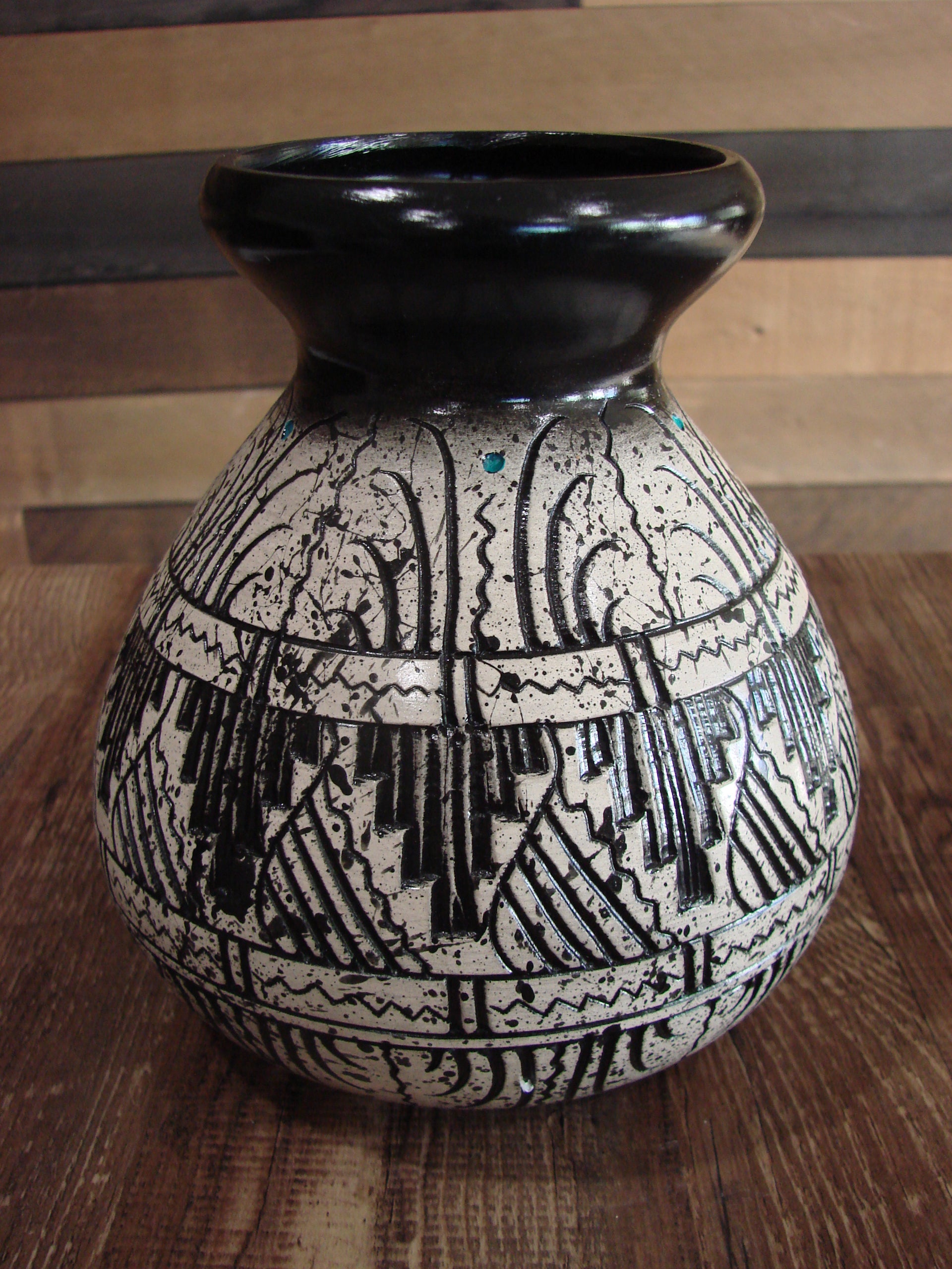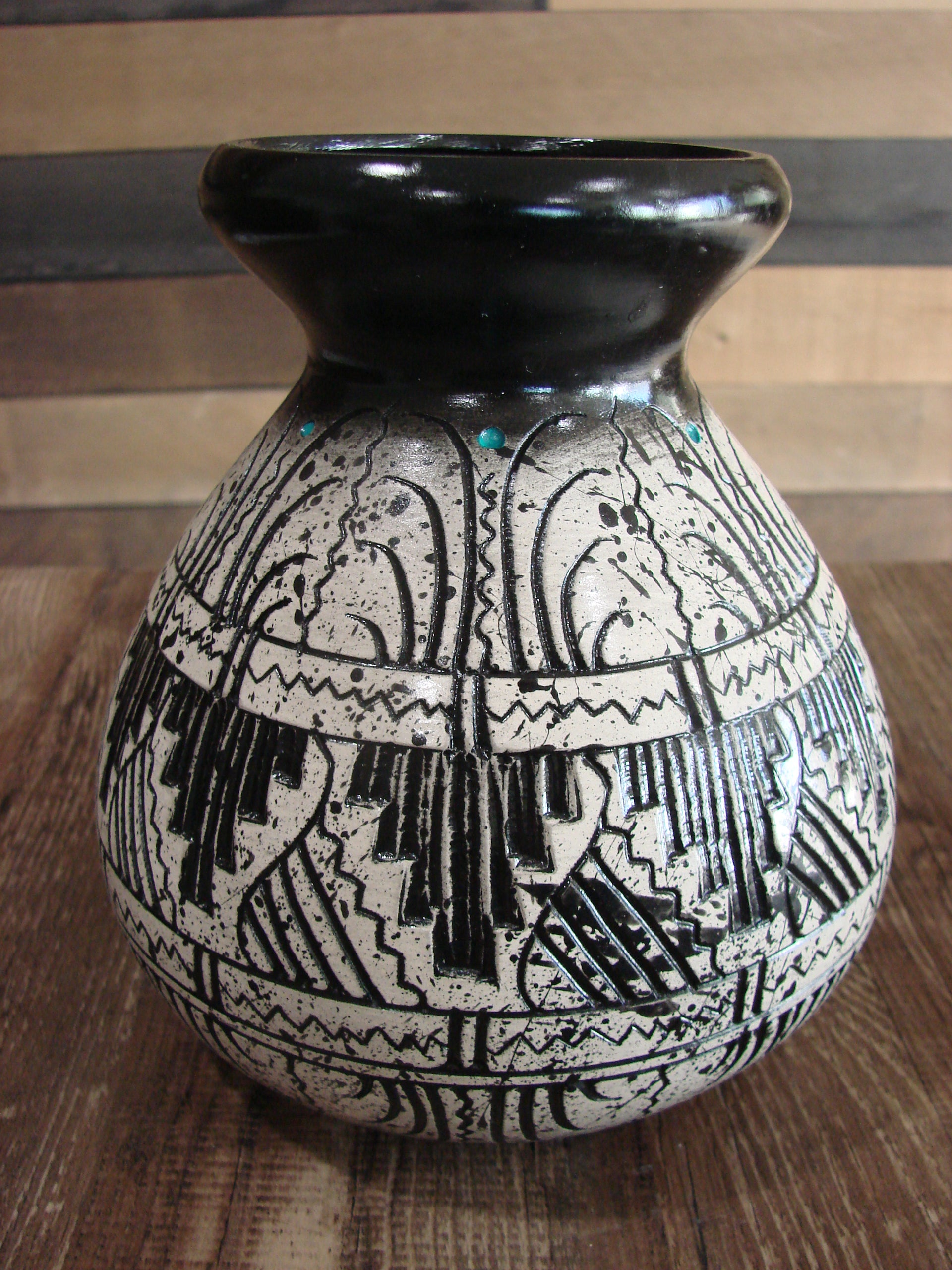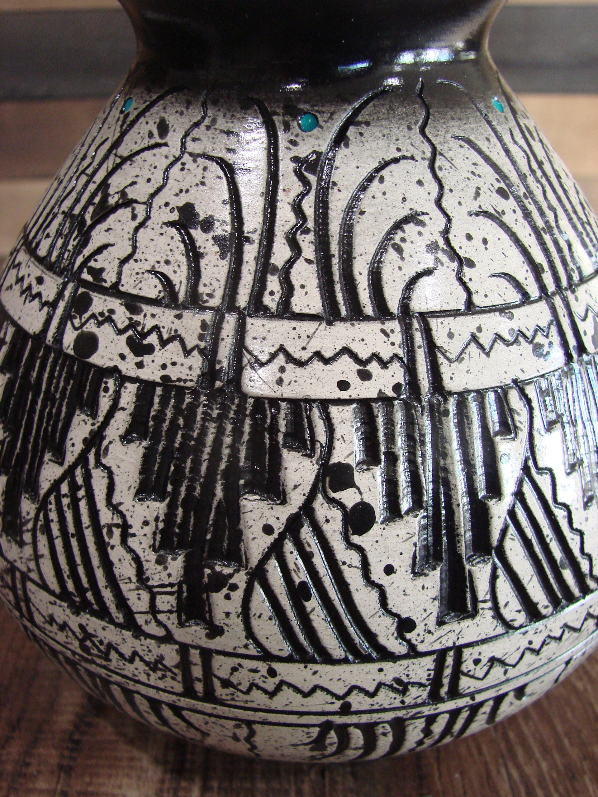 Native American Hand Etched Pottery Signed by Dewayne & Eskeets