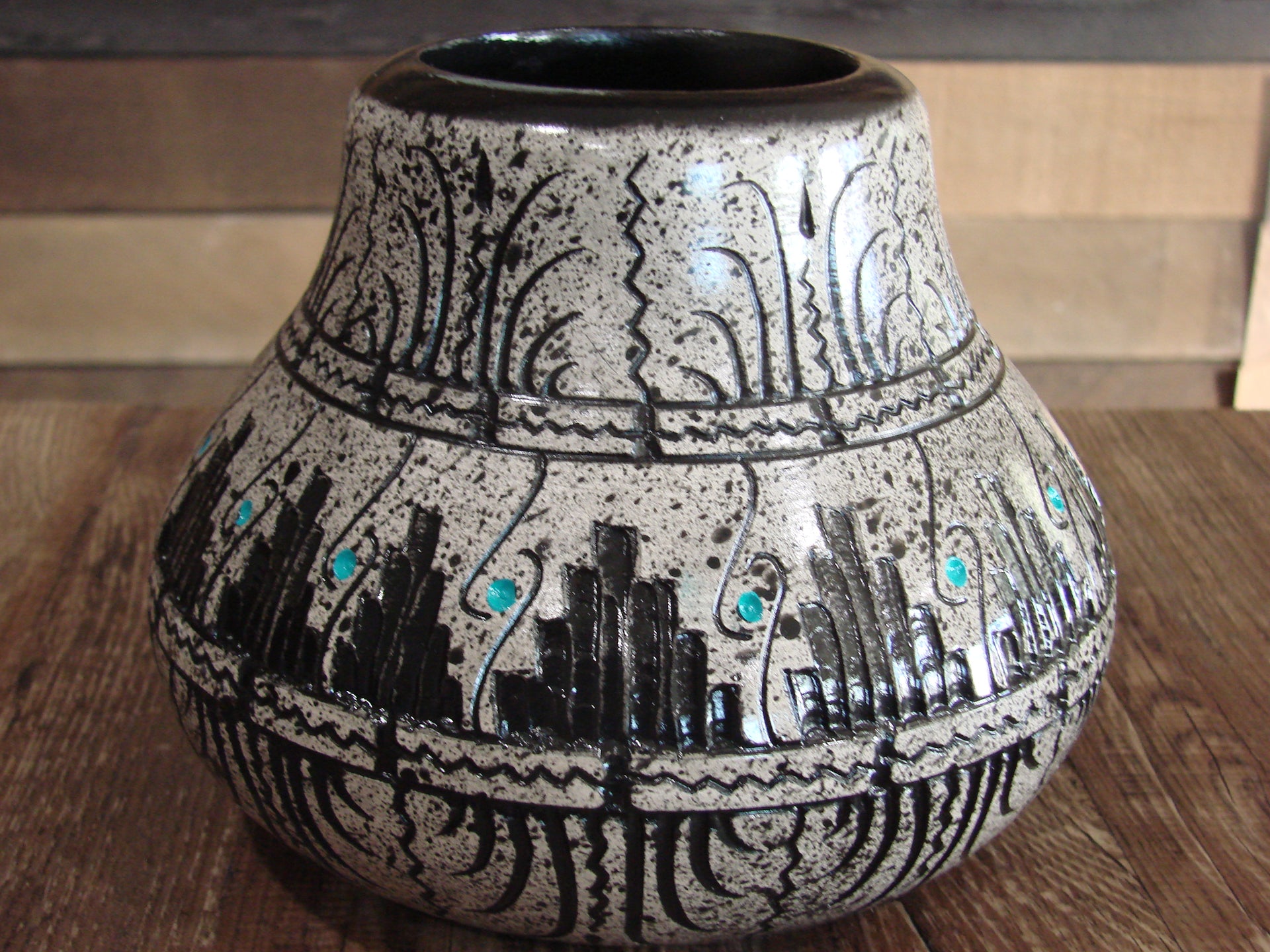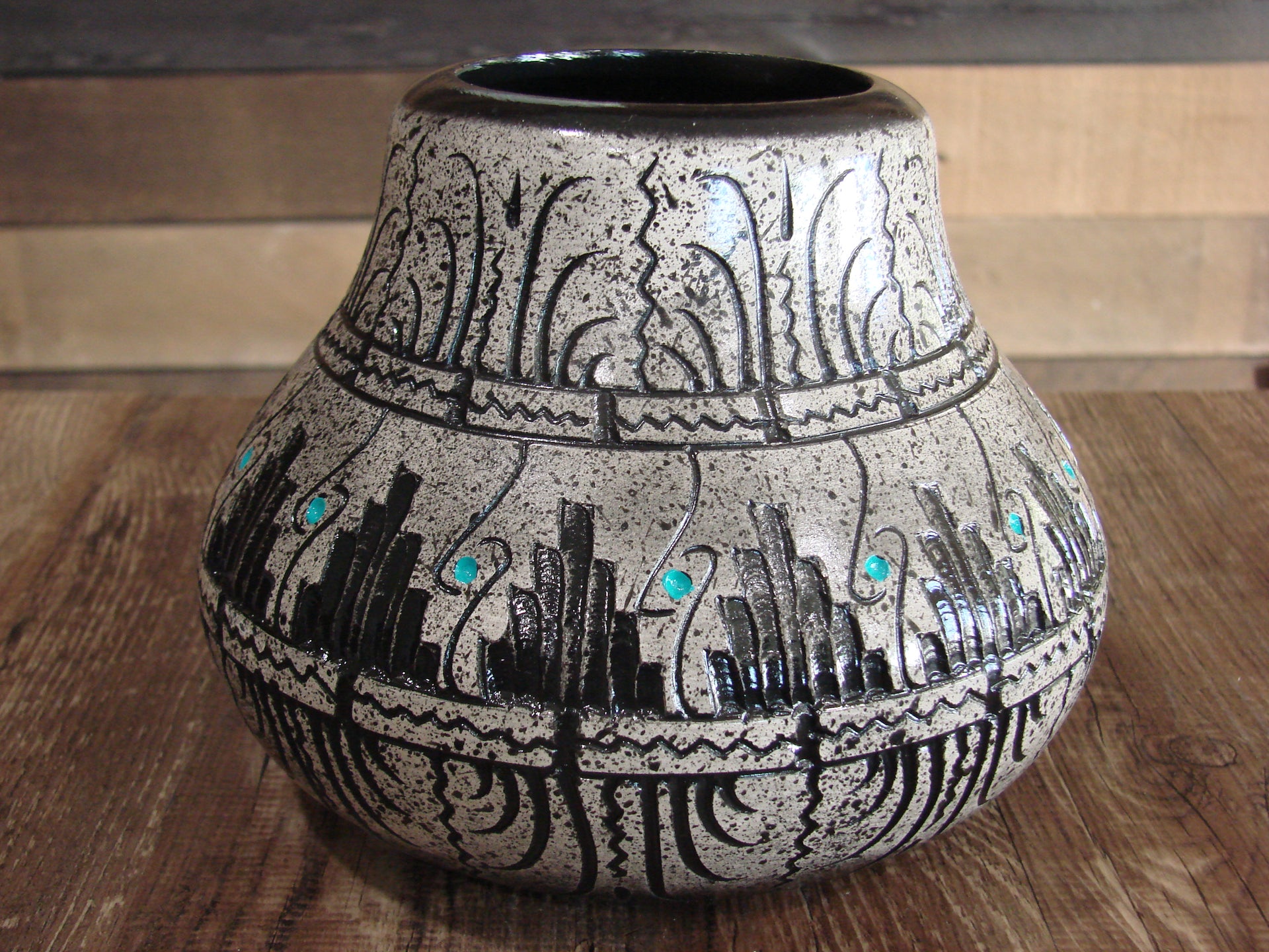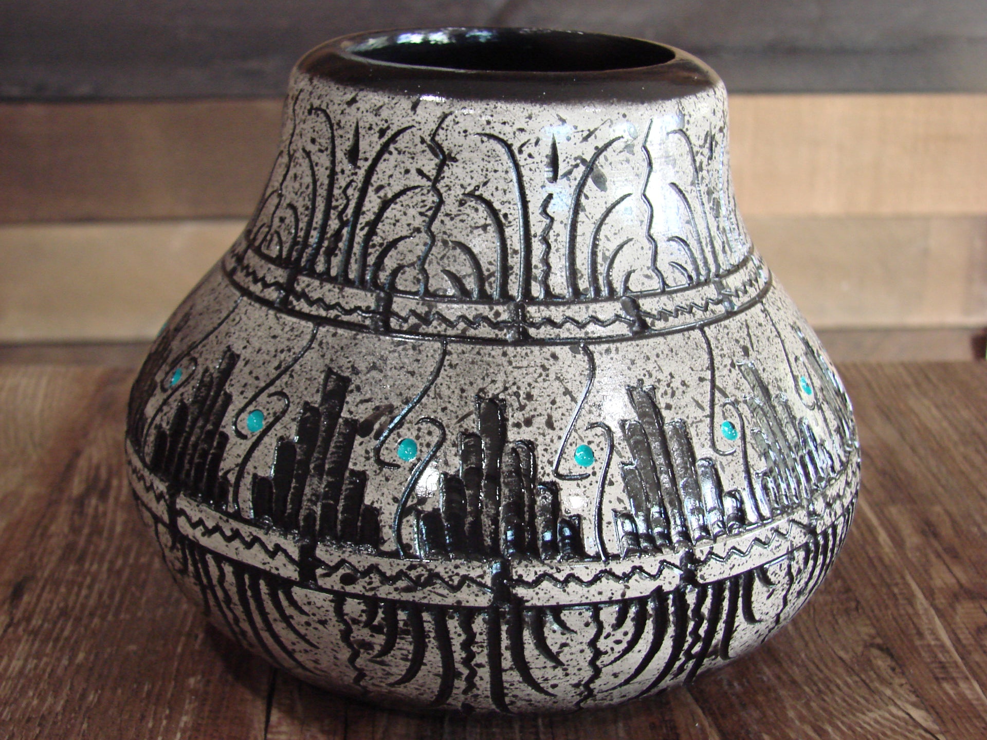 Native American Hand Etched Pottery Signed by Dewayne & Eskeets