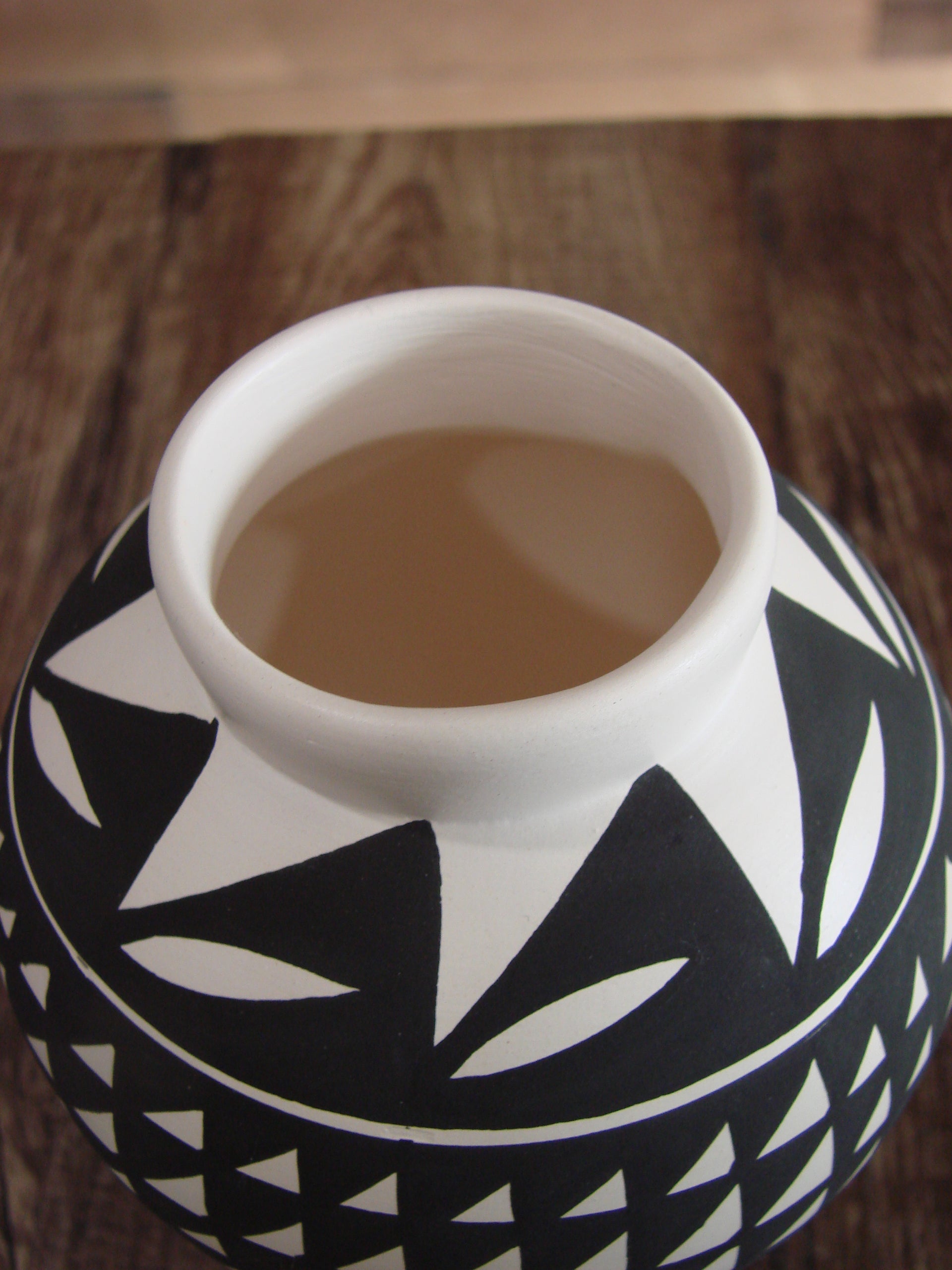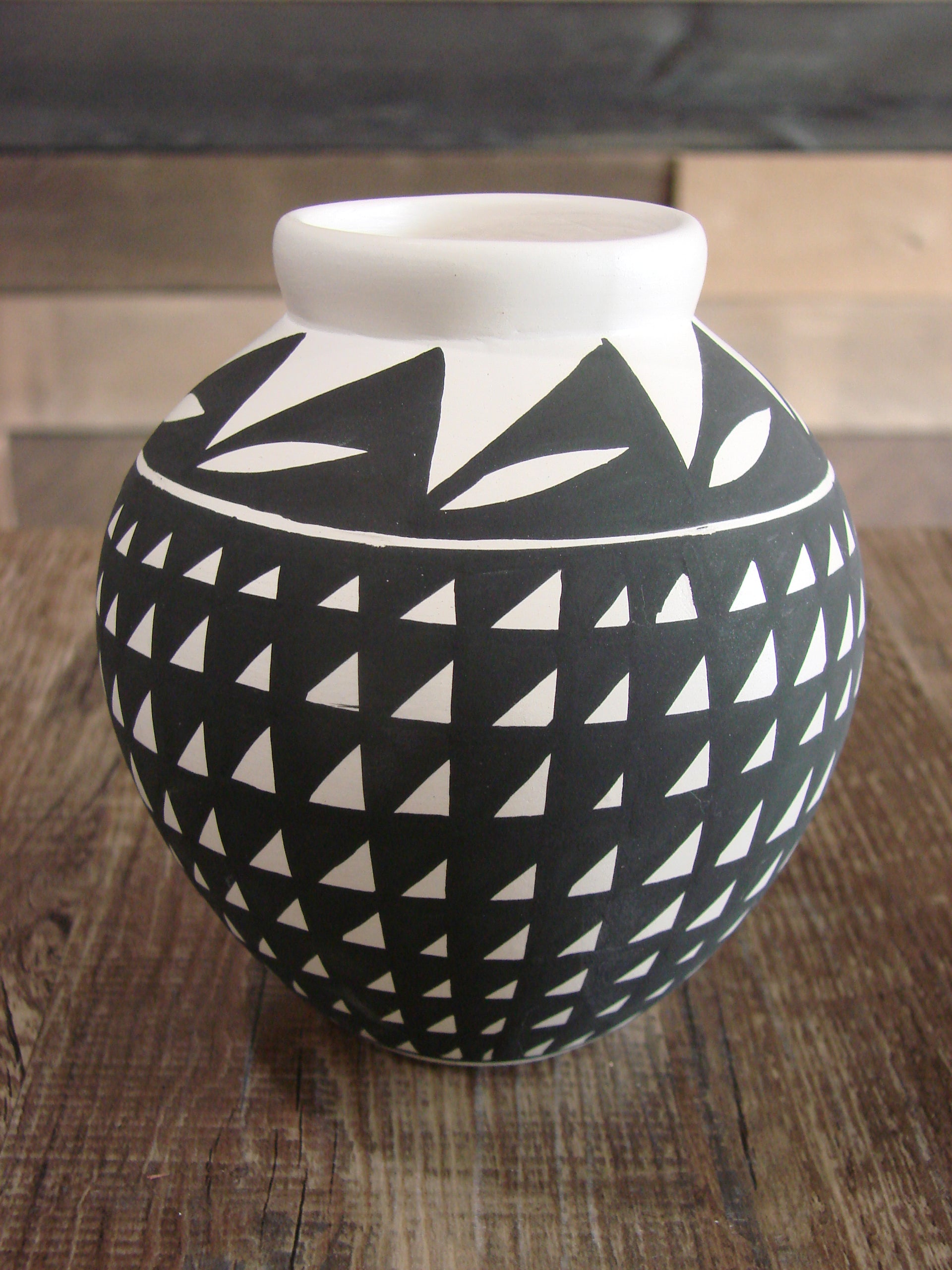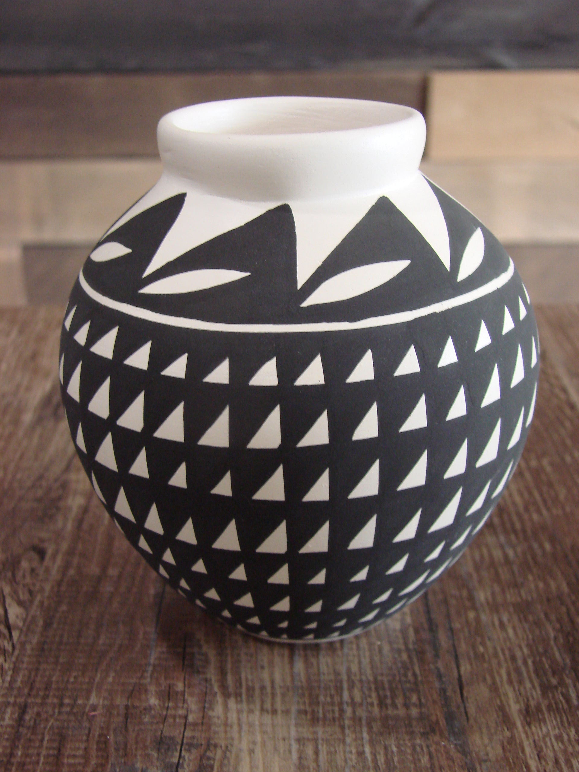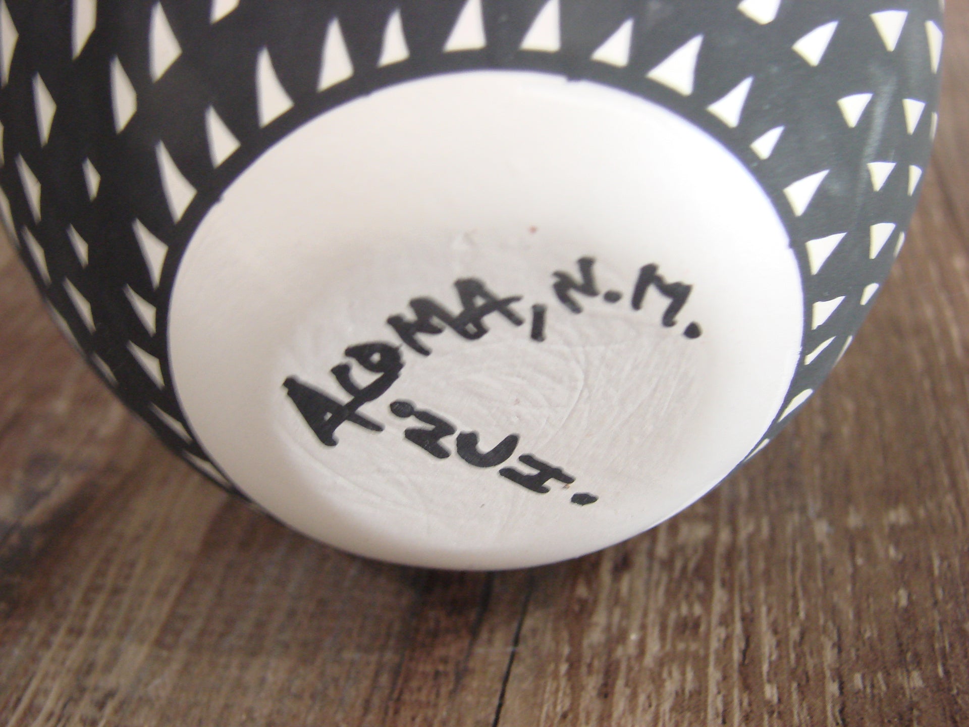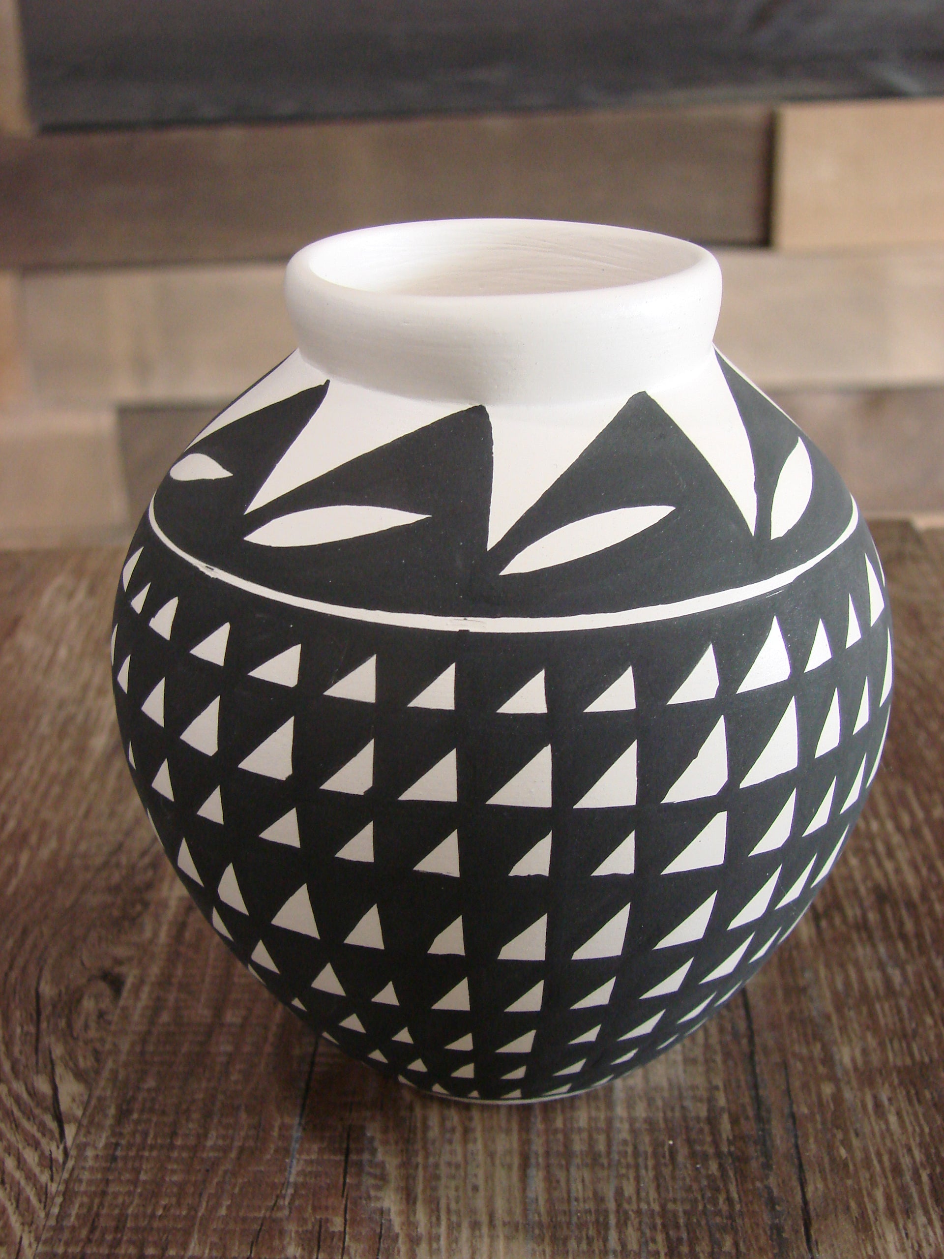 Genuine Native American Acoma Pueblo Indian Hand Painted Fine Line Pottery from Western New Mexico. This piece of pottery features Stunning natural pigment hand painted patterns throughout. The detail is exquisite! Hand painted by Acoma artist L. Concho. The bottom is signed. Free Shipping included!
