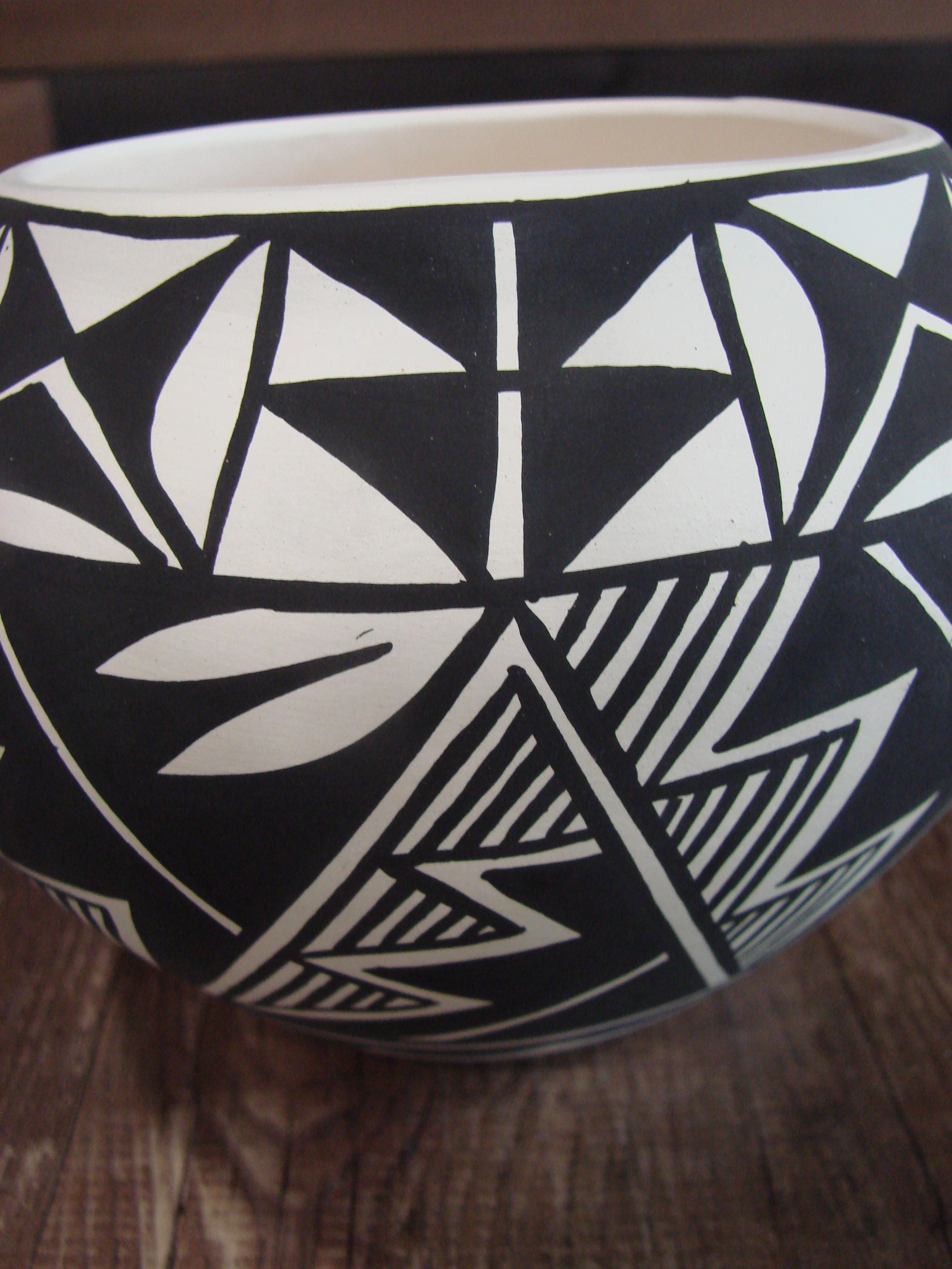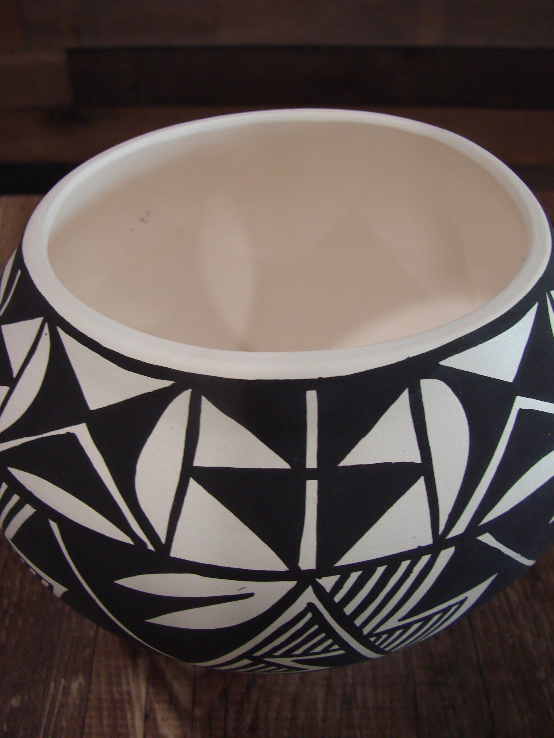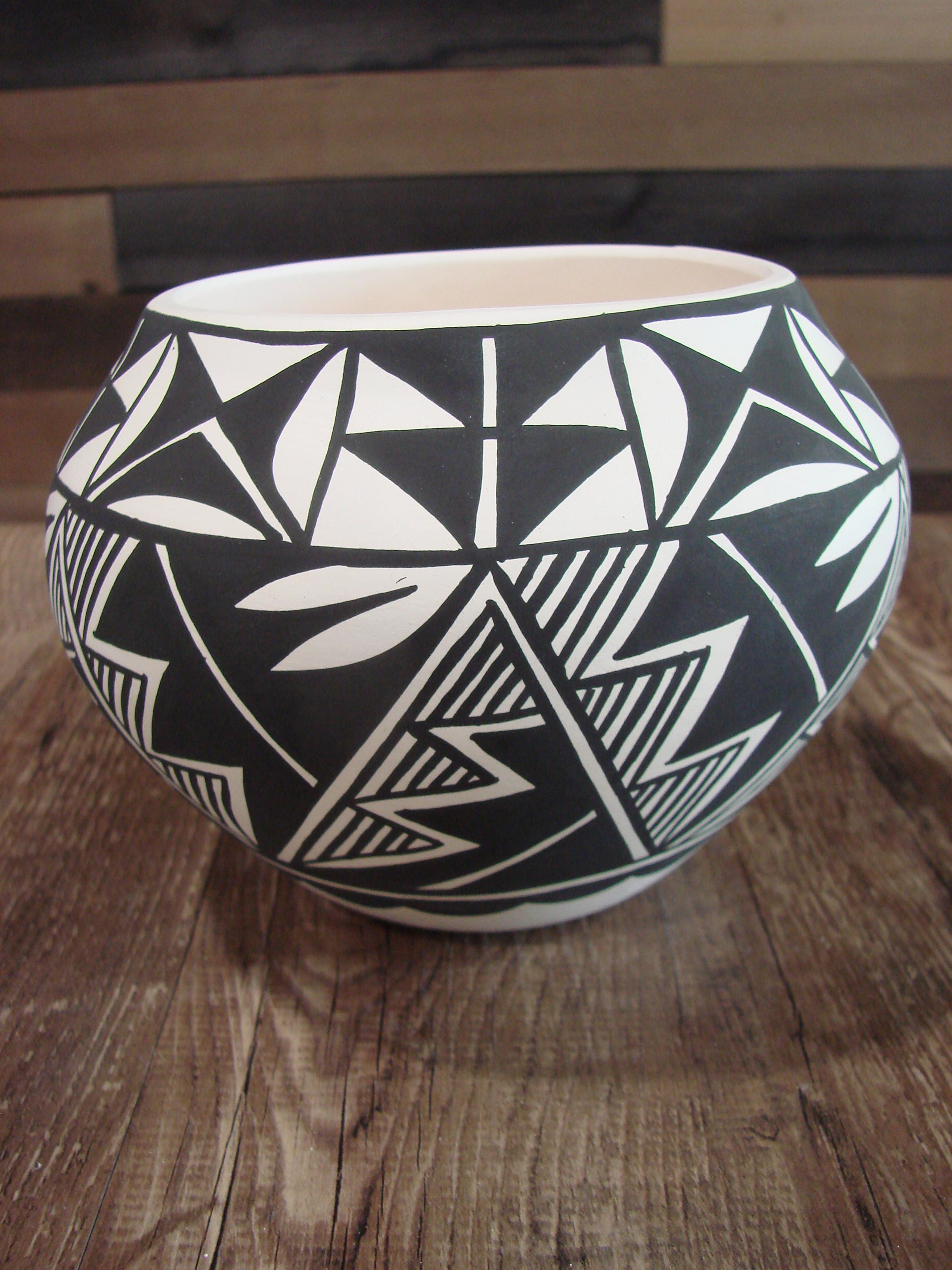 Genuine Native American Acoma Pueblo Indian Hand Painted Fine Line Pottery from Western New Mexico. This piece of pottery features Stunning natural pigment hand painted patterns throughout. The detail is exquisite! Hand painted by Acoma artist L. Concho. The bottom is signed. Free Shipping included!