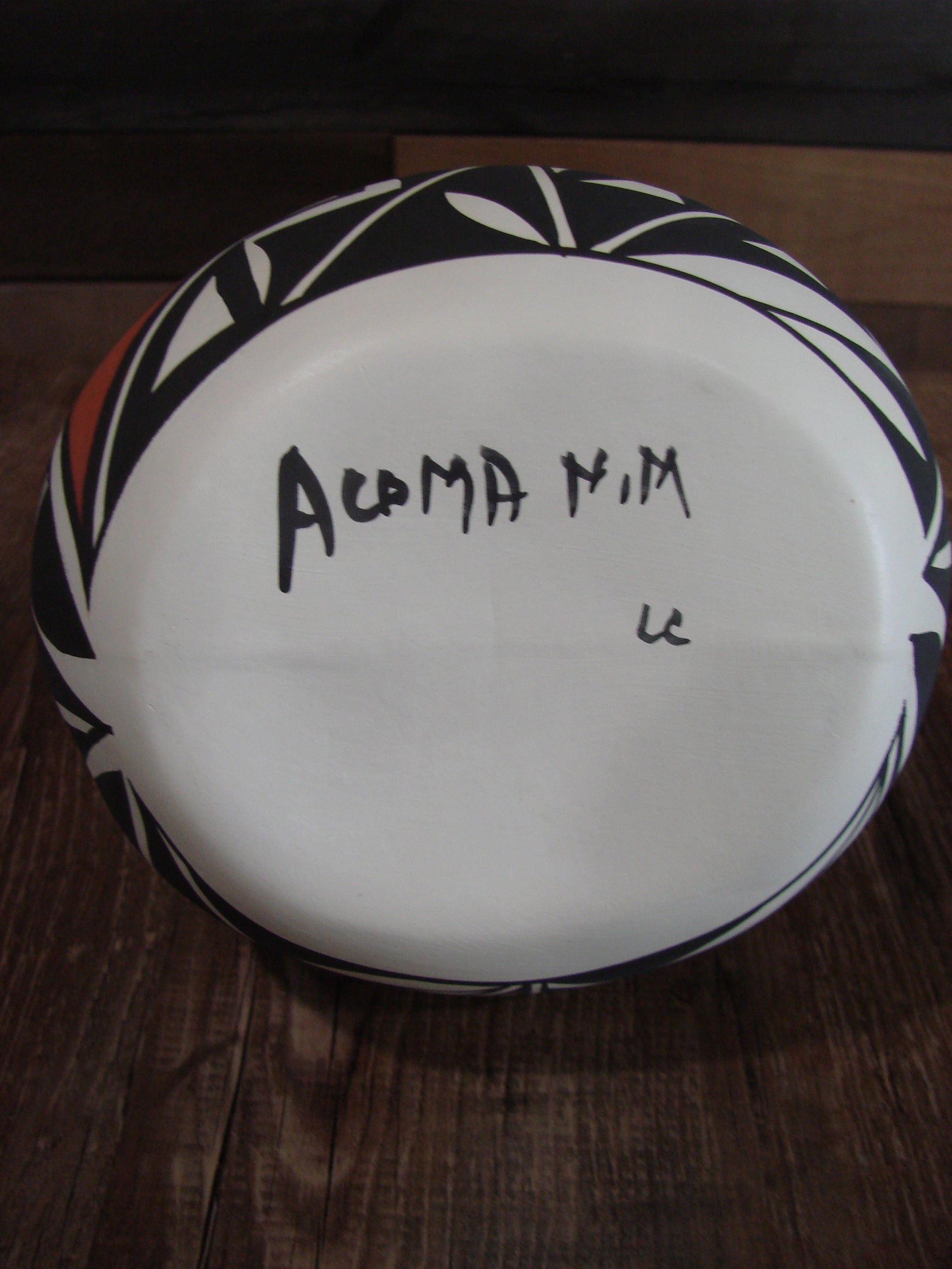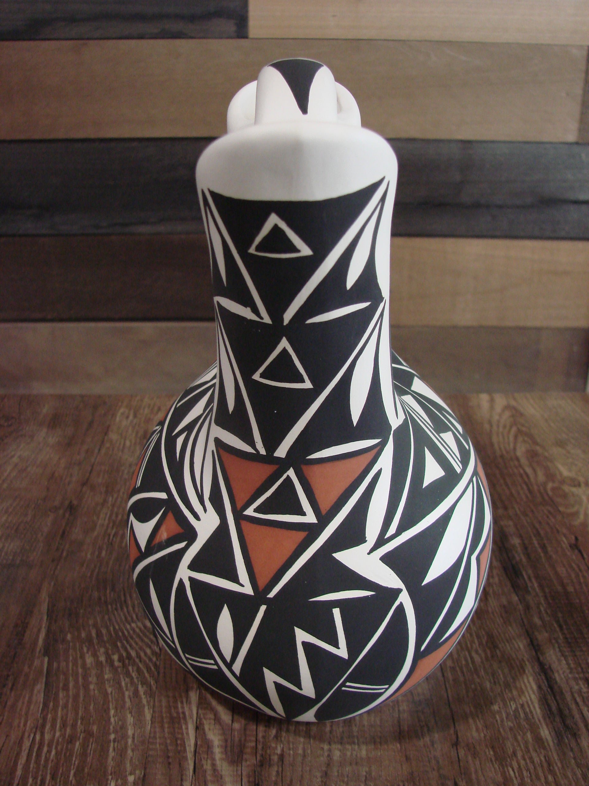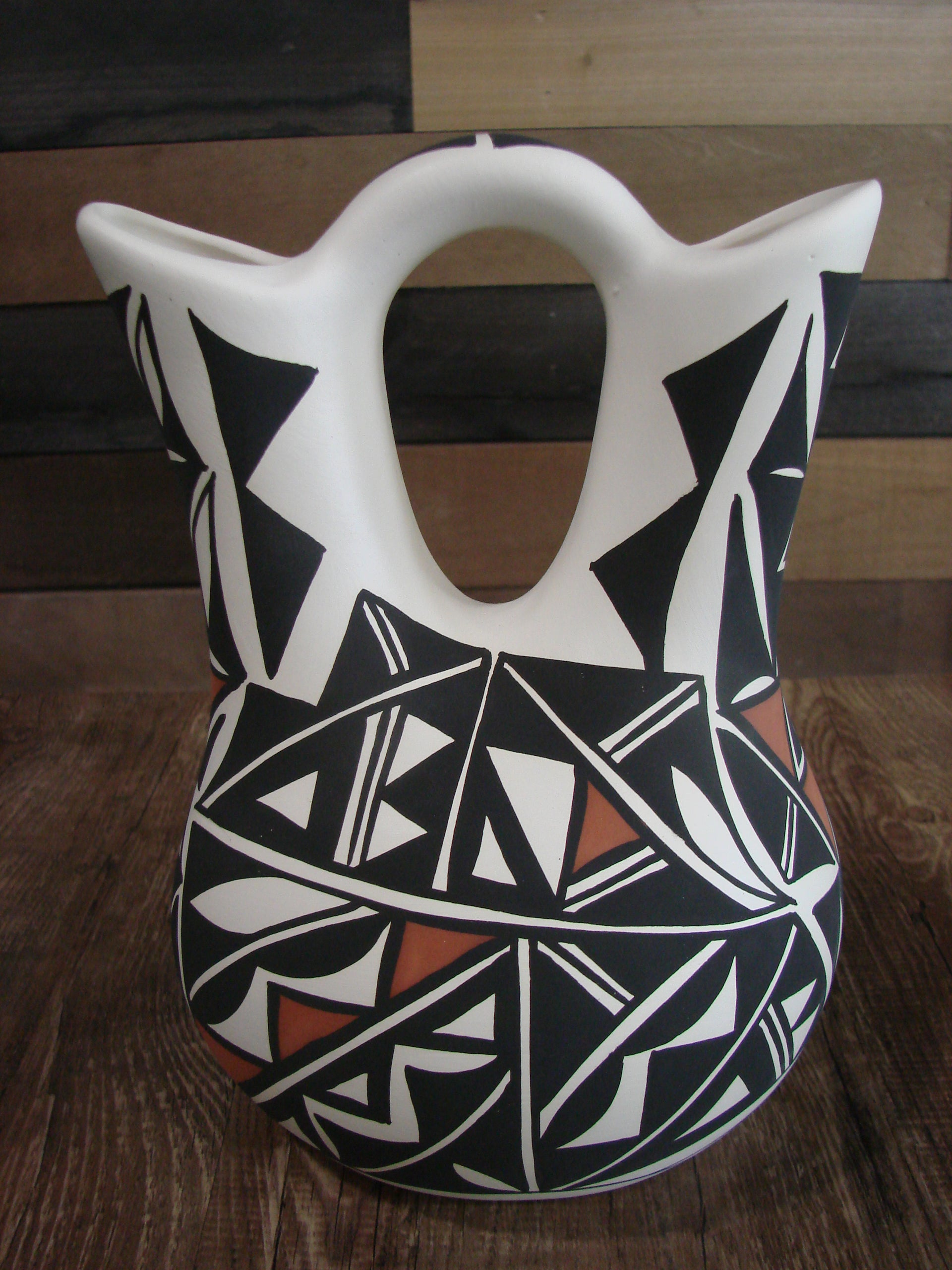 Genuine Native American Acoma Pueblo Indian Hand Painted Fine Line Wedding Vase Pottery from Western New Mexico. This piece of pottery features Stunning natural pigment hand painted patterns throughout. The detail is exquisite! Hand painted by Acoma artist L. Concho. The bottom is signed. Free Shipping included!