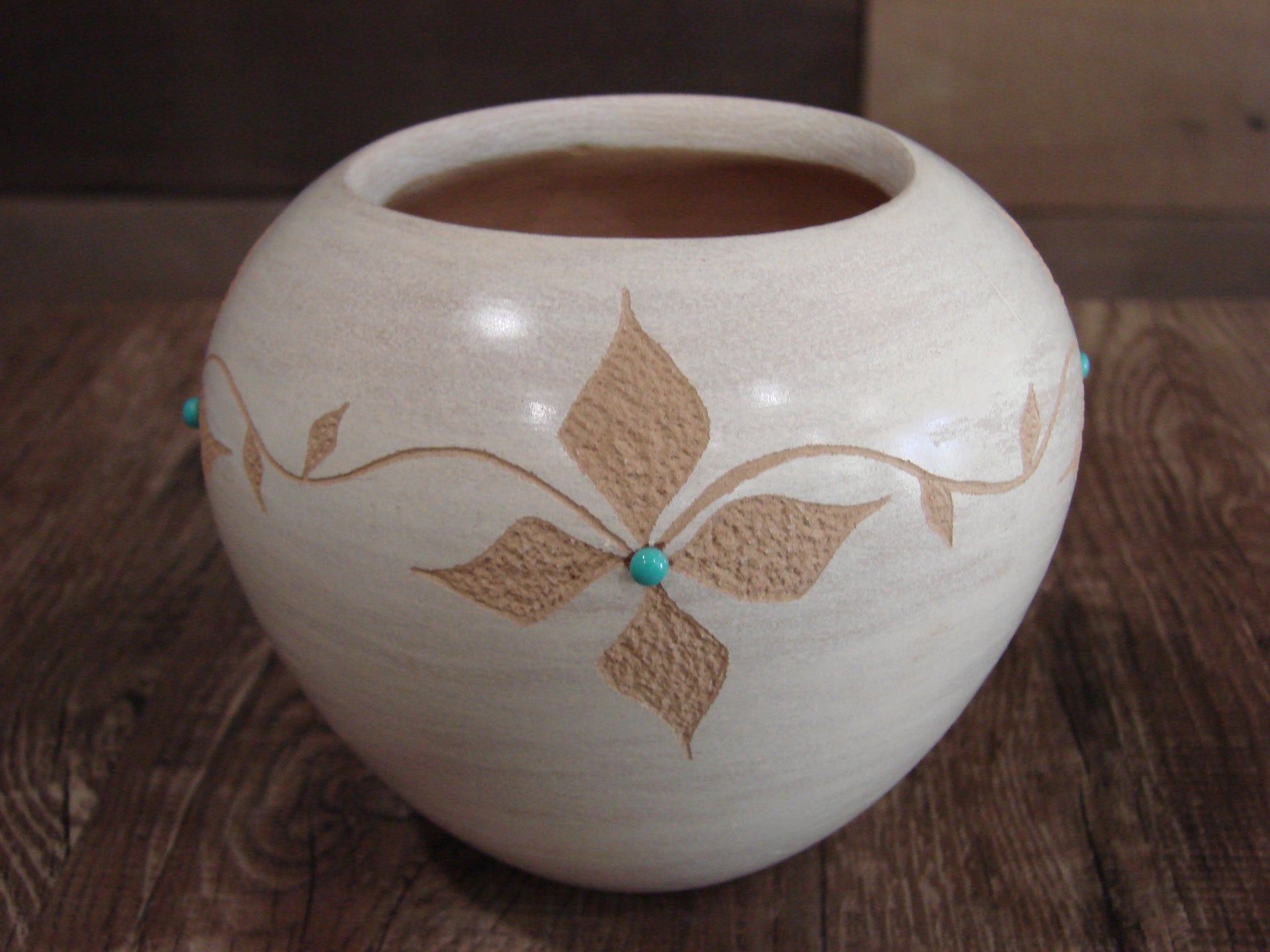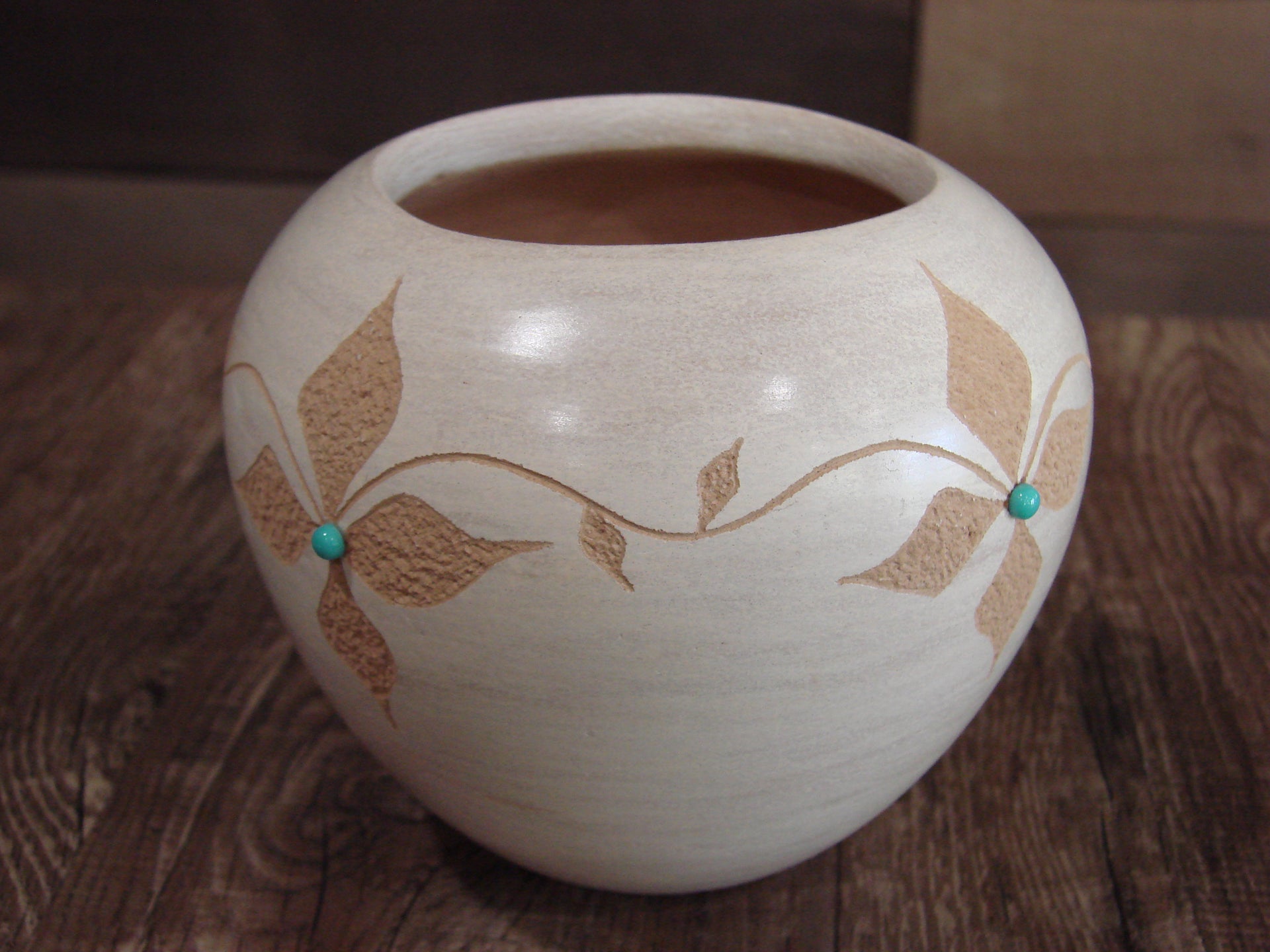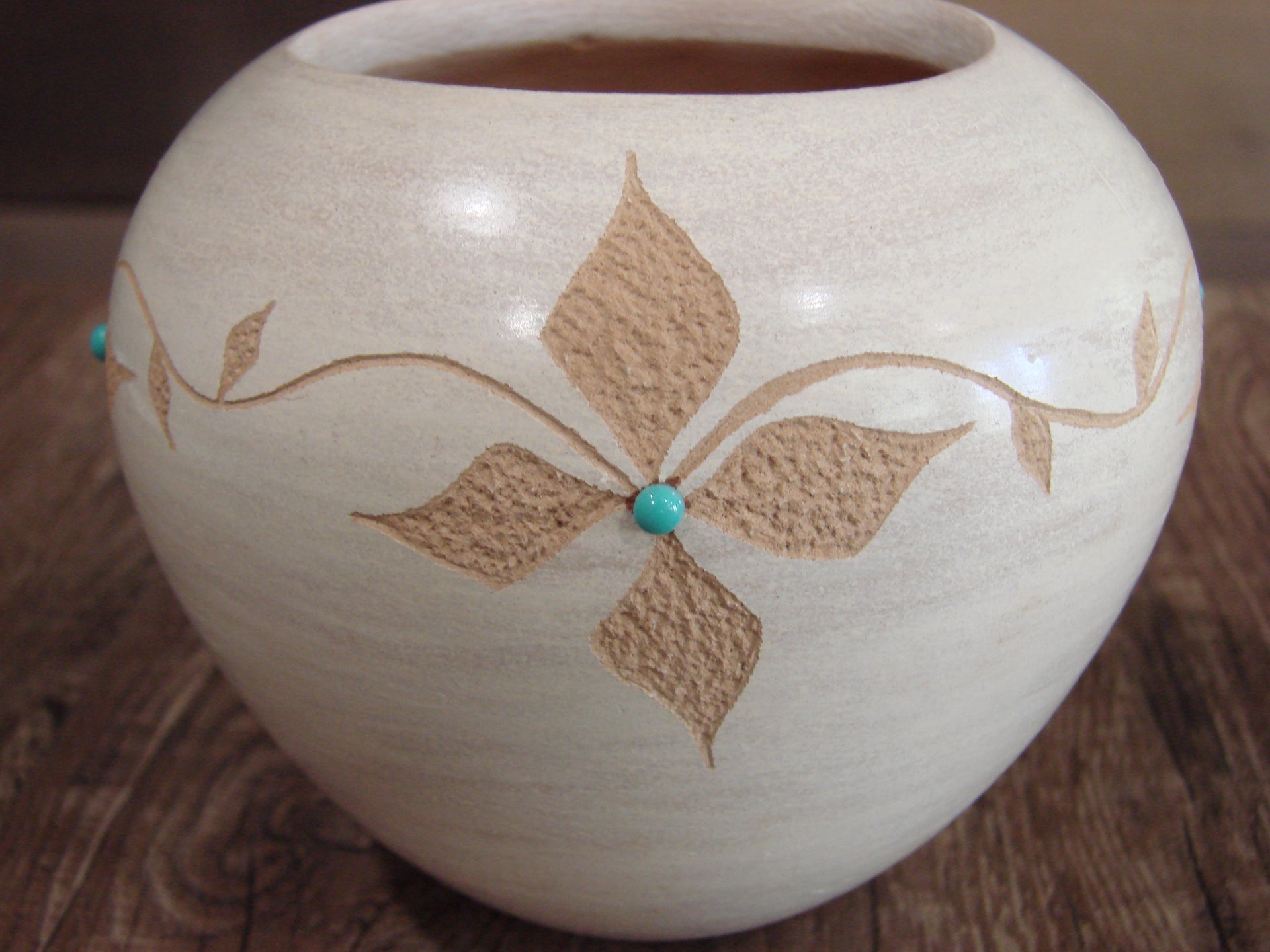- Native American Indian Handmade Clay Floral Pottery by Marcella Yepa