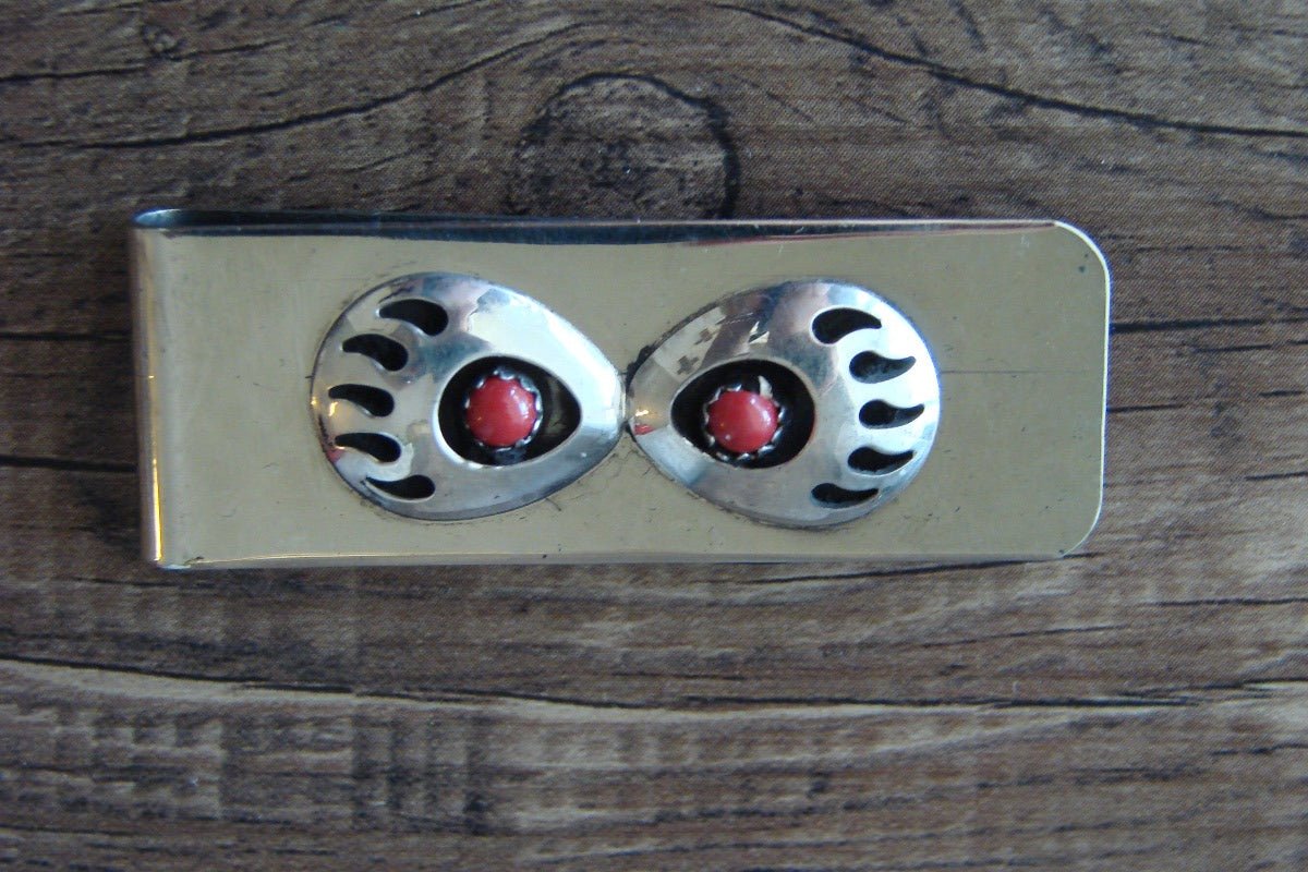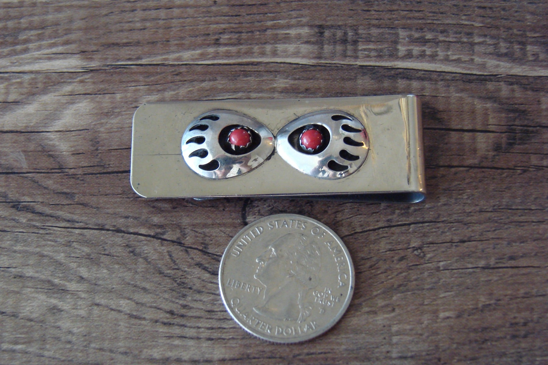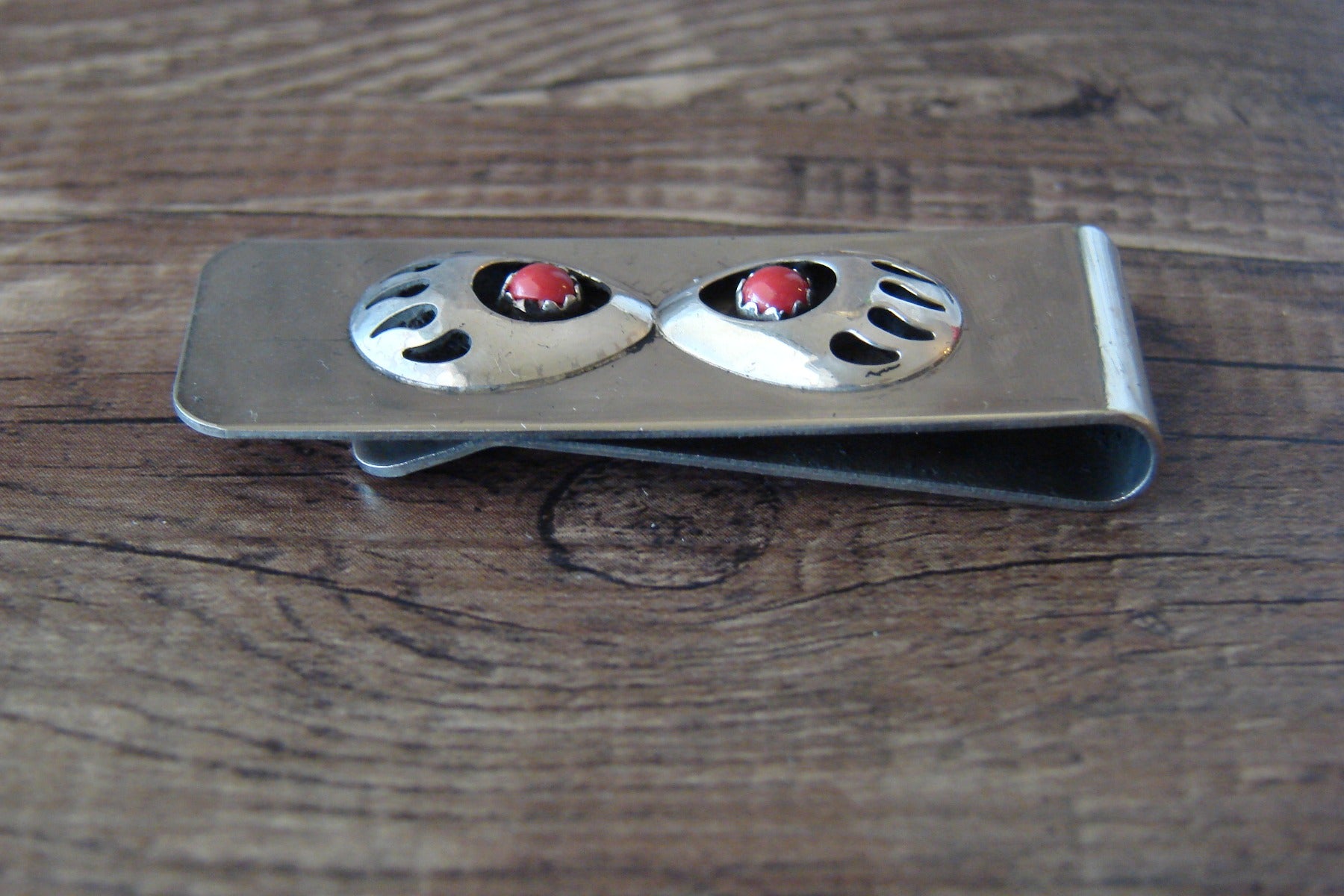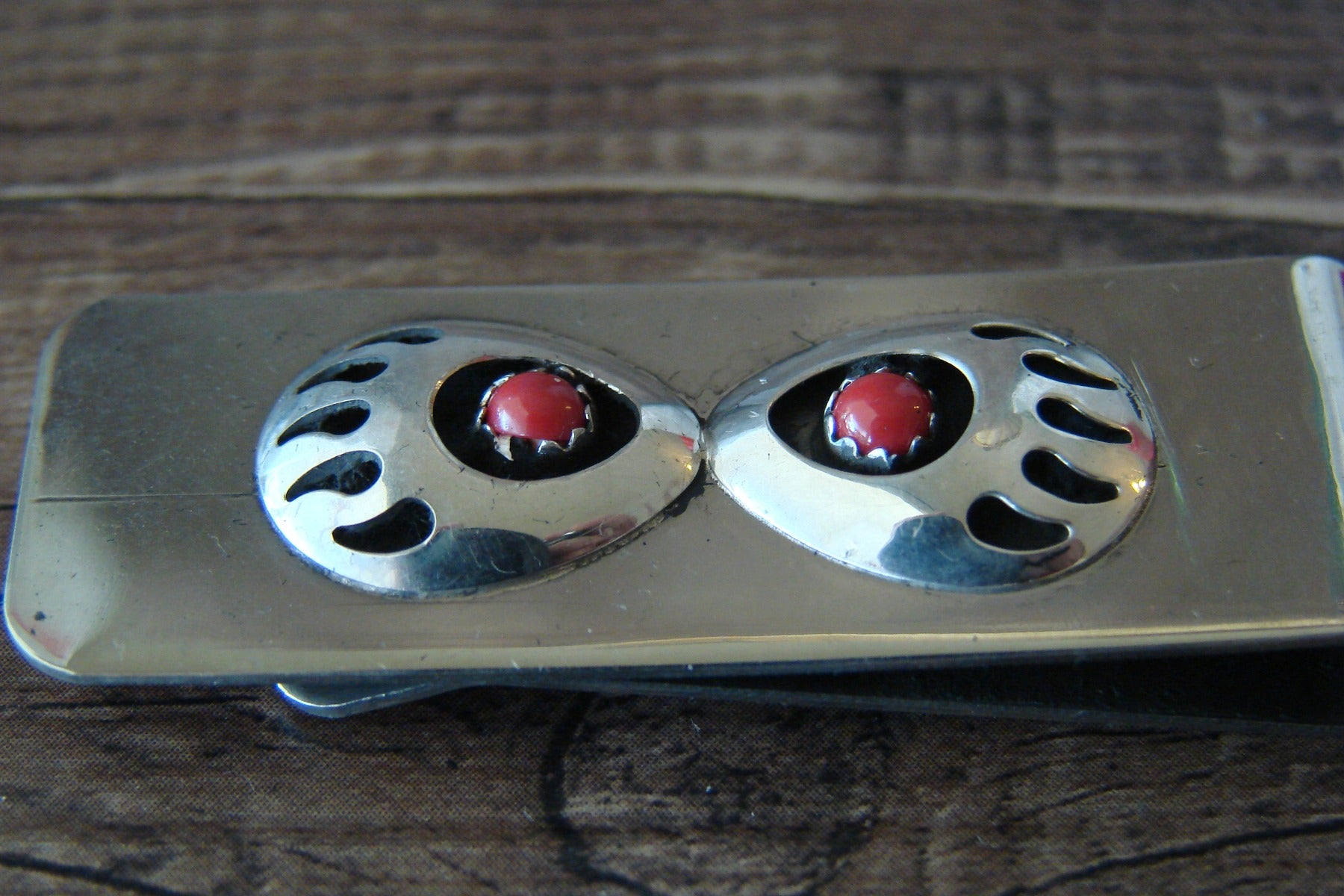 - Native American Indian Sterling Silver & Coral Bear Paw Money Clip