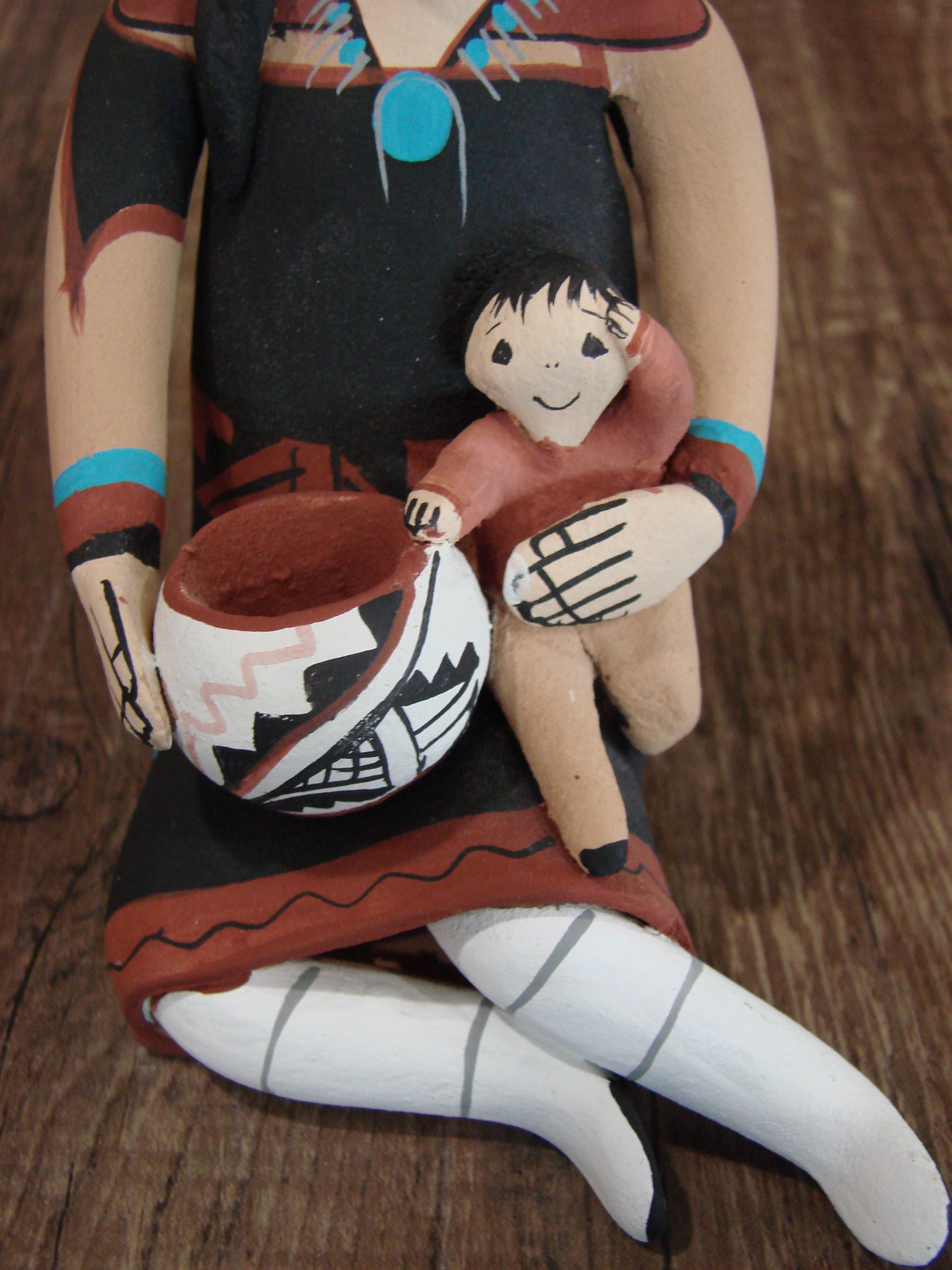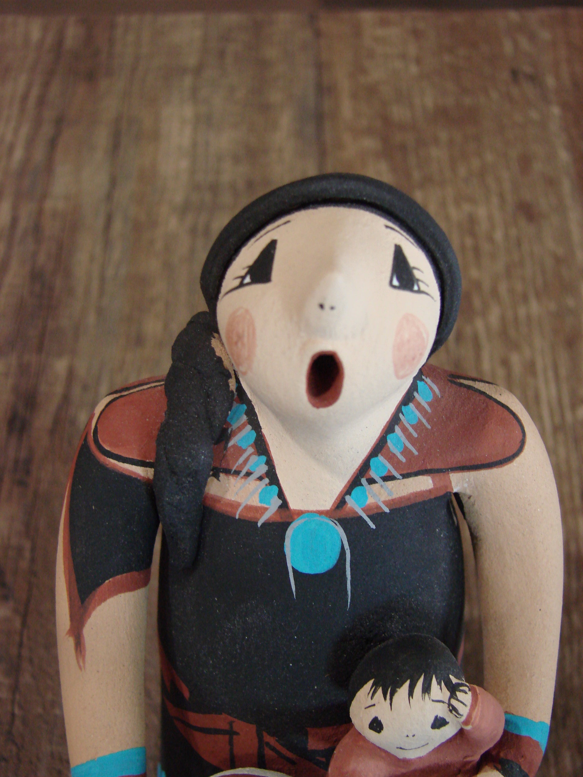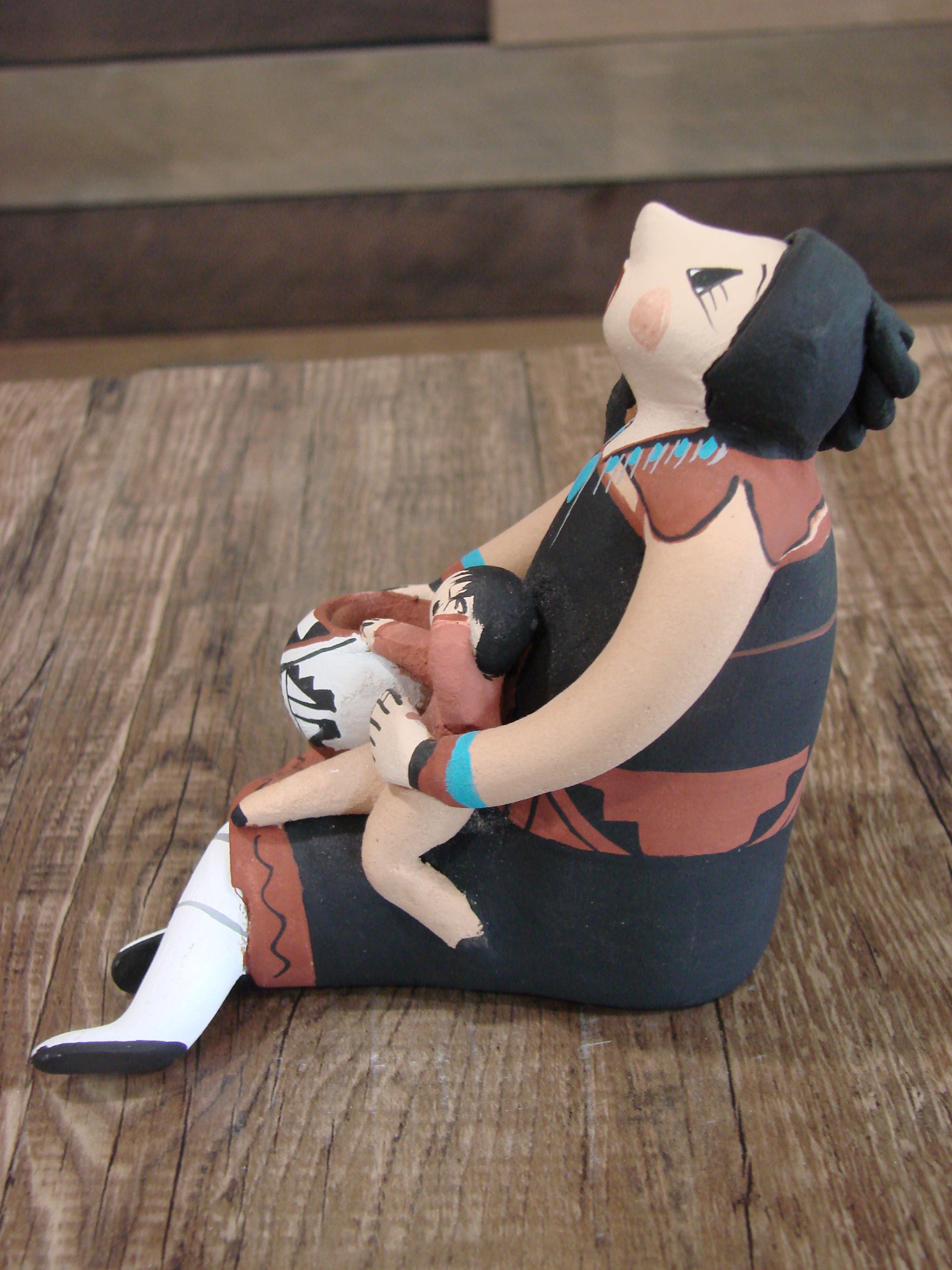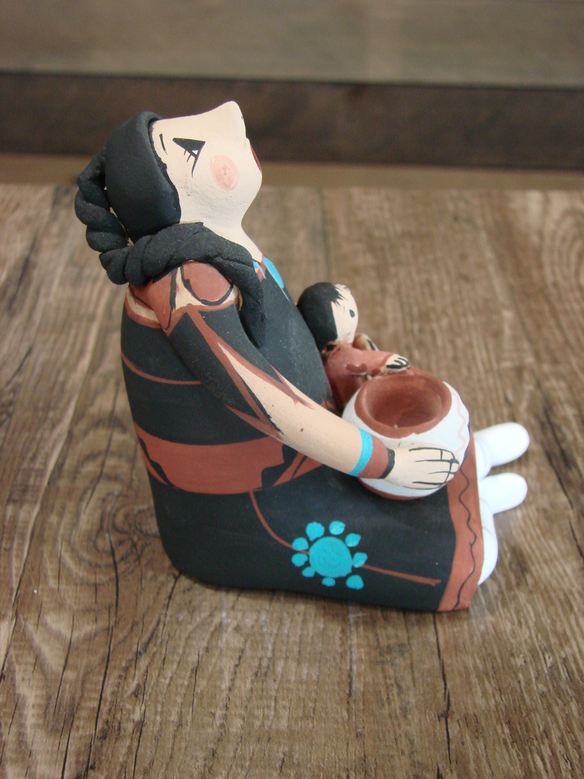 Native American Jemez Indian Hand Made Clay Storyteller from Northern New Mexico. This Stunning Storyteller features a Women singing and holding her children. This piece is handmade with Jemez Mountain Clay. The storyteller is beautifully hand painted throughout. Handmade by J. Lucero. Signed on the bottom. Free shipping included!