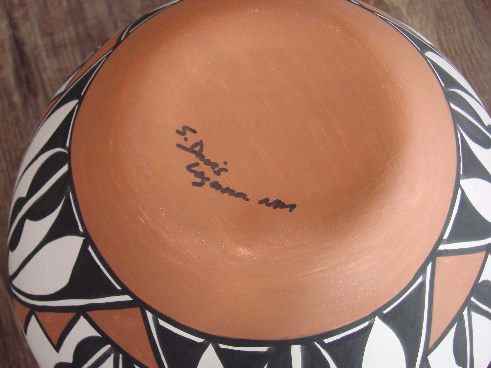 Native American Laguna Pueblo Indian Hand Painted Fine Line Pottery from Western New Mexico. This piece of pottery features Stunning natural pigment hand painted patterns throughout. The detail is exquisite! Hand painted by Laguna artist S. Davis. The bottom is signed. Free Shipping included!