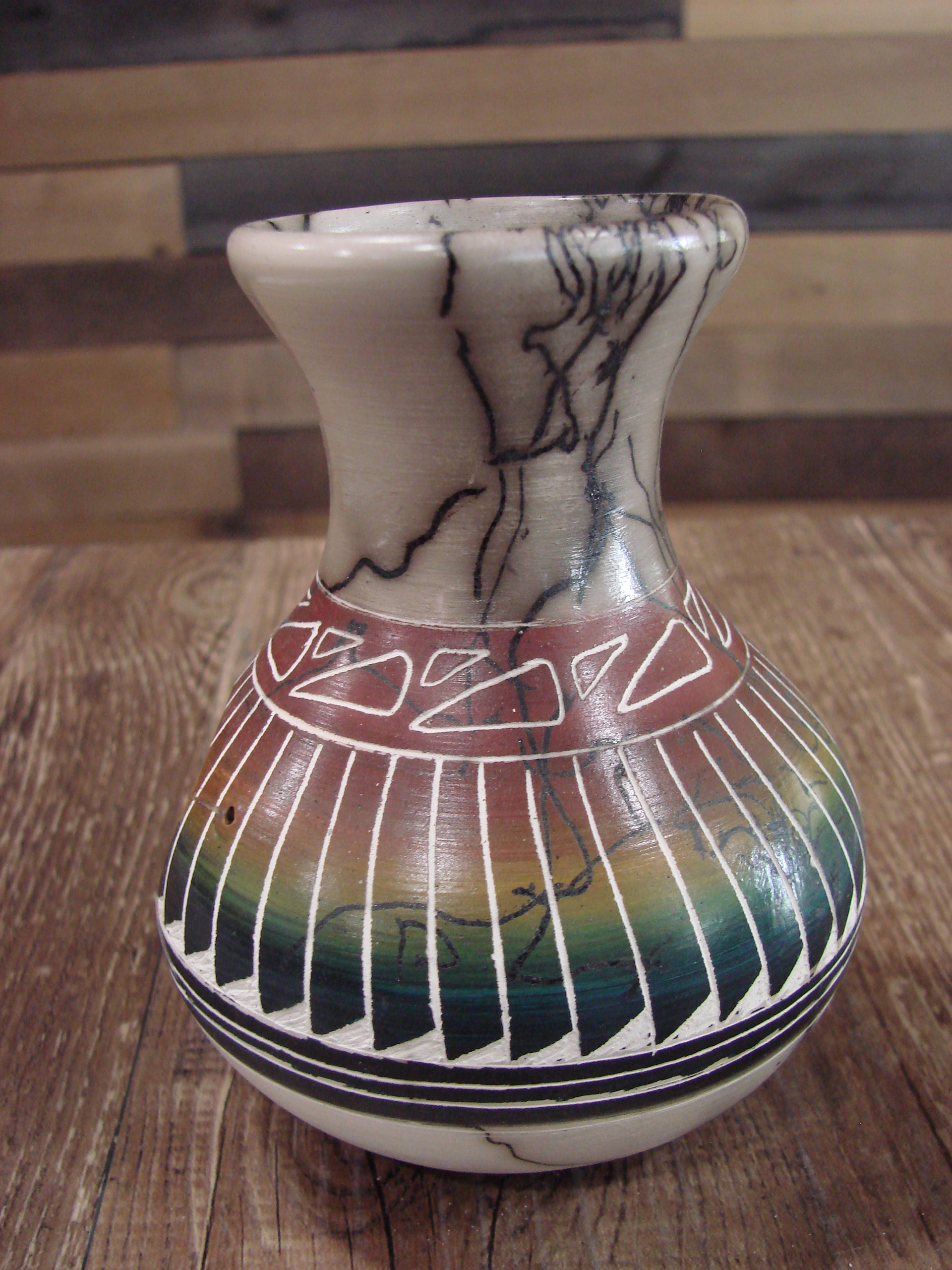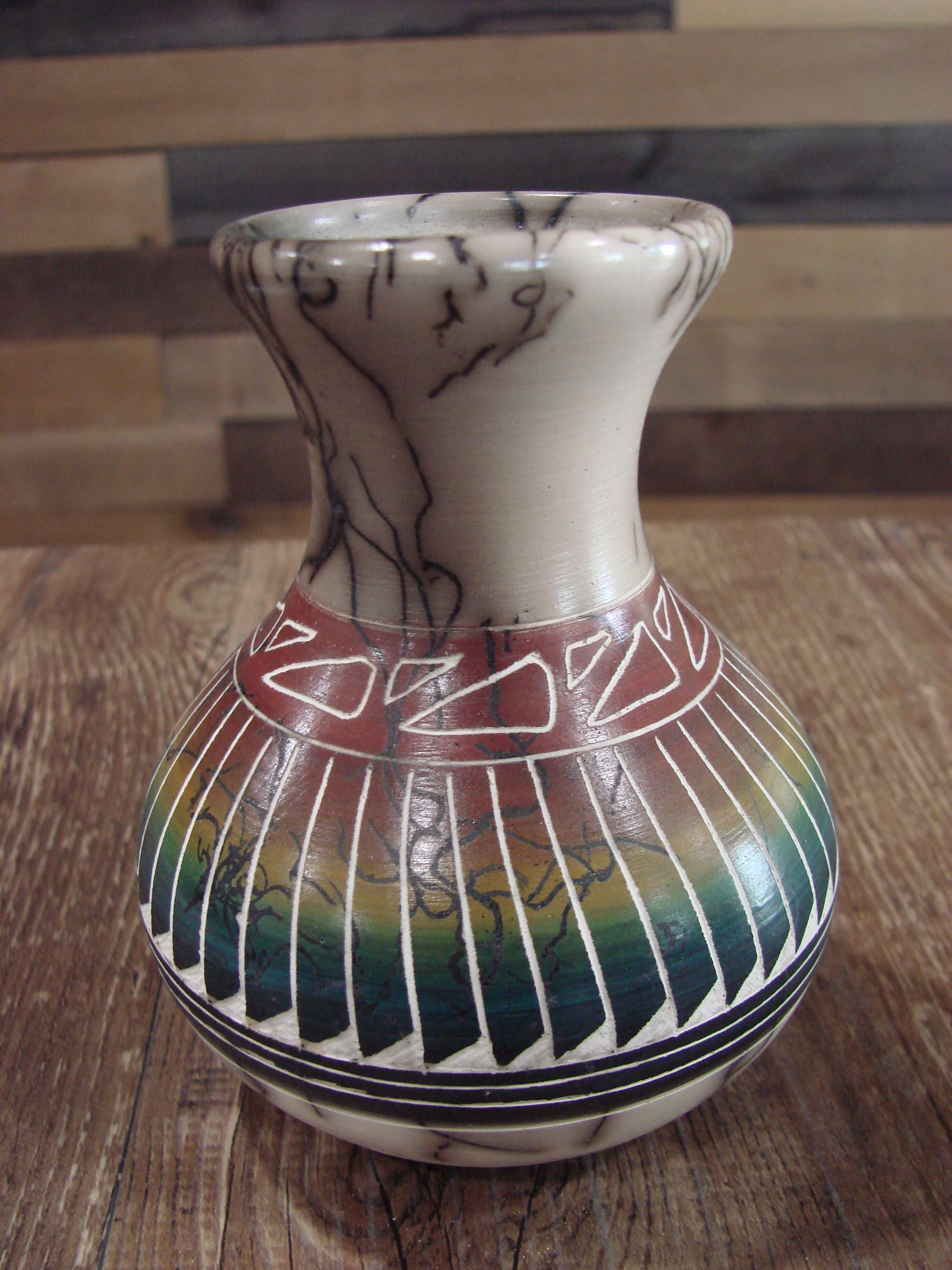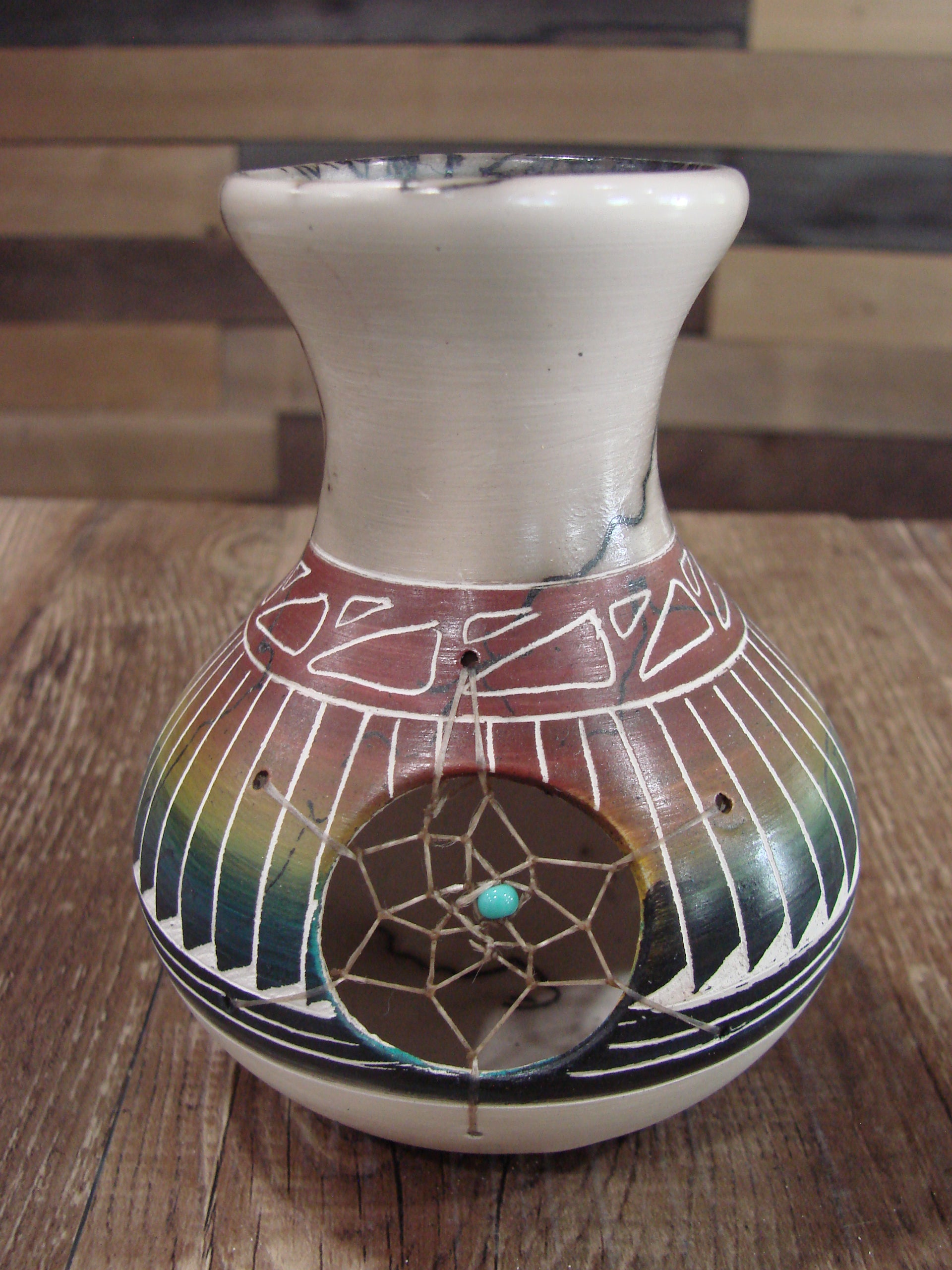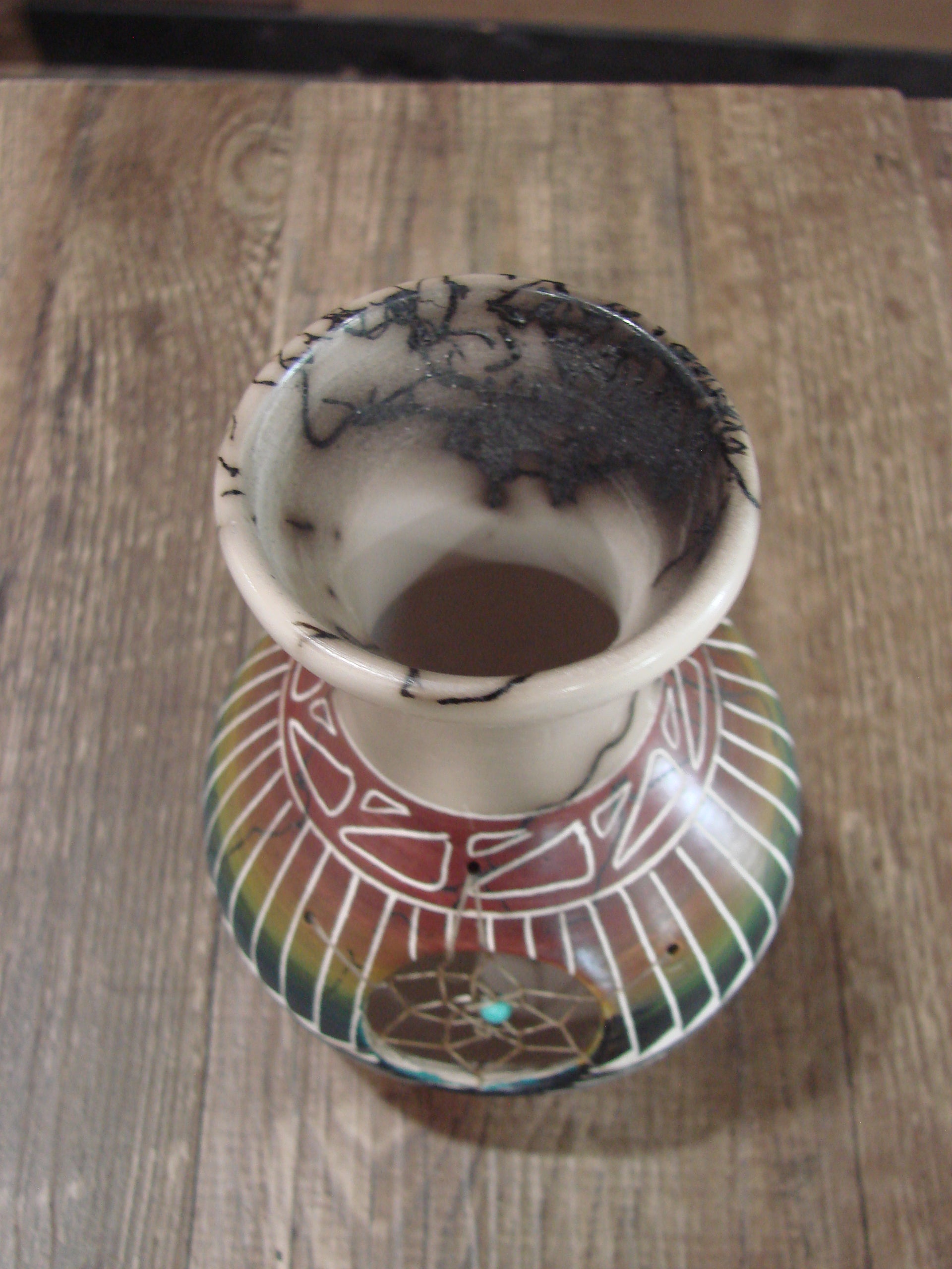 Native American Navajo Hand Etched Dream Catcher Horse Hair Pottery - Billy