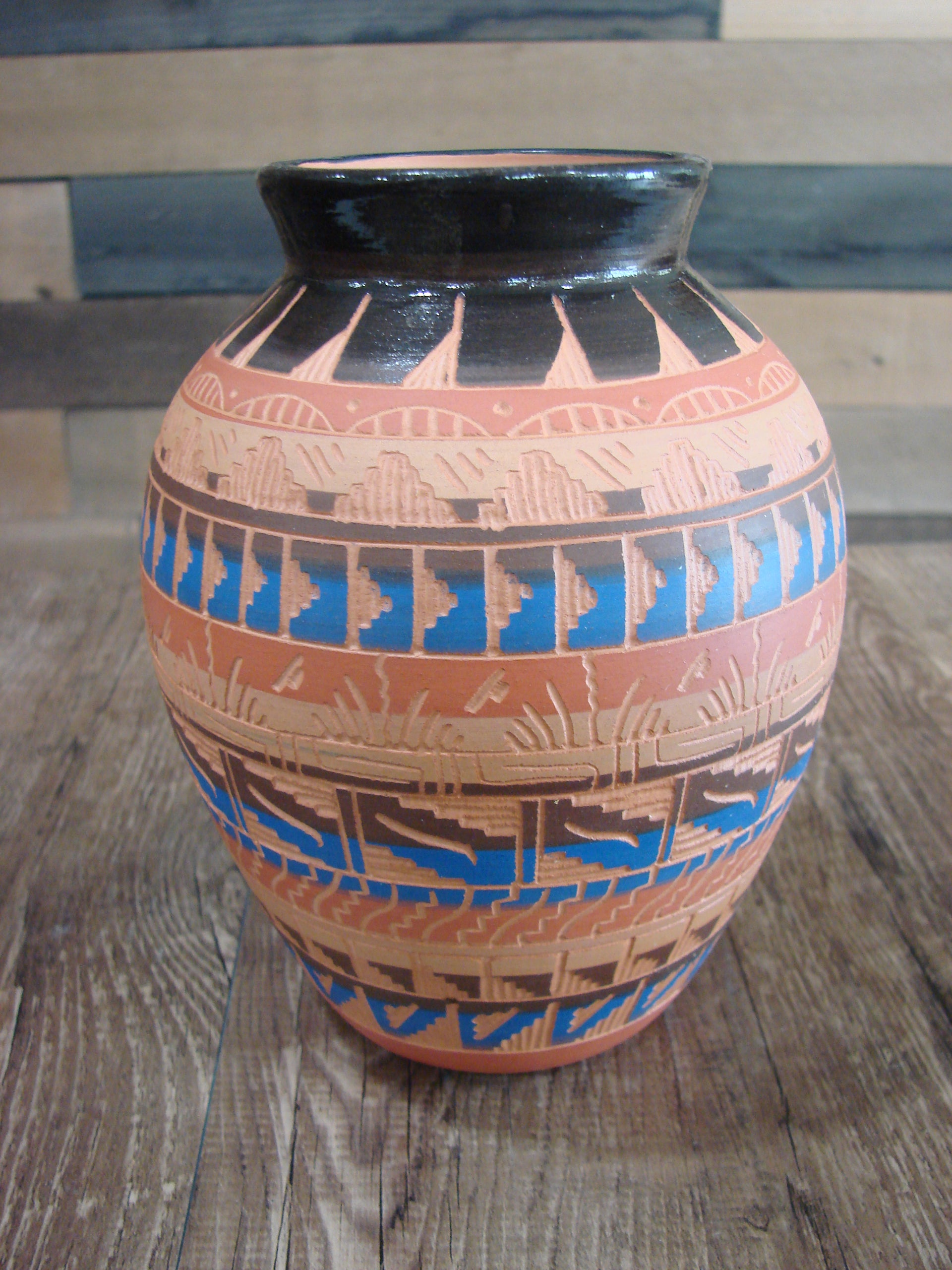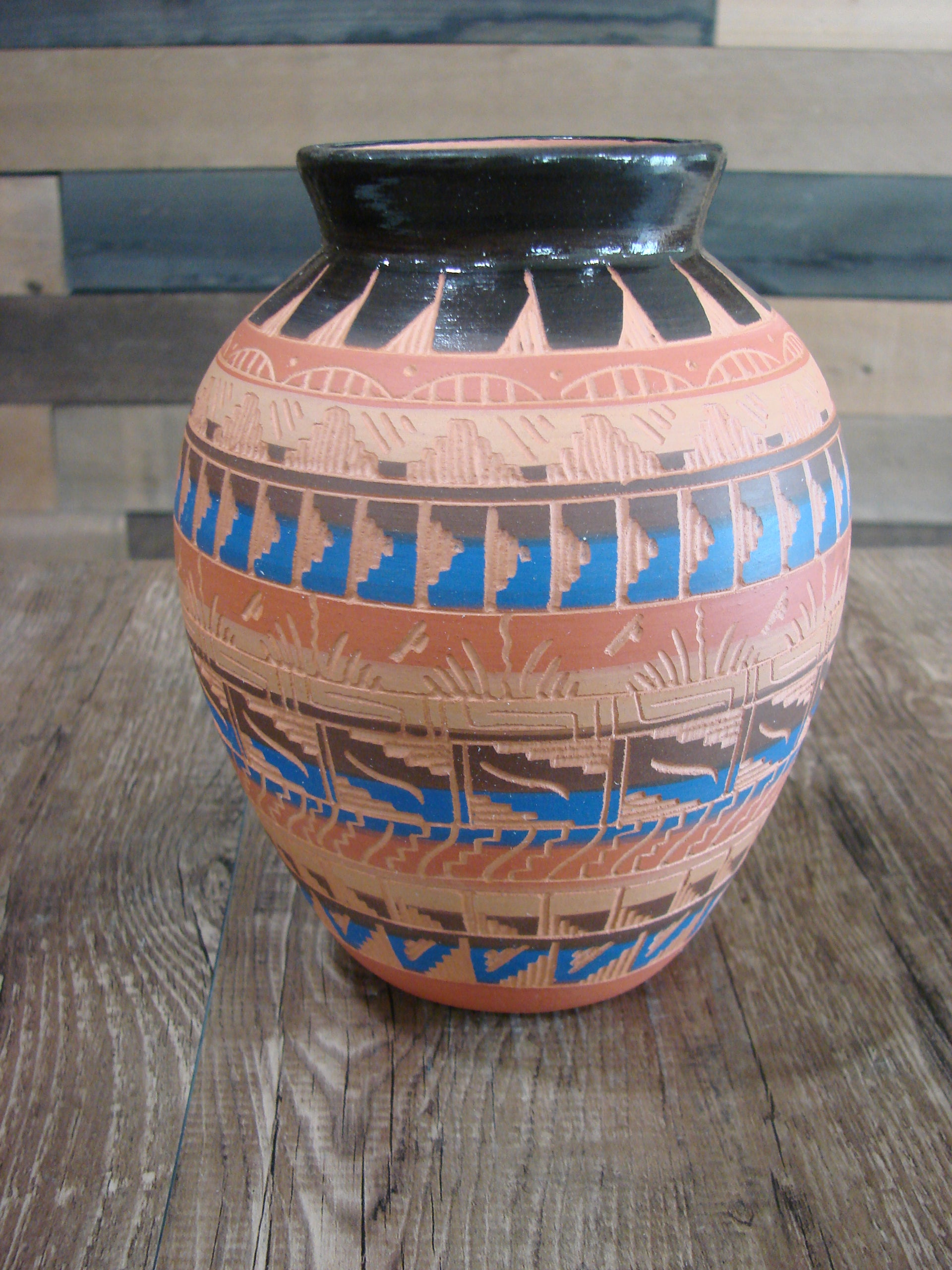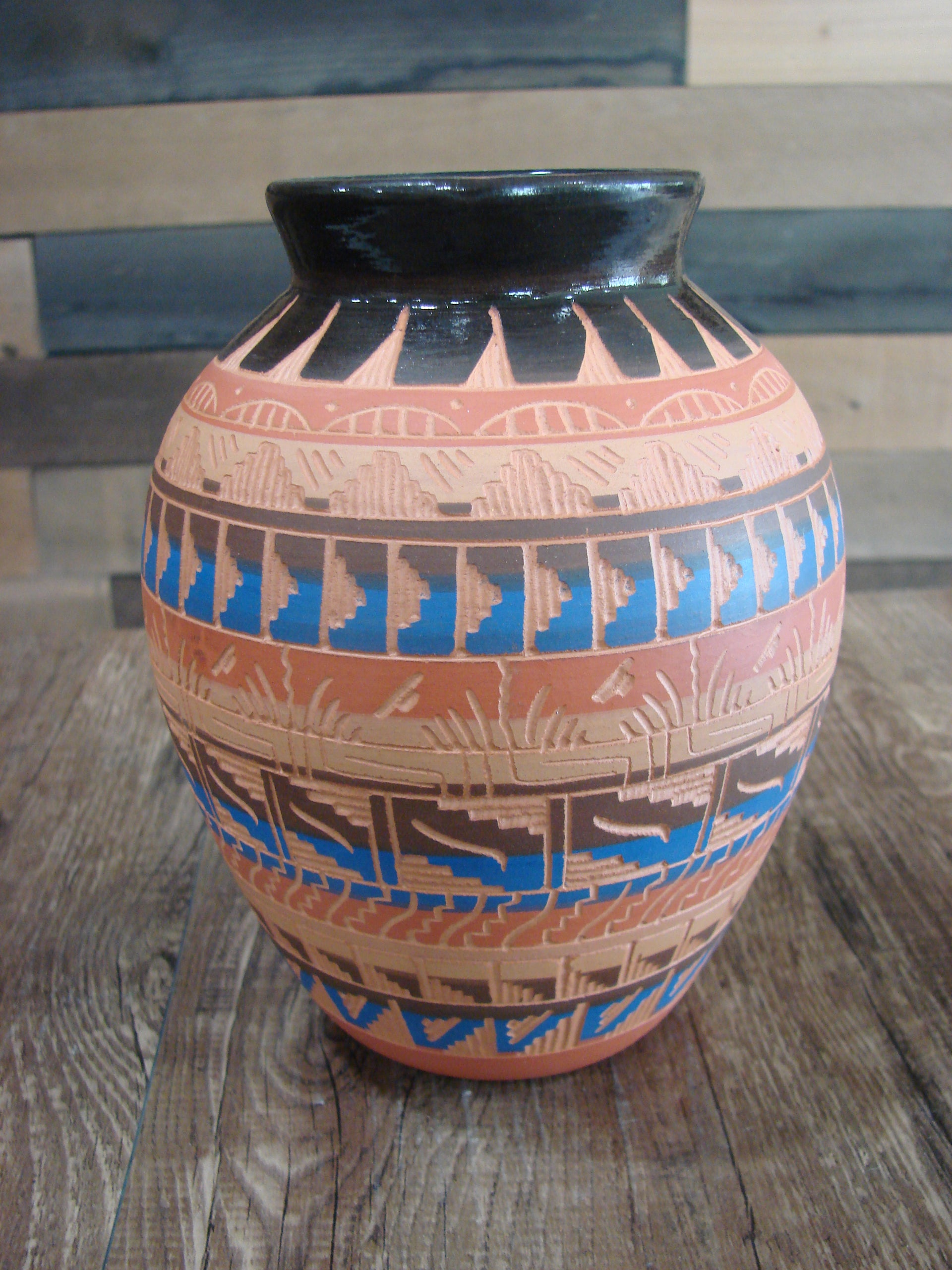 Native American Navajo Hand Etched & Painted Ginger Jar Pottery - Gilmore