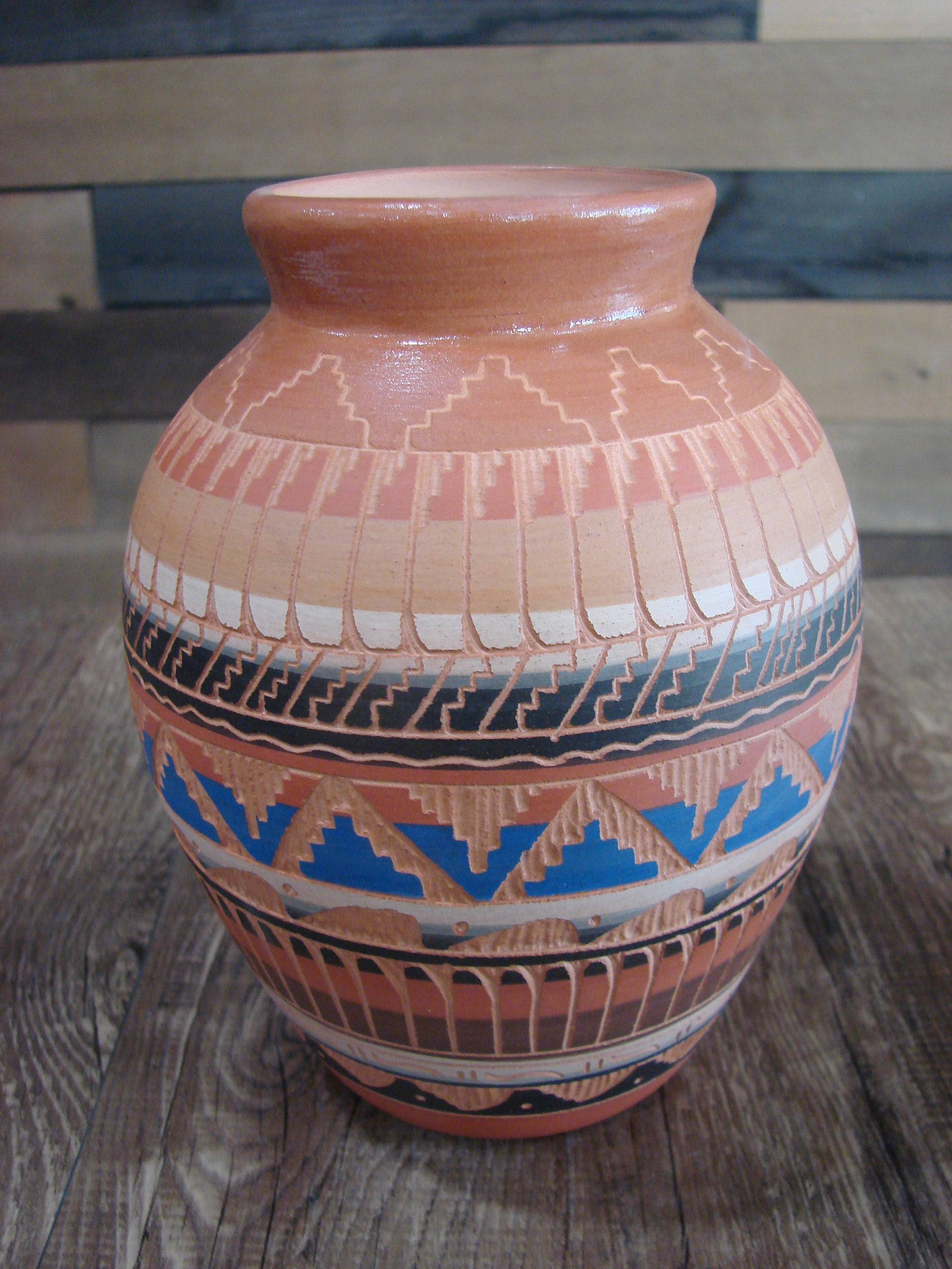 - Native American Navajo Hand Etched & Painted Ginger Jar Pottery - Gilmore