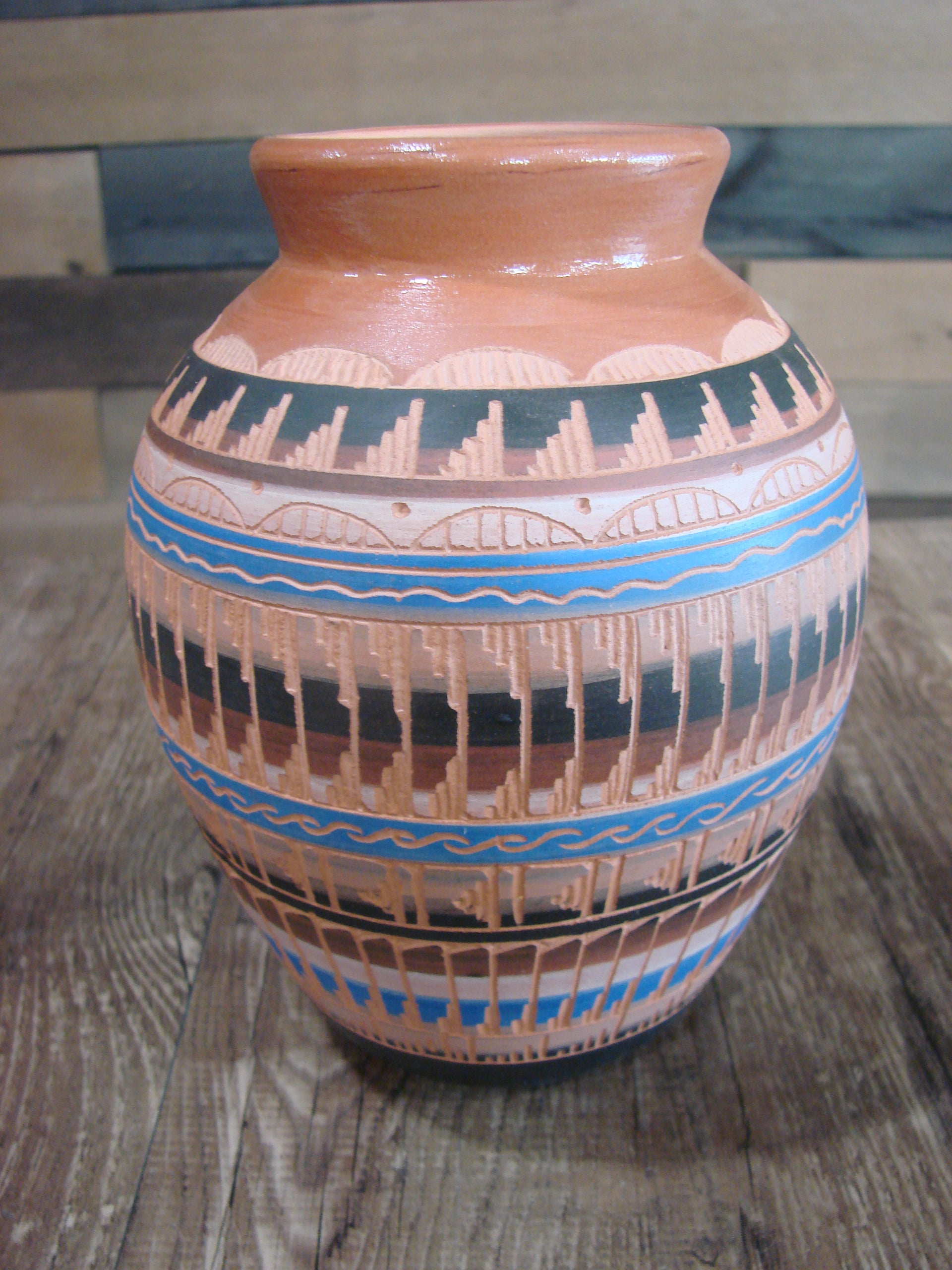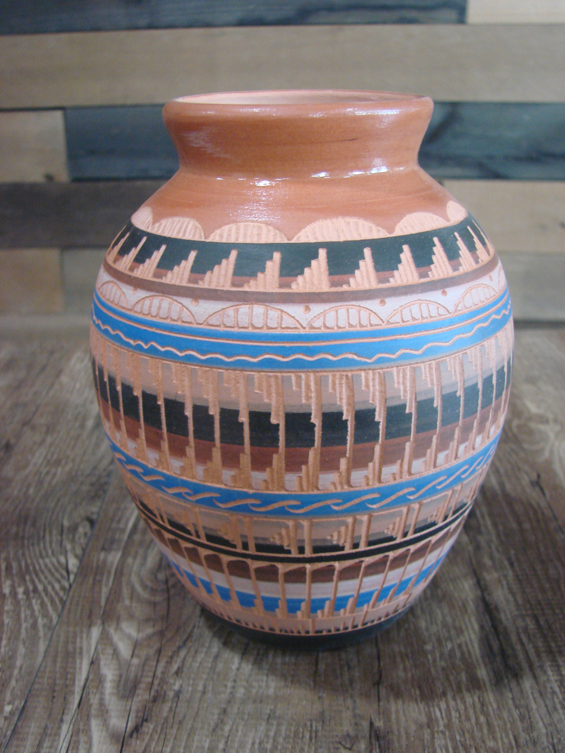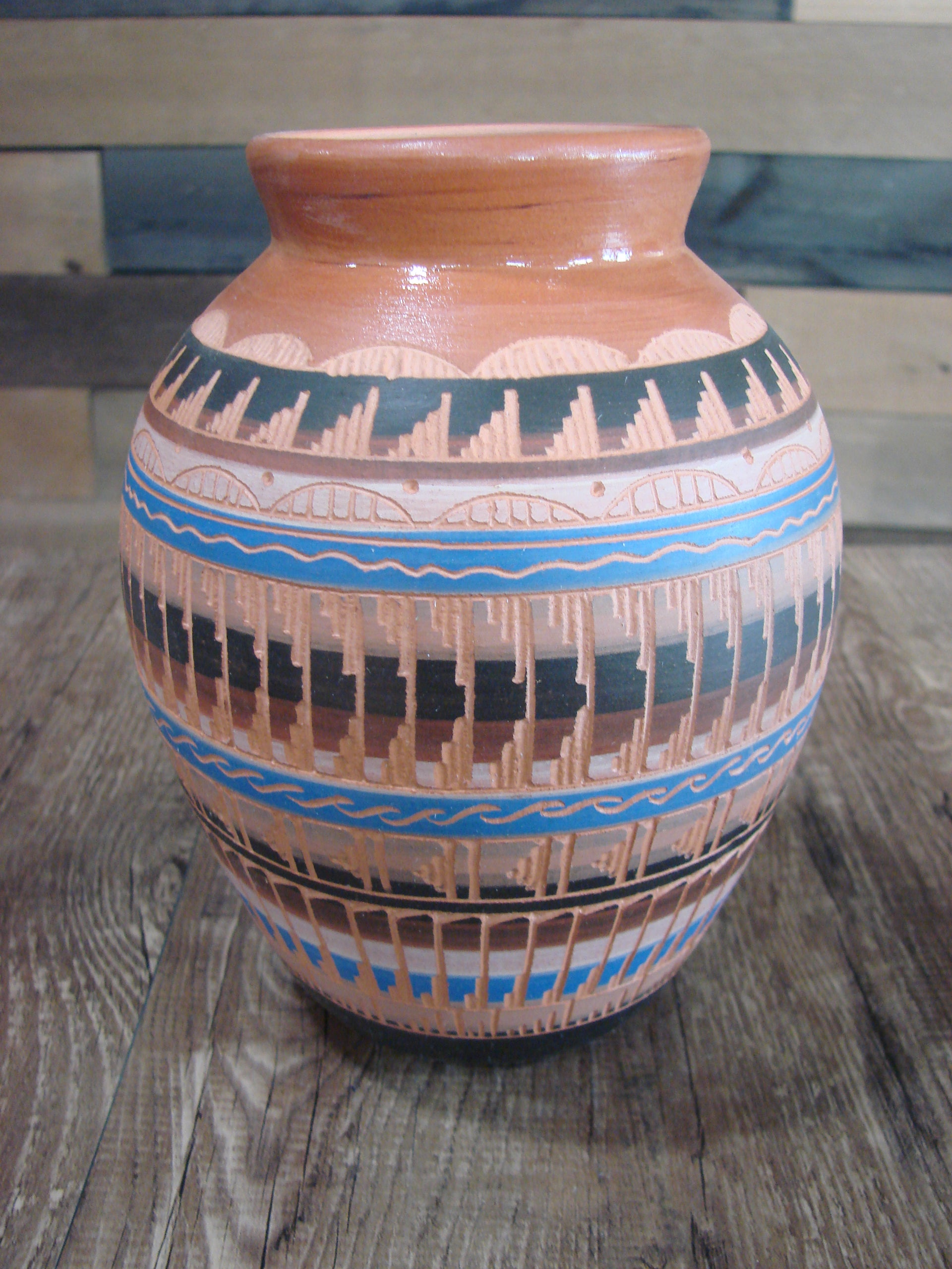 Native American Navajo Hand Etched & Painted Ginger Jar Pottery - Gilmore