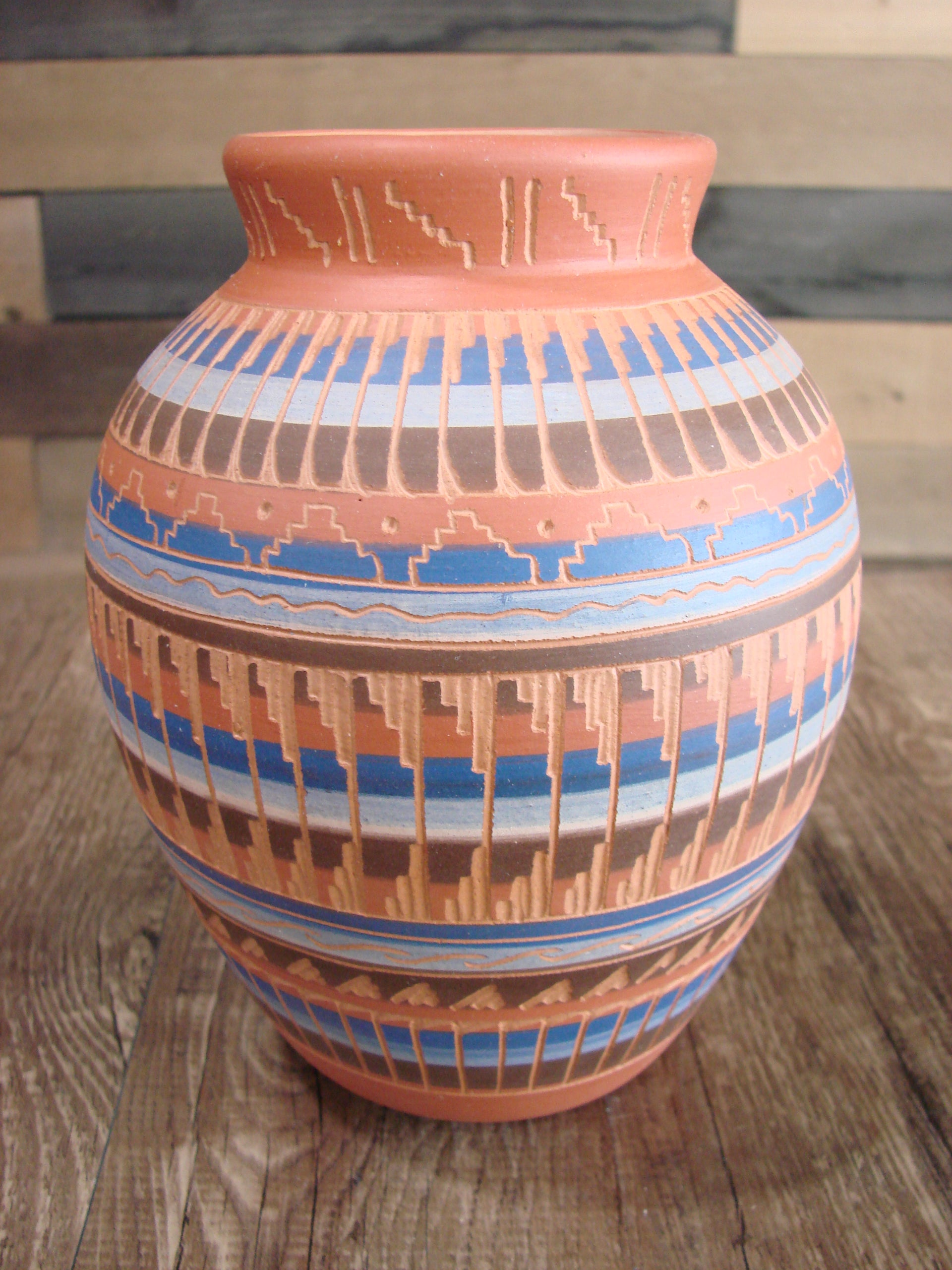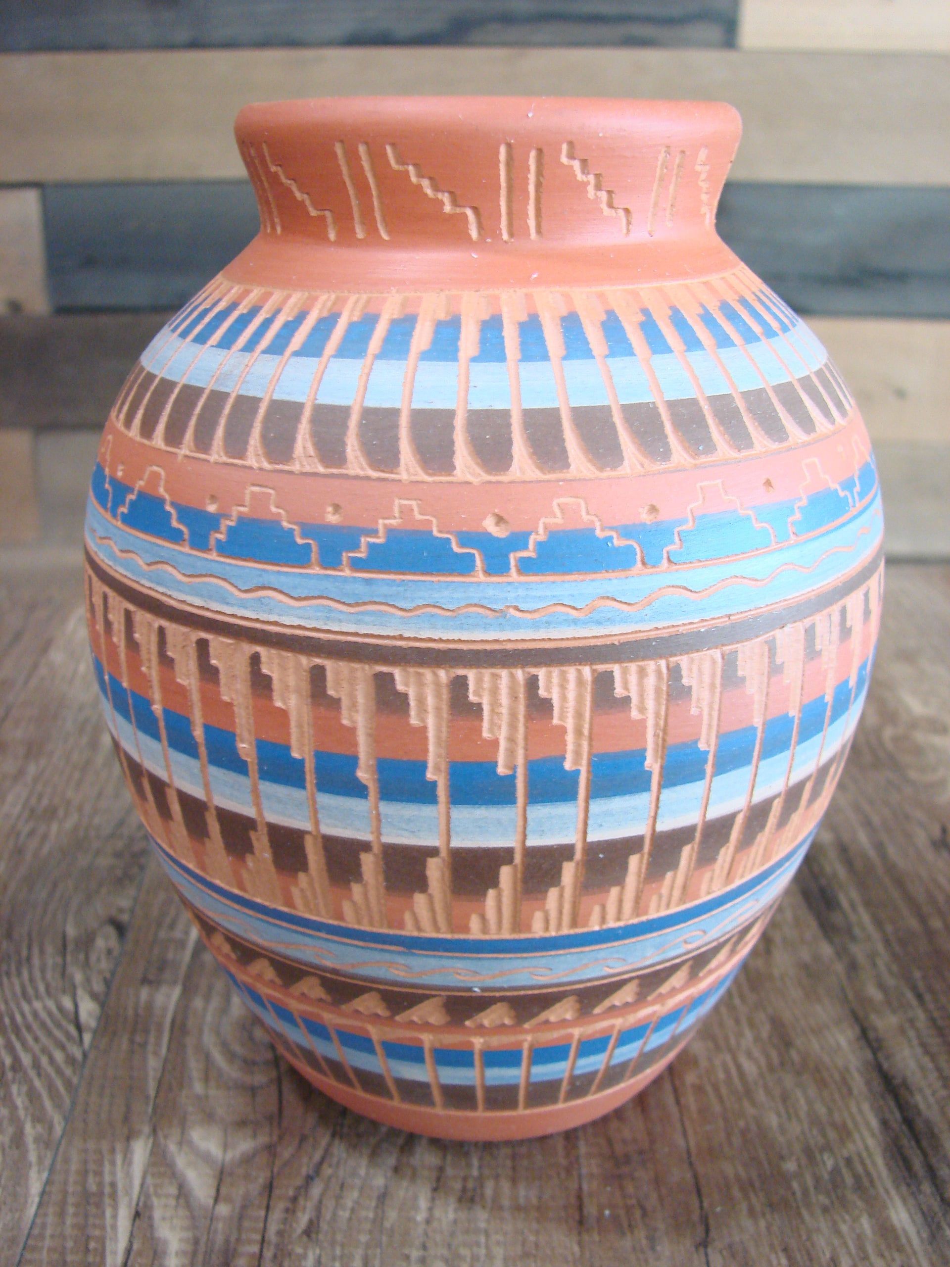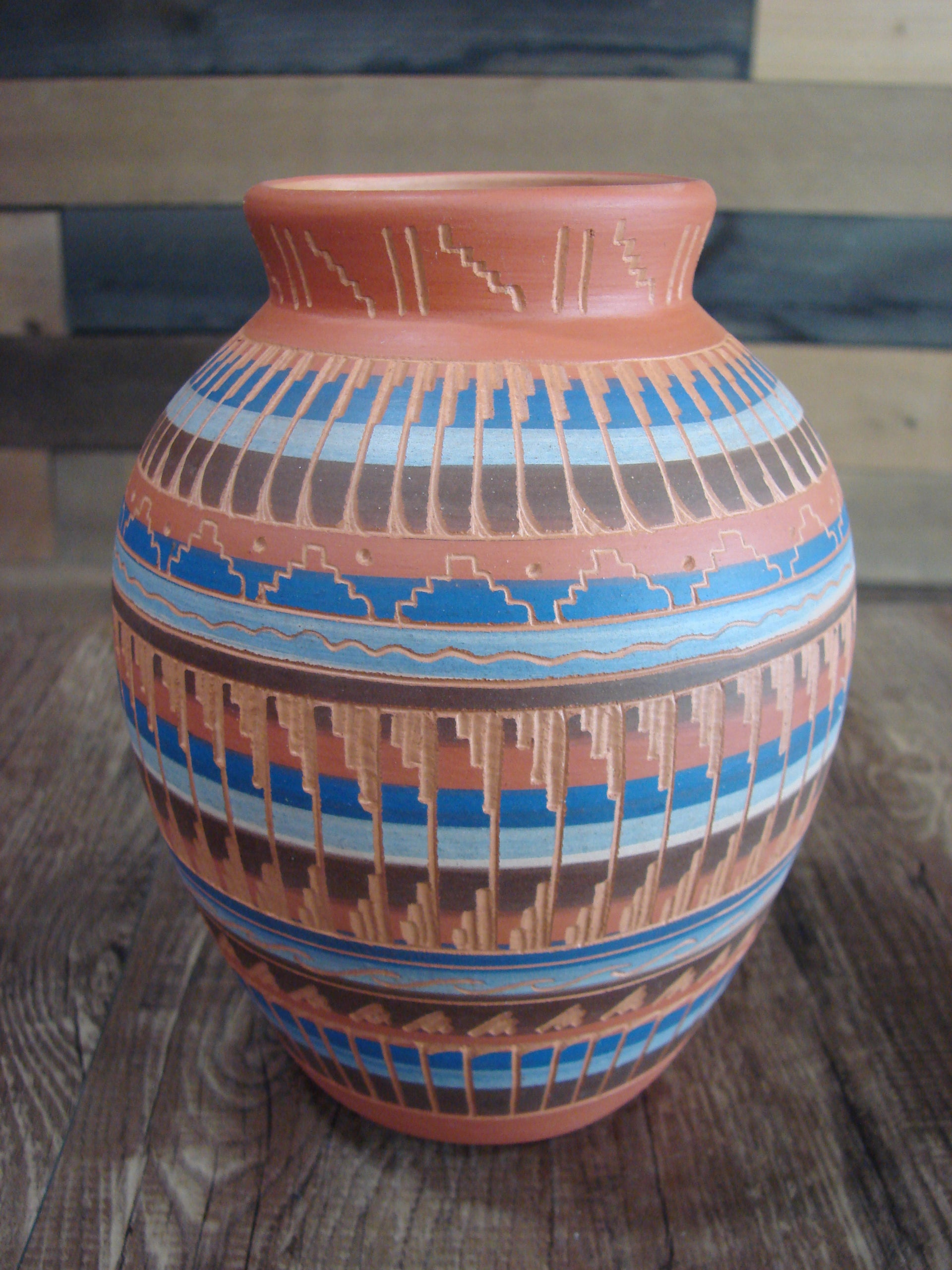 - Native American Navajo Hand Etched & Painted Ginger Jar Pottery - Gilmore