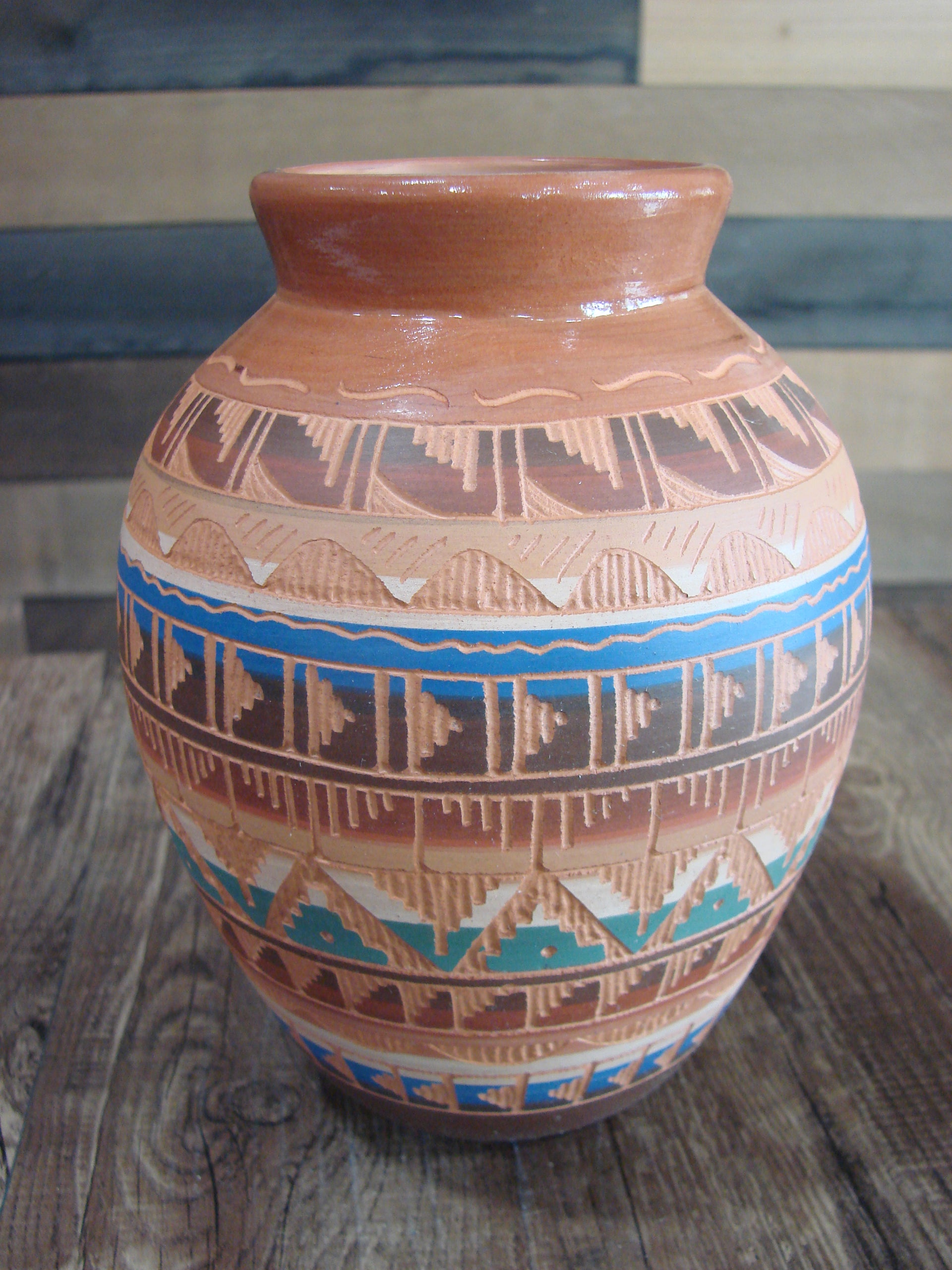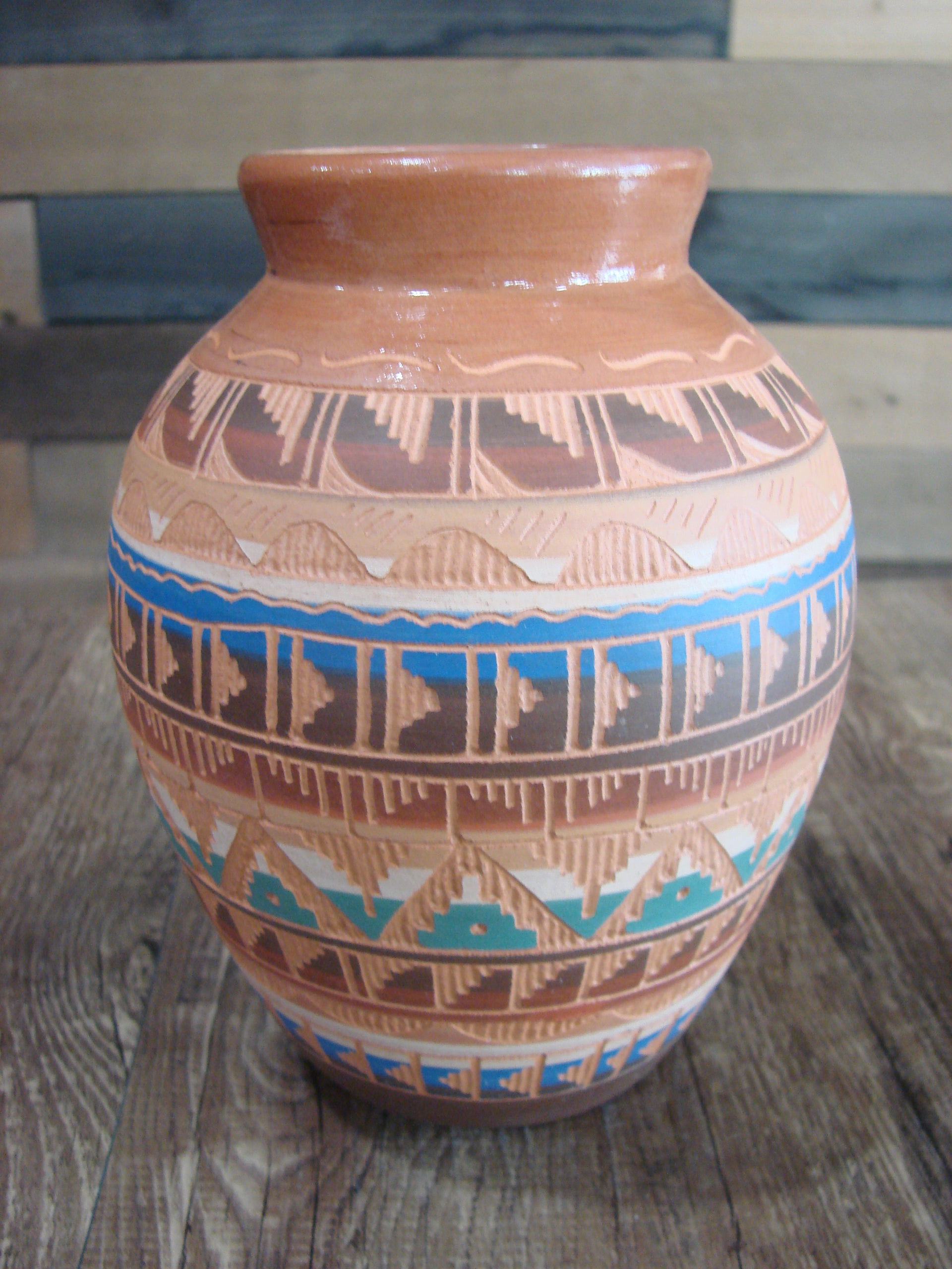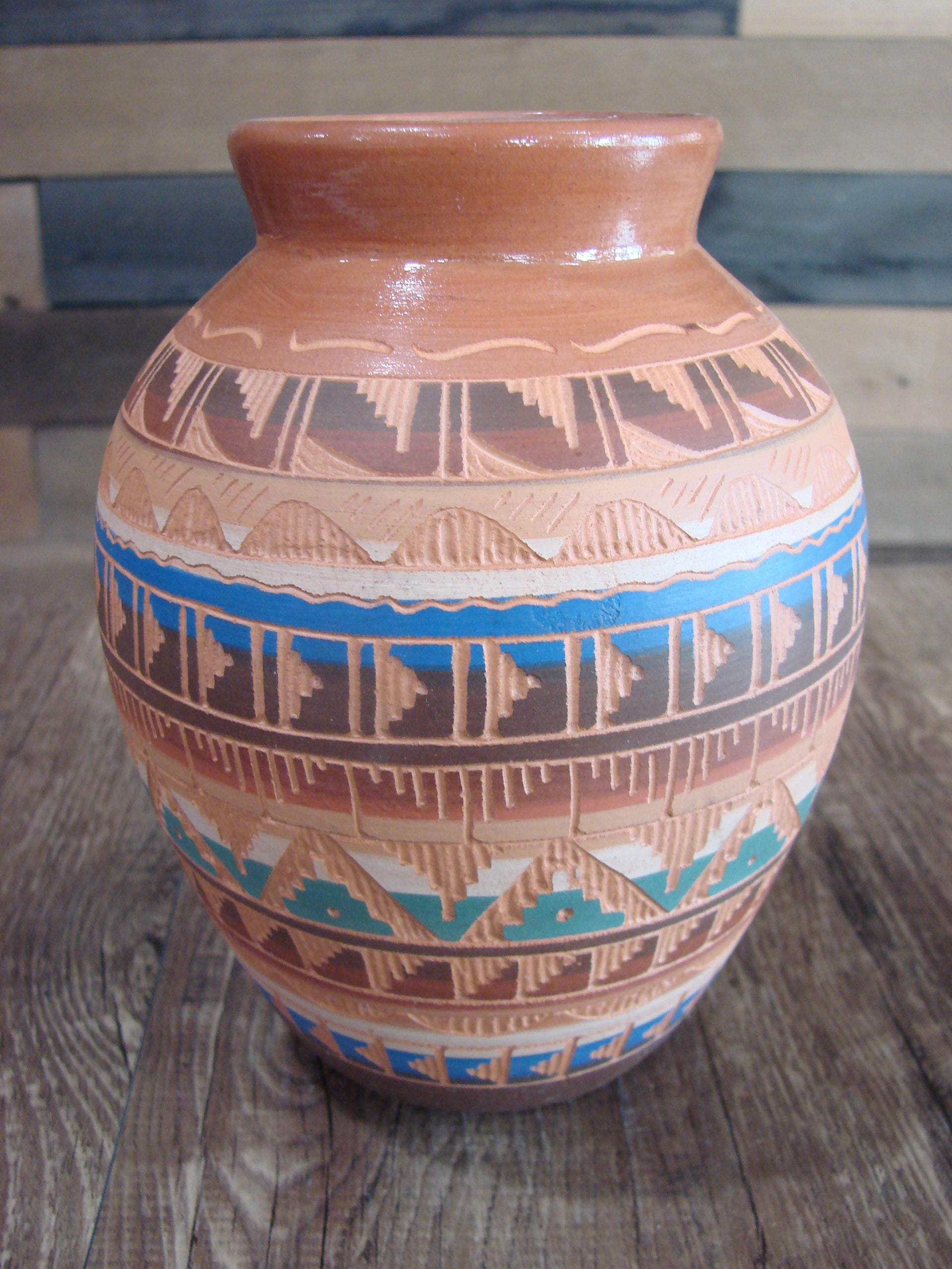 Native American Navajo Hand Etched & Painted Ginger Jar Pottery - Gilmore