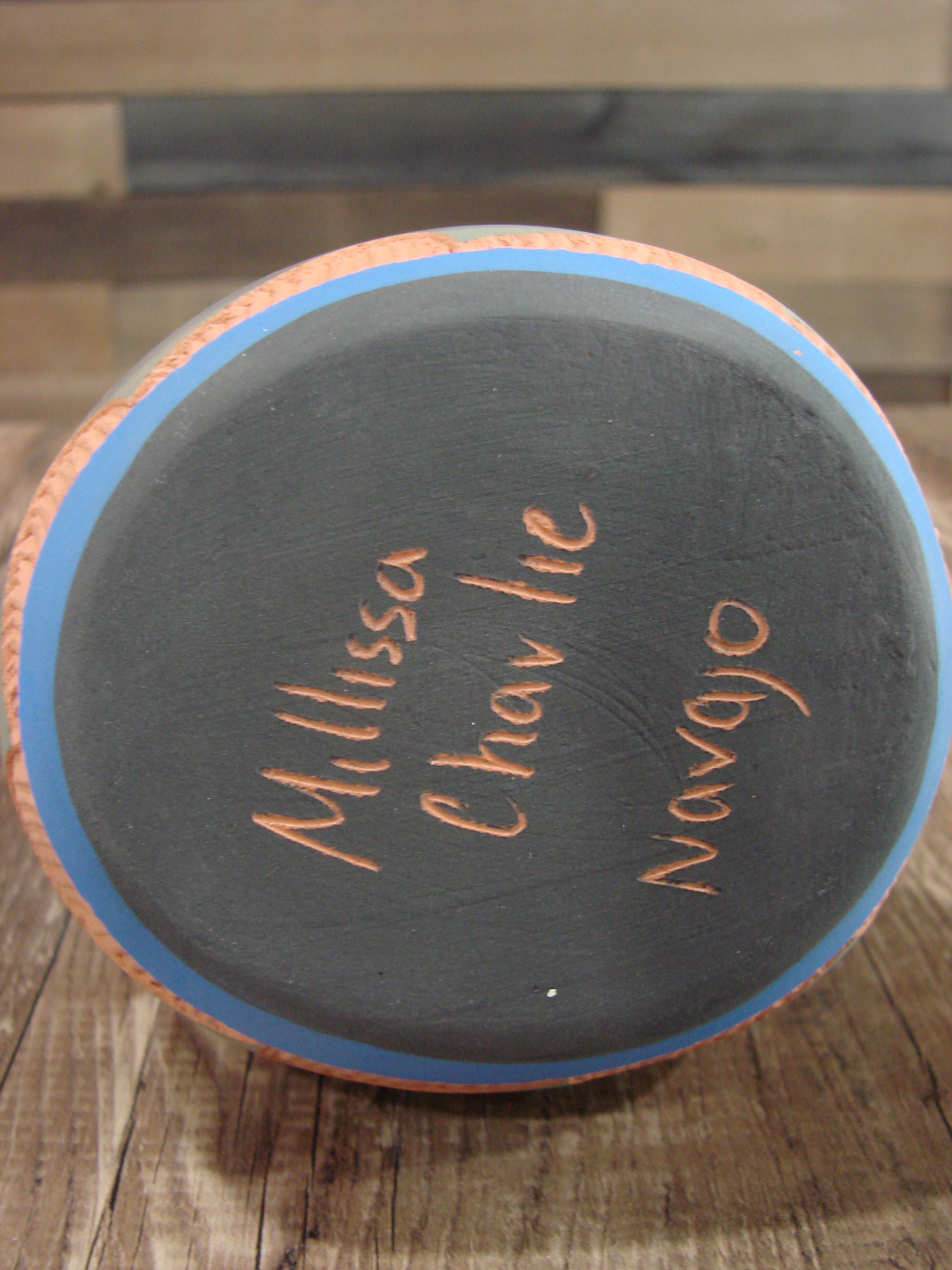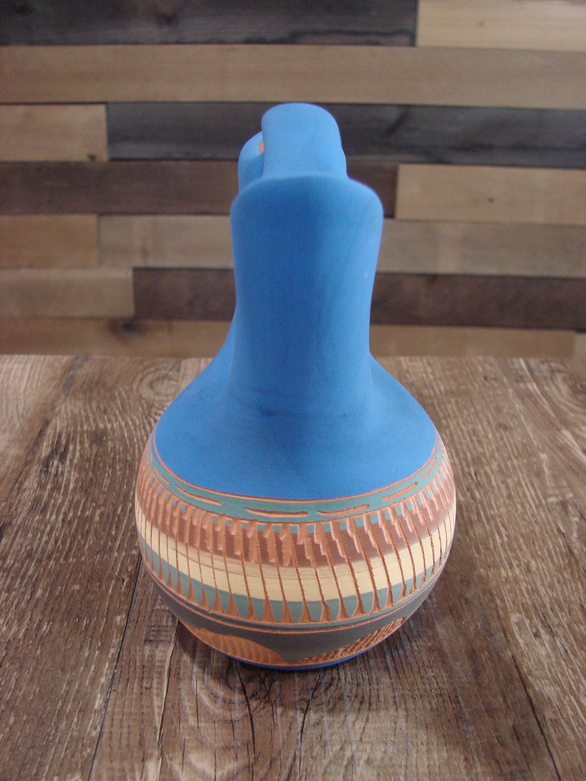 Genuine Native American Navajo Indian Hand Etched and Hand Painted Wedding Vase Pottery from Western New Mexico. This beautiful piece of pottery features stunning Hand Painted and traditional Hand Etched Navajo patterns throughout. Hand etched and painted by Millissa Charlie. Signed "Millissa Charlie Navajo" on the bottom. Free shipping included!