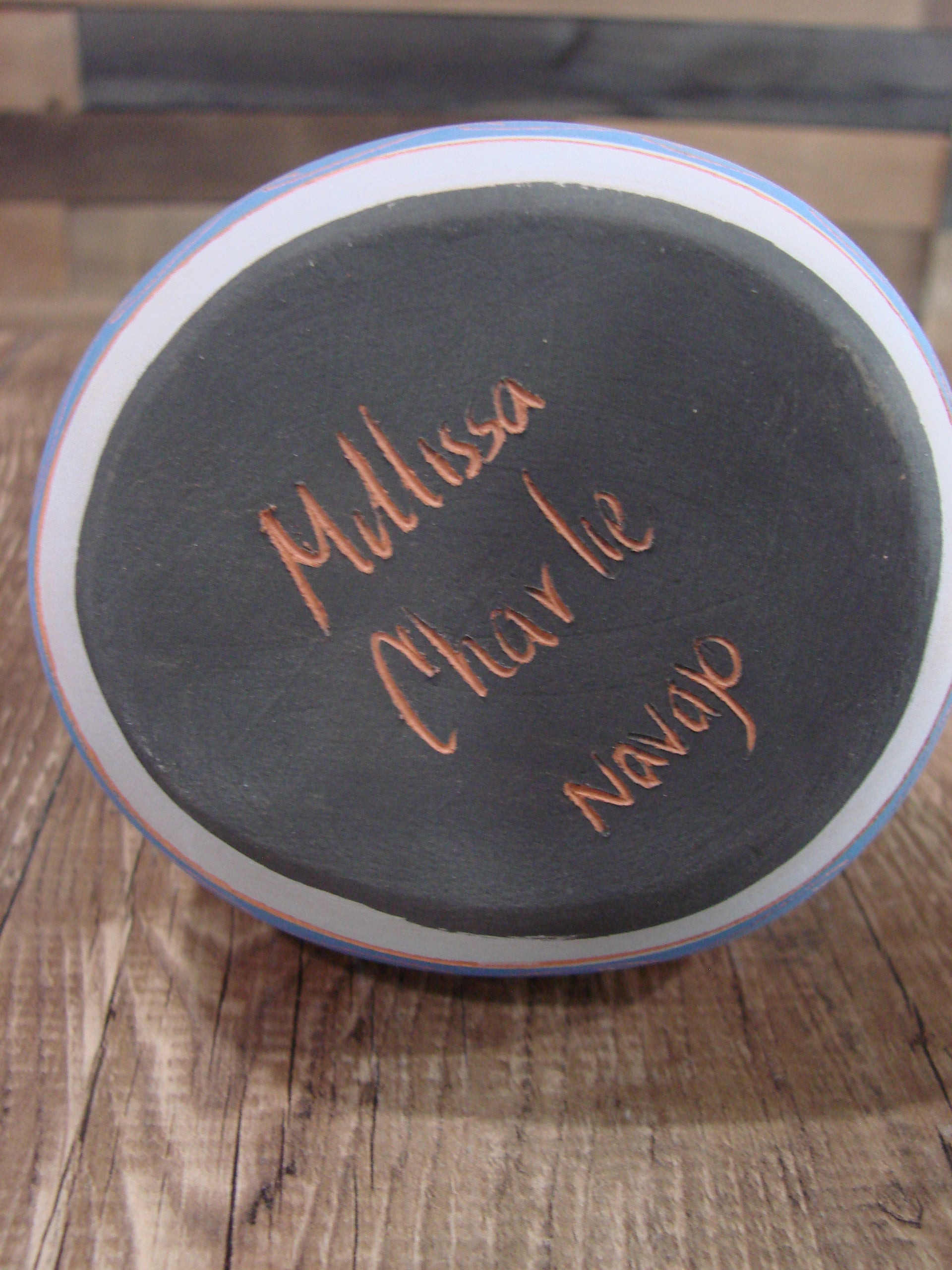 Genuine Native American Navajo Indian Hand Etched and Hand Painted Wedding Vase Pottery from Western New Mexico. This beautiful piece of pottery features stunning Hand Painted and traditional Hand Etched Navajo patterns throughout. Hand etched and painted by Millissa Charlie. Signed "Millissa Charlie Navajo" on the bottom. Free shipping included!