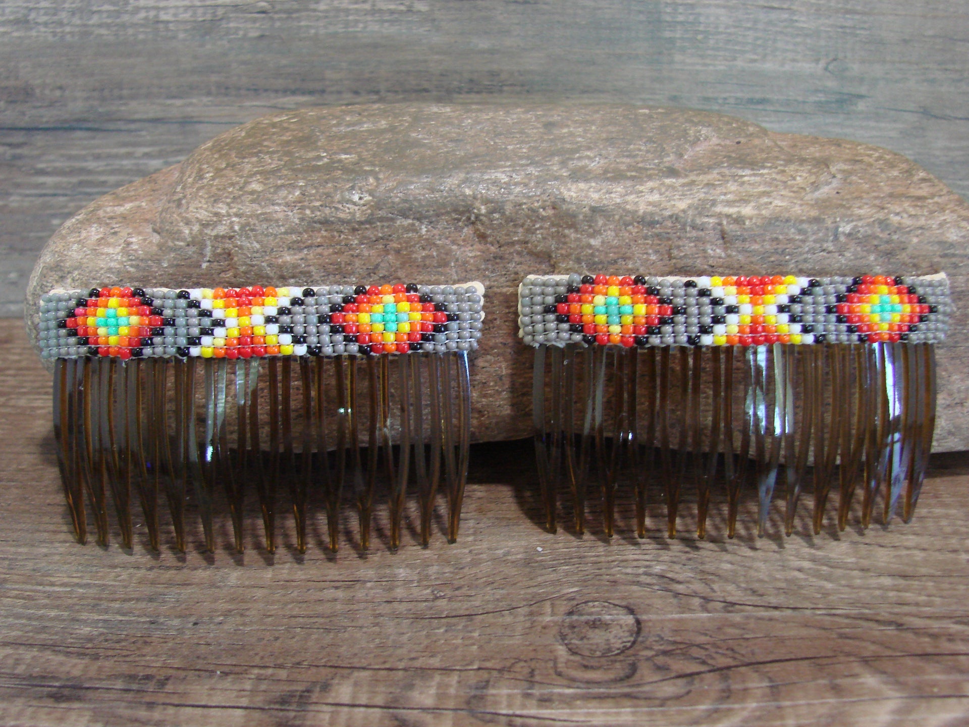 - Native American Navajo Indian Hand Beaded Hair Comb Set by Cleveland