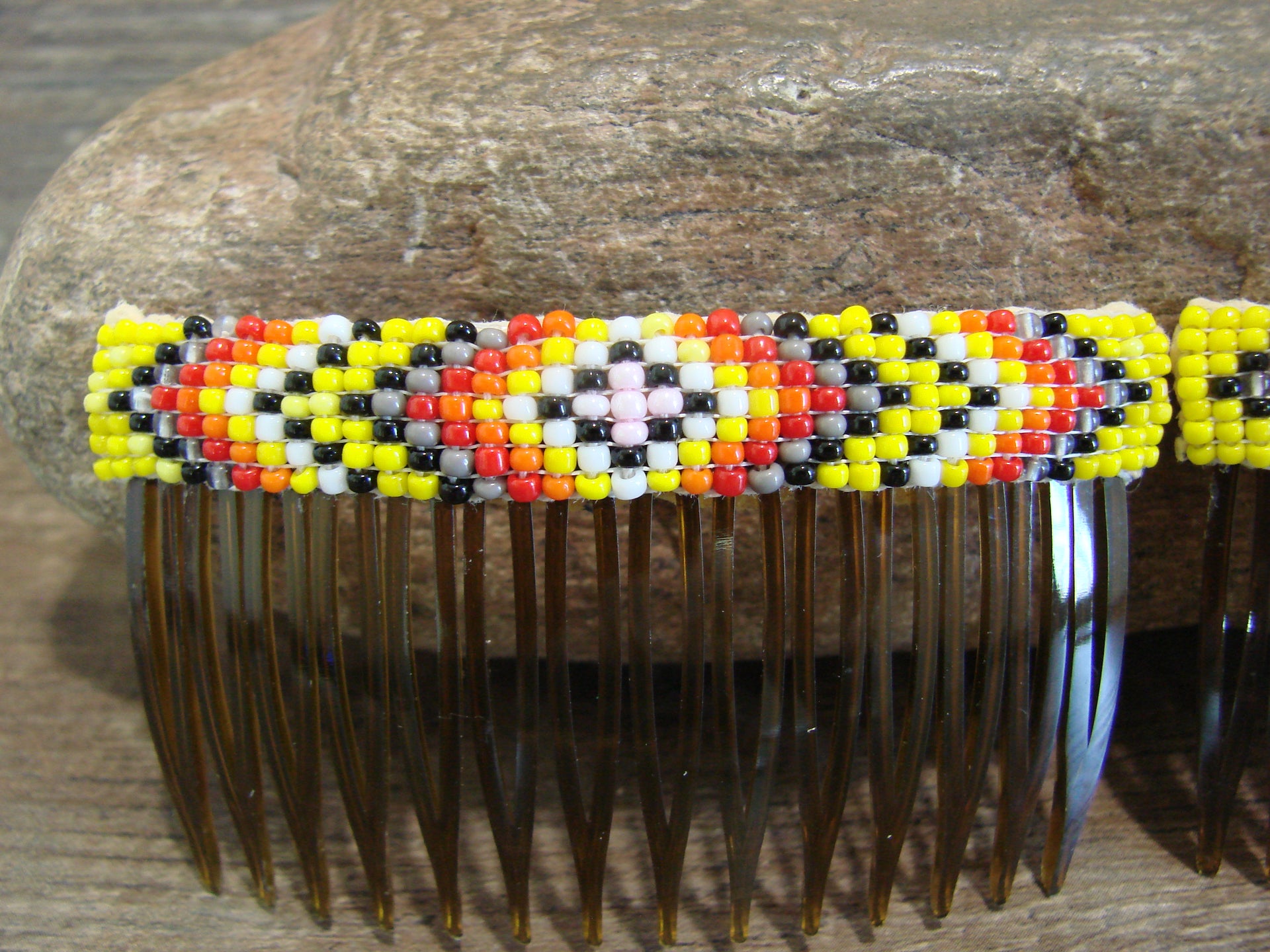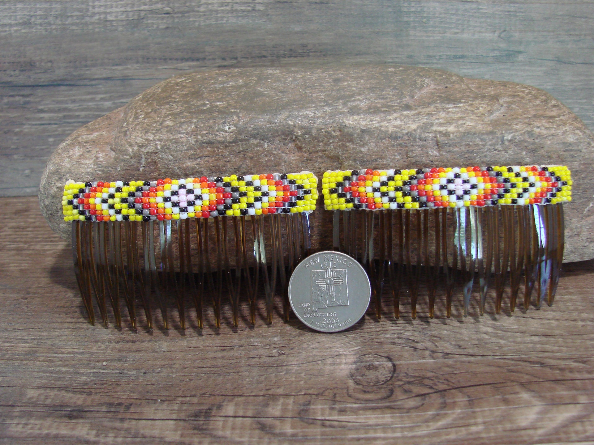 Native American Navajo Indian Hand Beaded Hair Comb Set by Cleveland