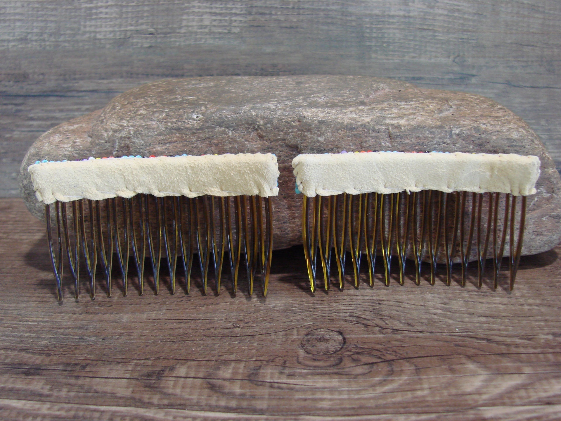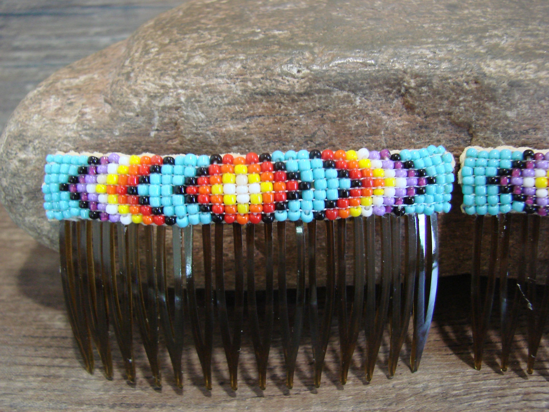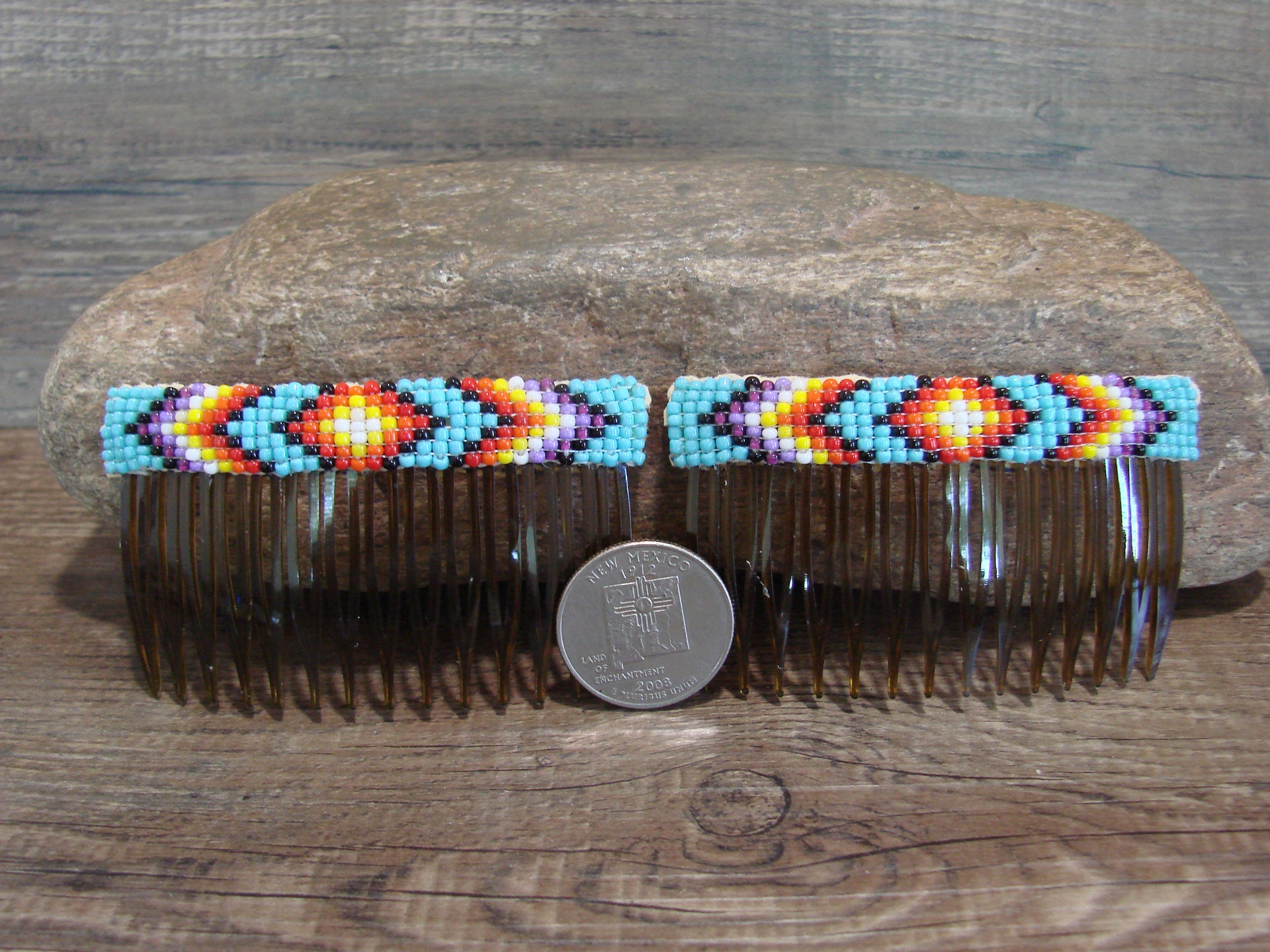 Native American Navajo Indian Hand Beaded Hair Comb Set by Cleveland