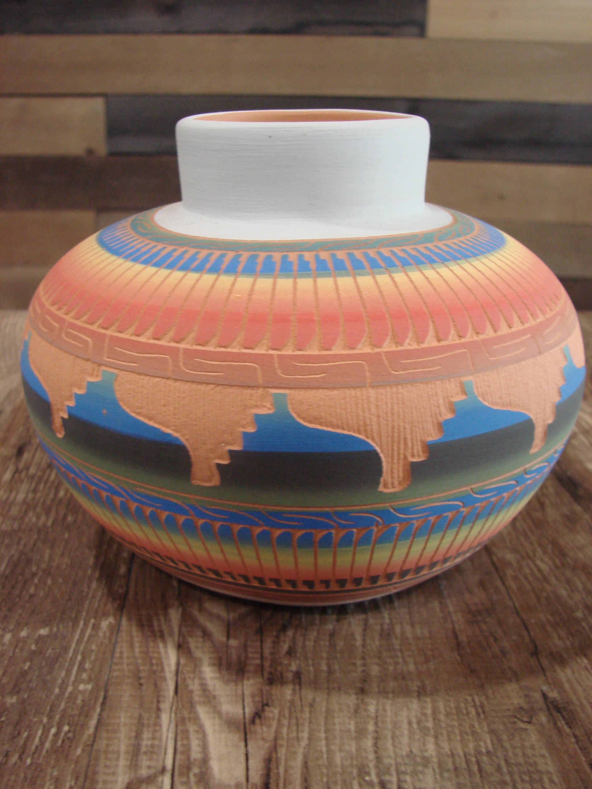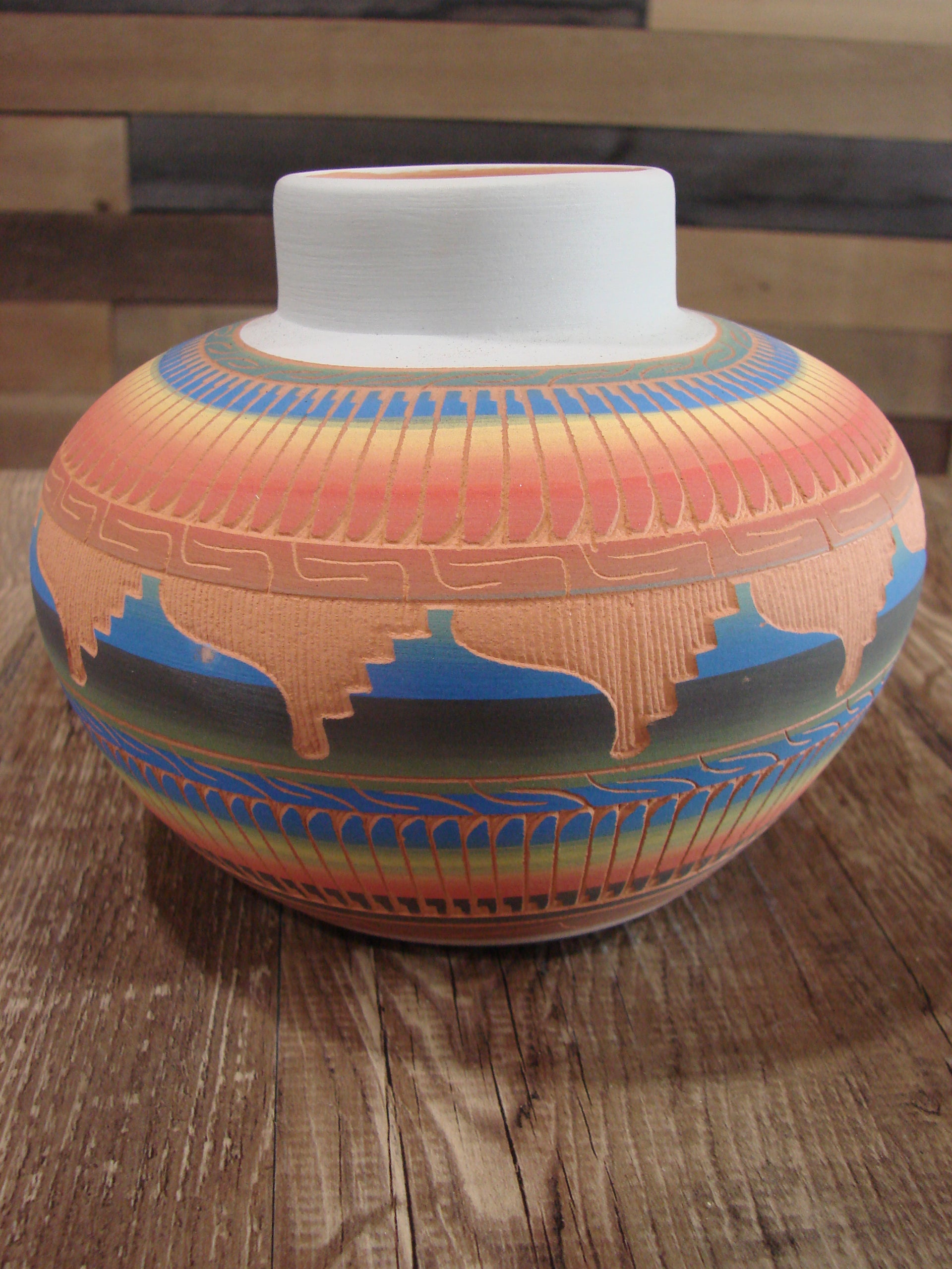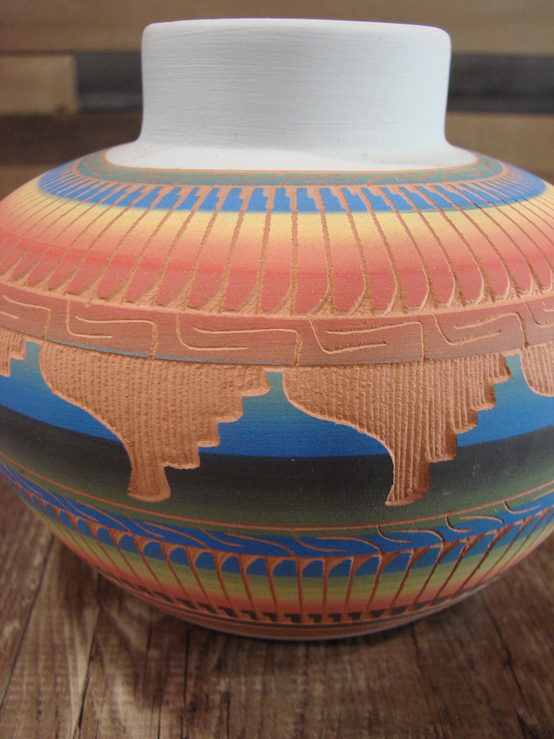 - Native American Navajo Indian Hand Etched & Hand Painted Pottery - M. Charlie