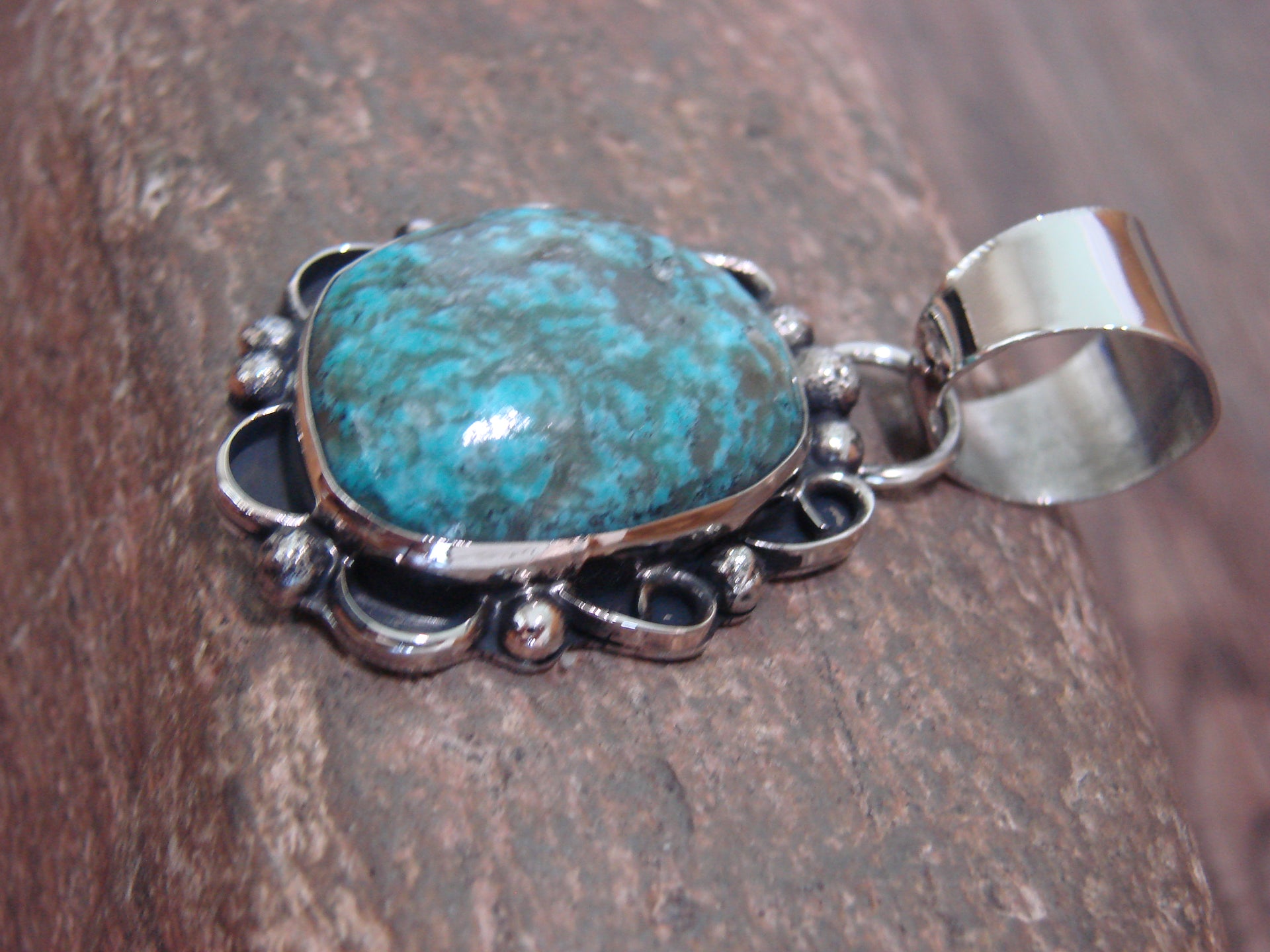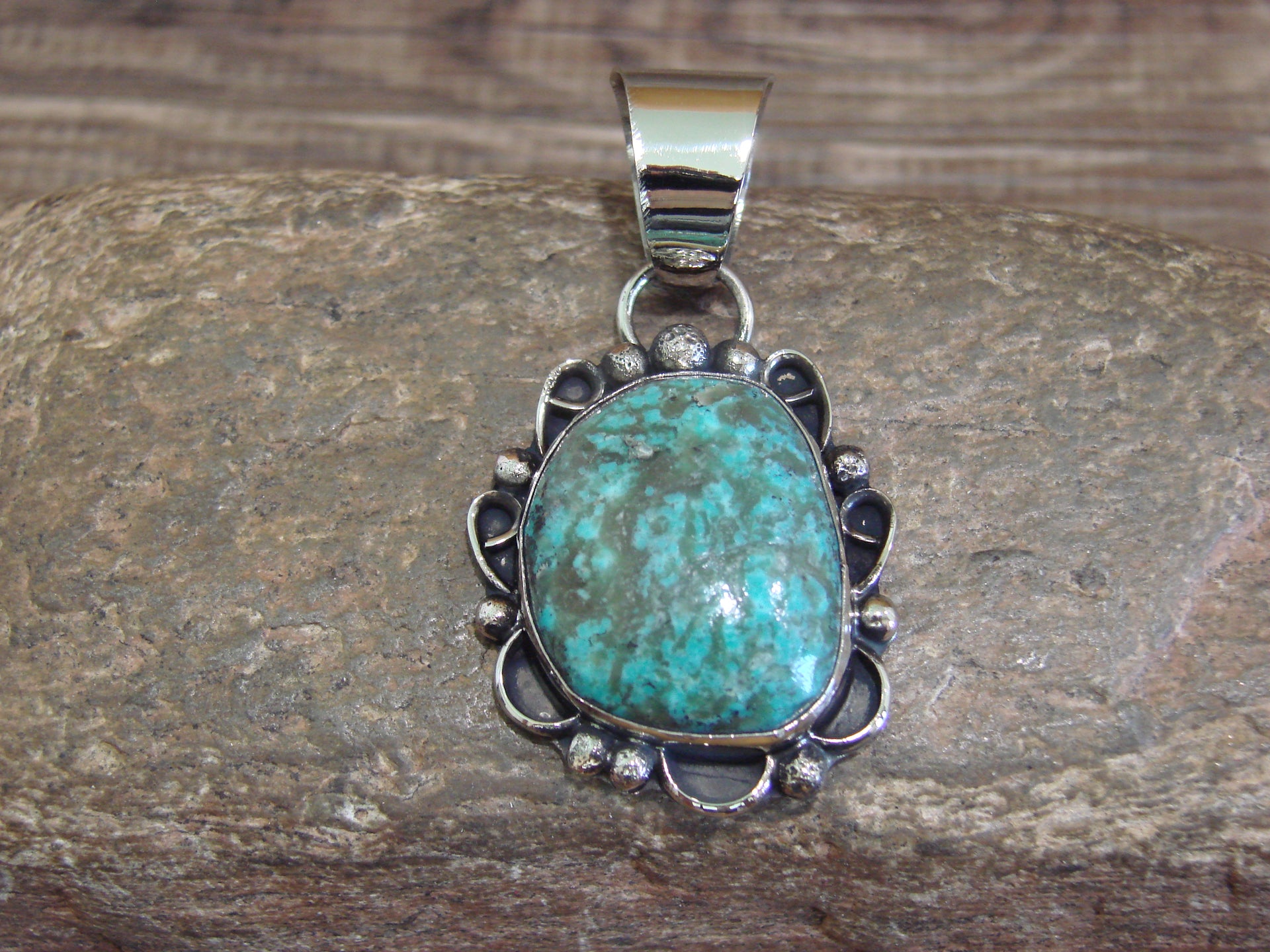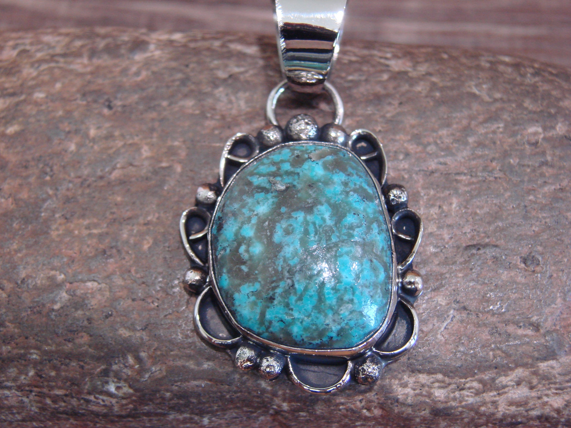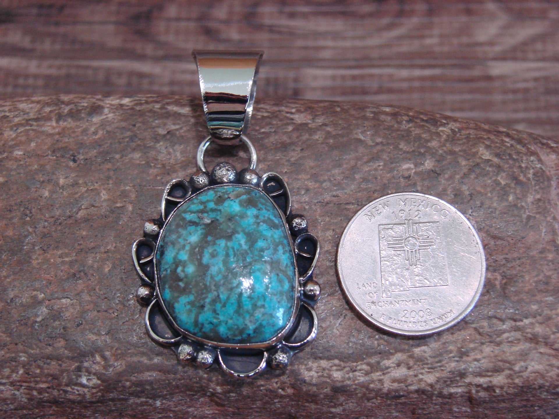 Native American Navajo Nickel Silver & Turquoise Pendant - Cleveland