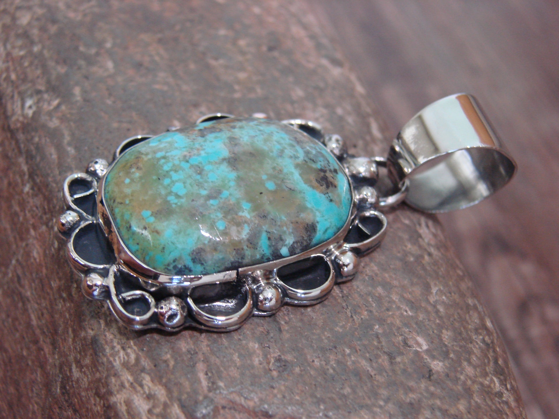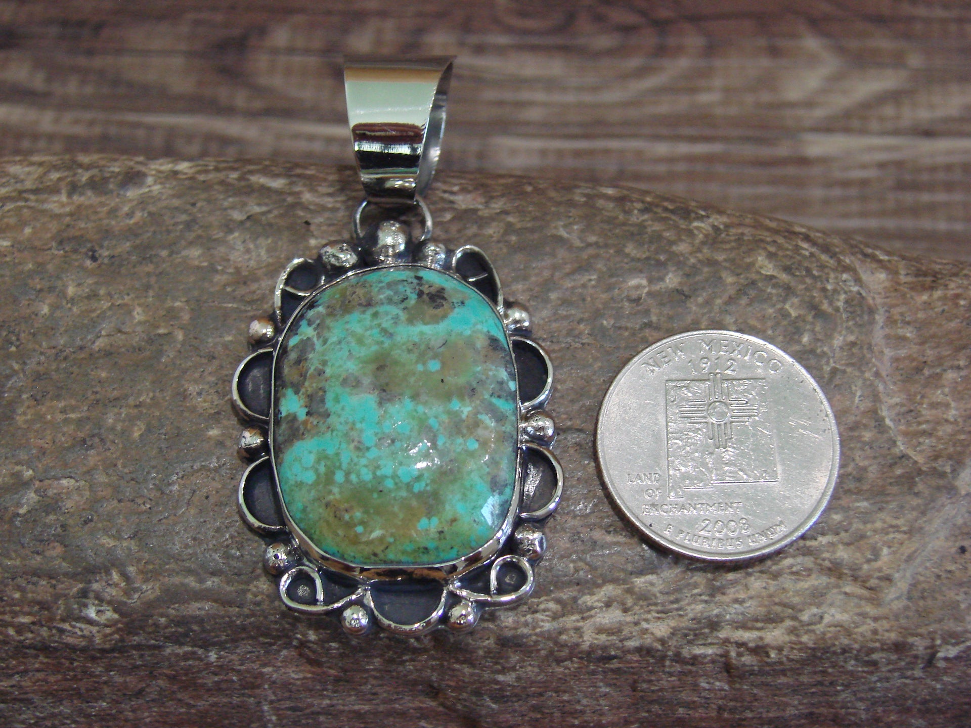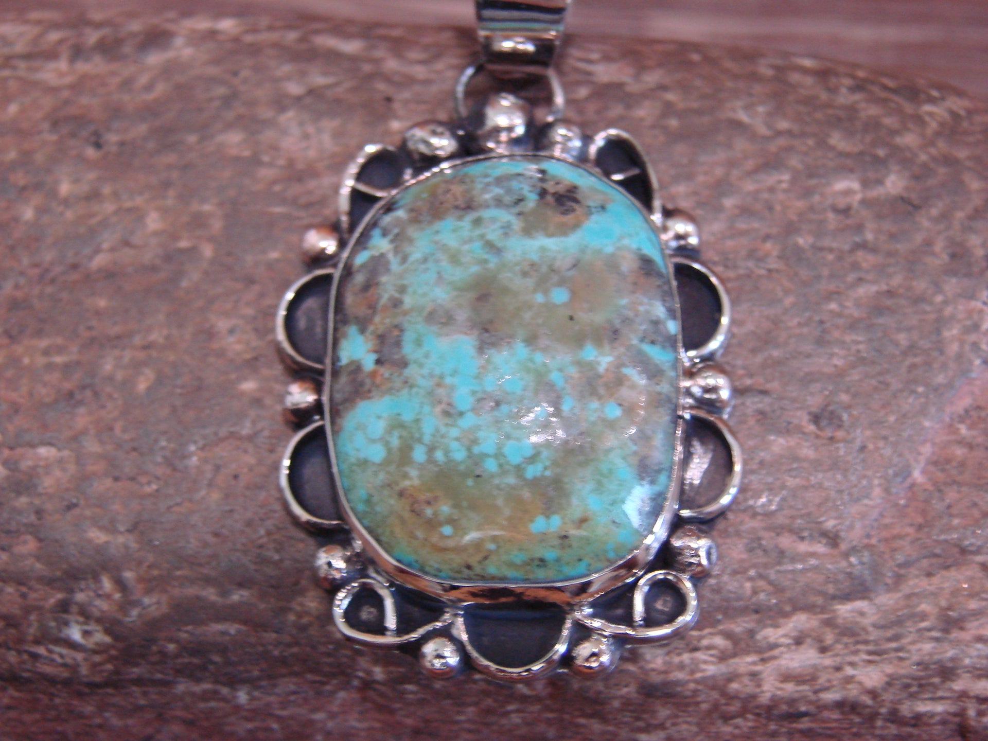 Native American Navajo Nickel Silver & Turquoise Pendant - Cleveland