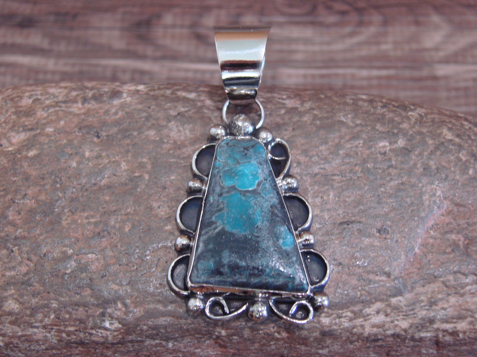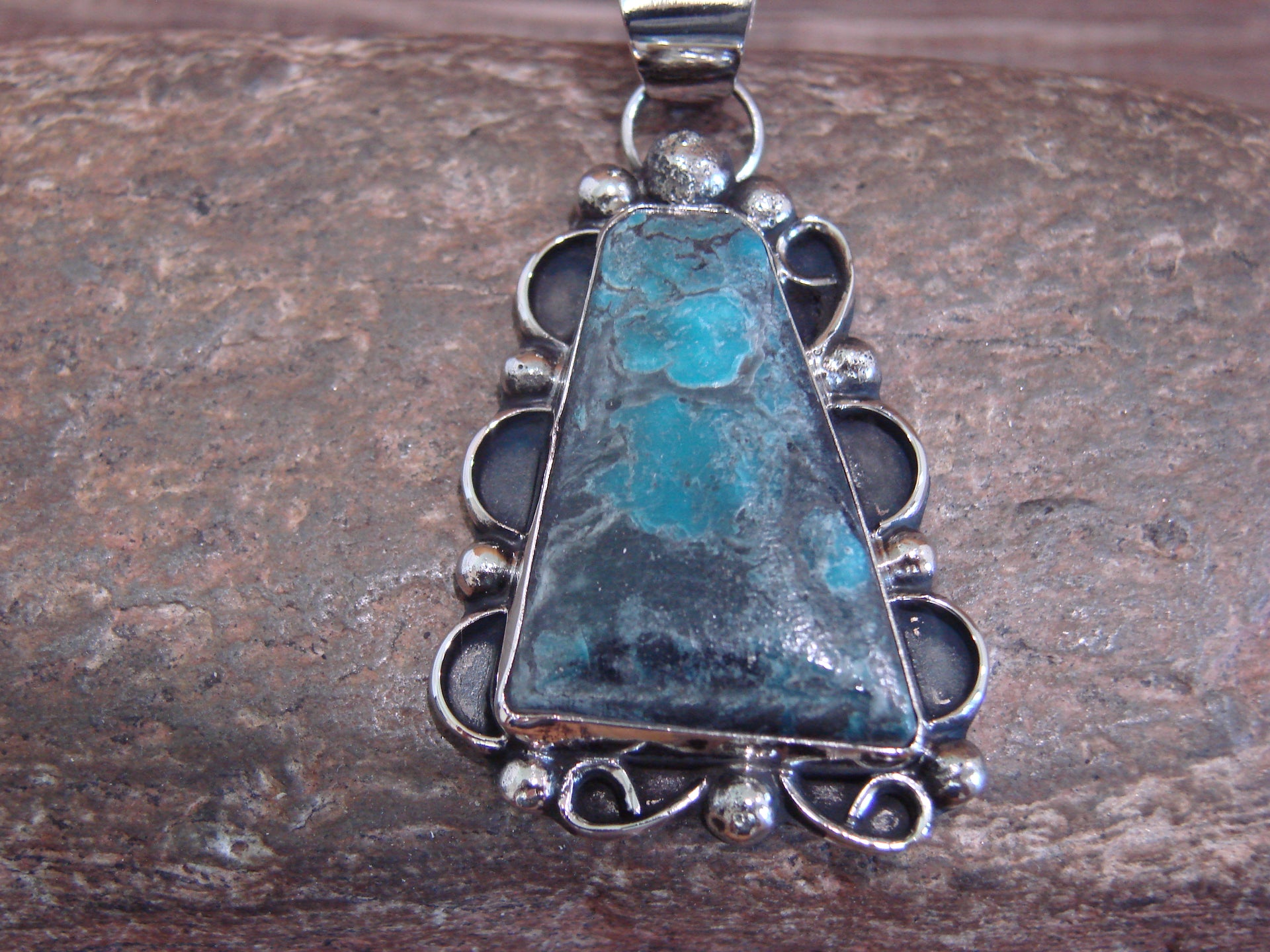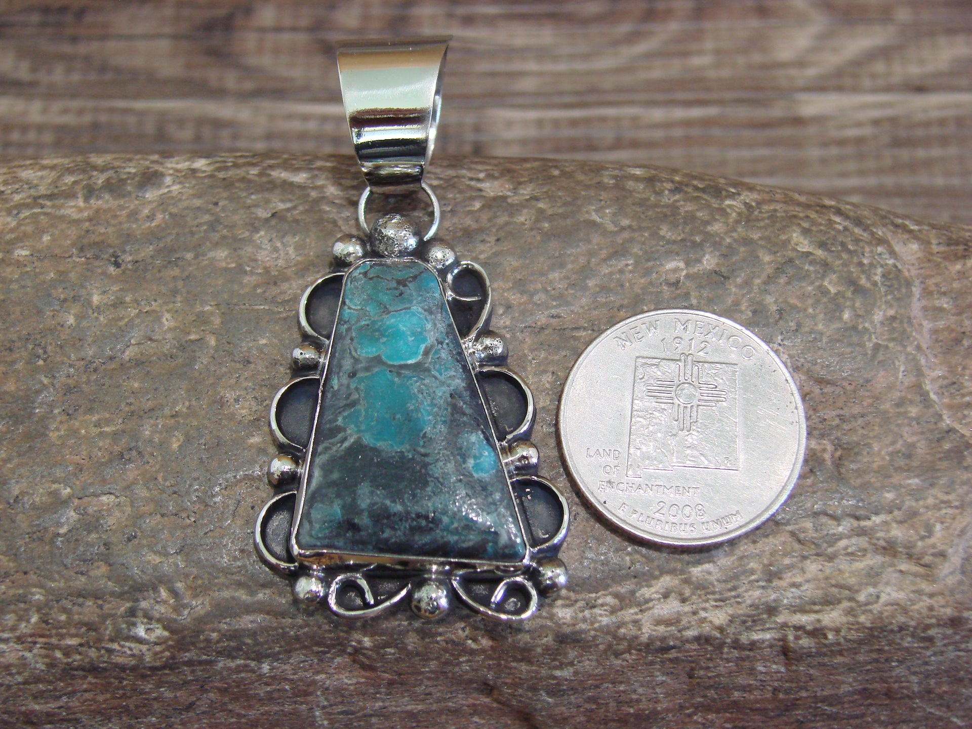 Native American Navajo Nickel Silver & Turquoise Pendant - Cleveland
