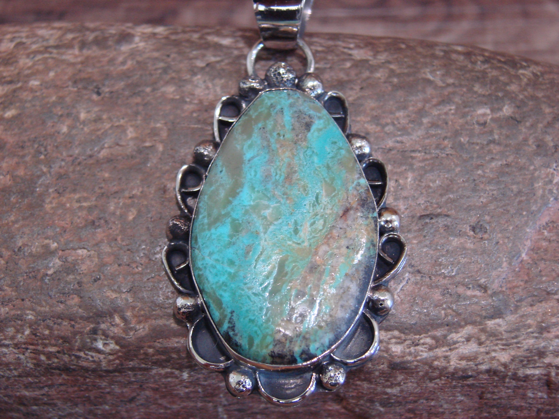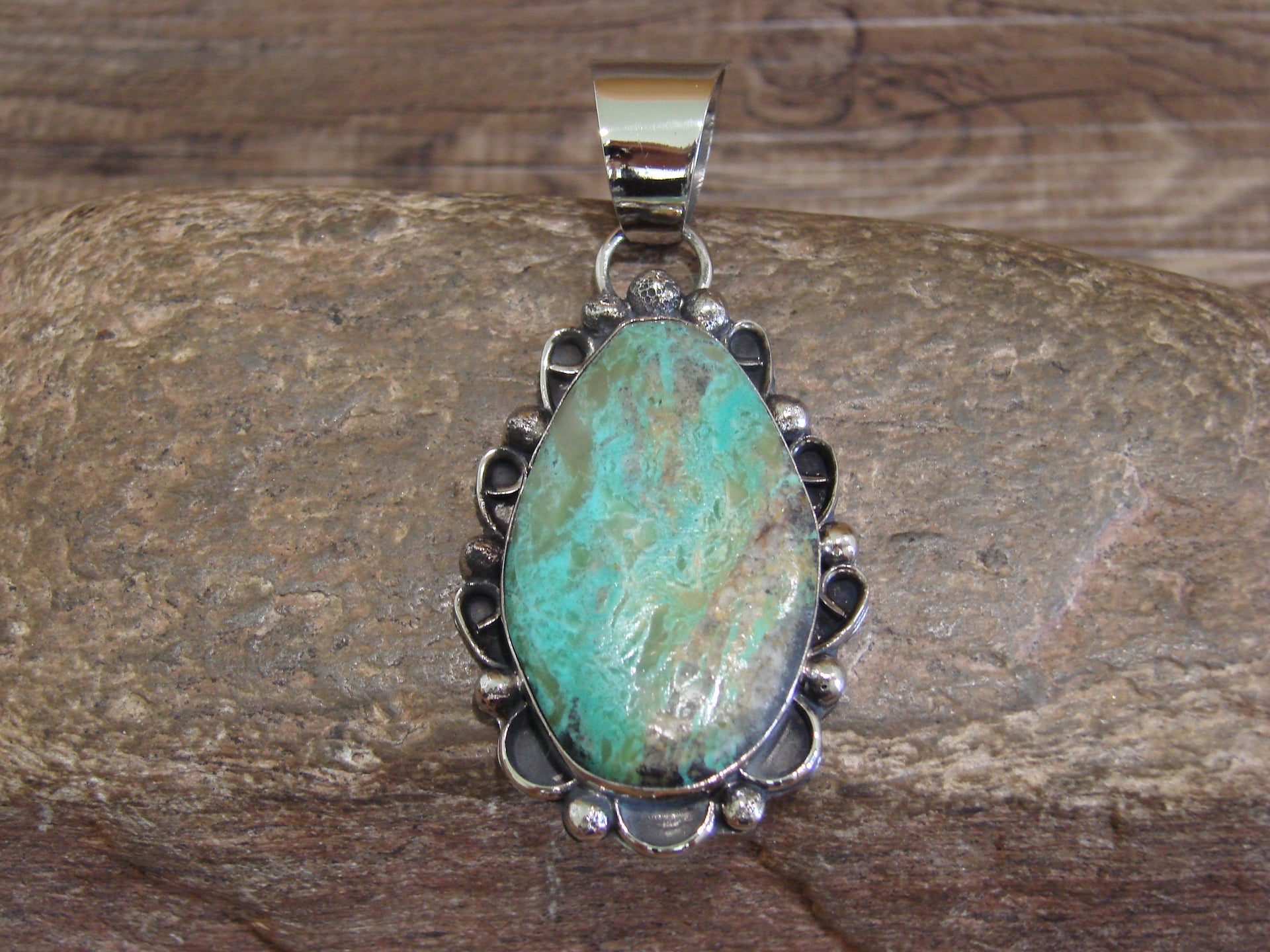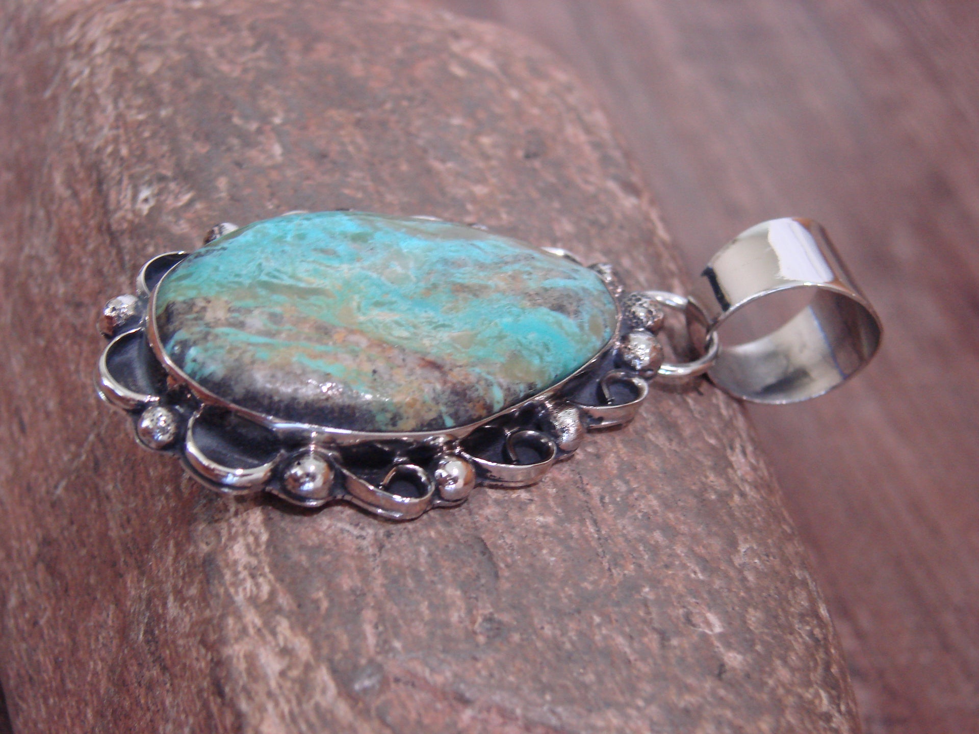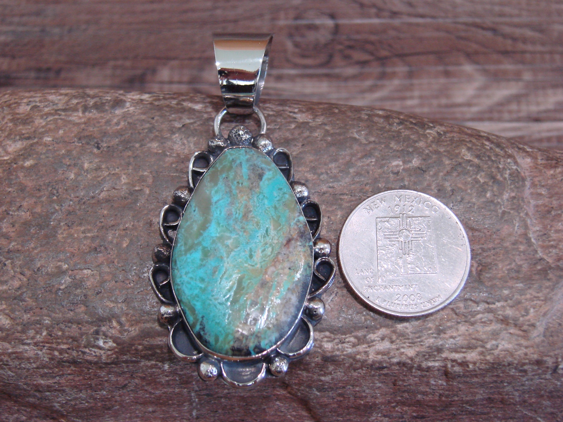 Native American Navajo Nickel Silver & Turquoise Pendant - Cleveland
