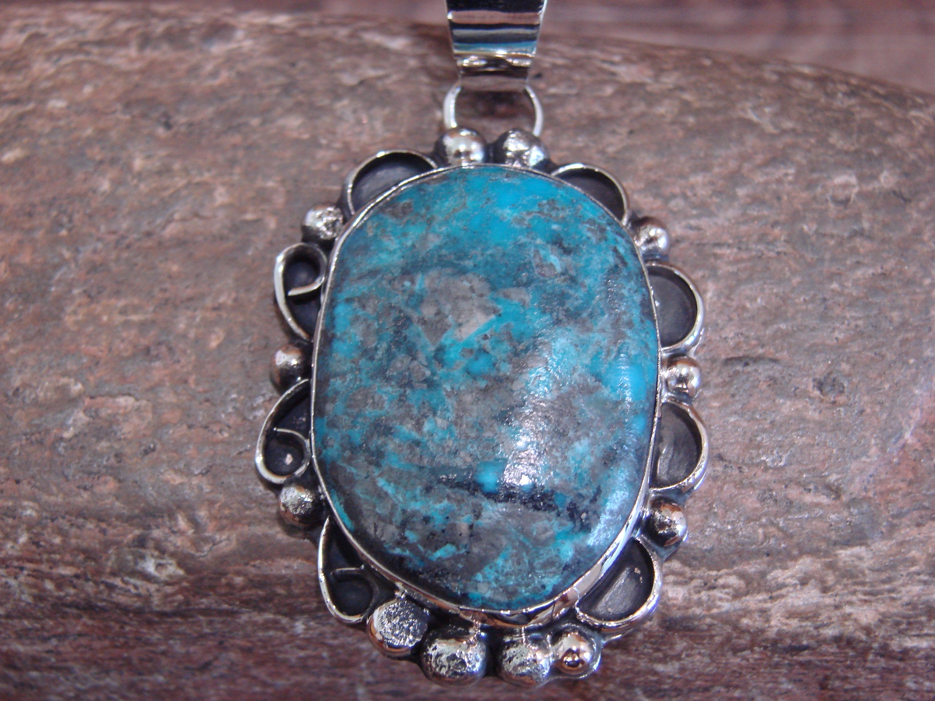 Native American Navajo Nickel Silver & Turquoise Pendant - Cleveland