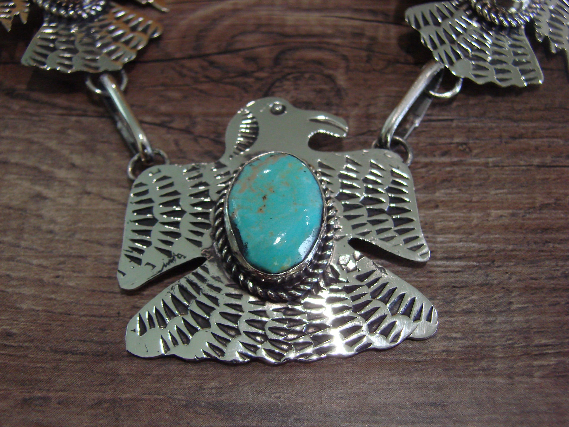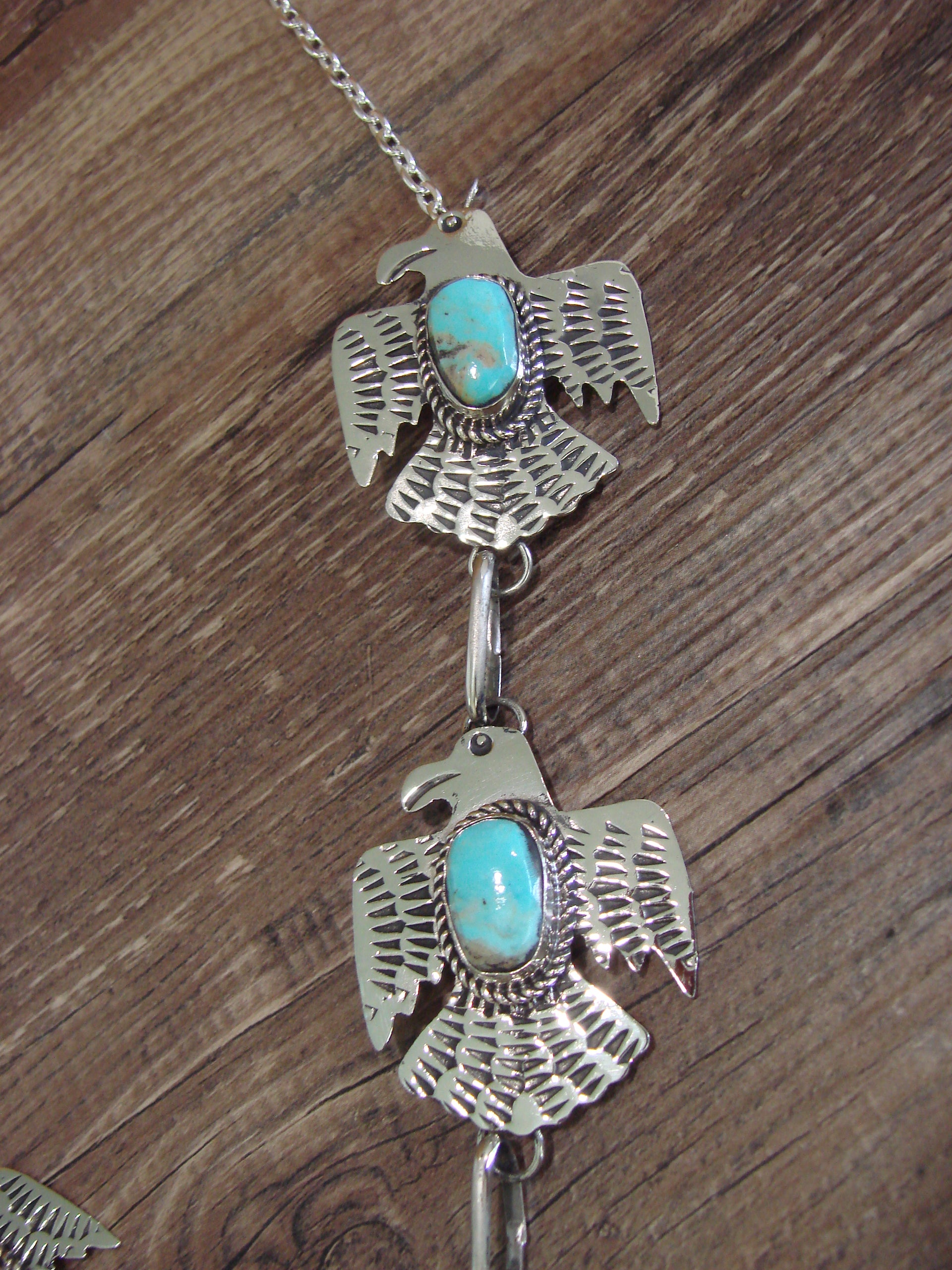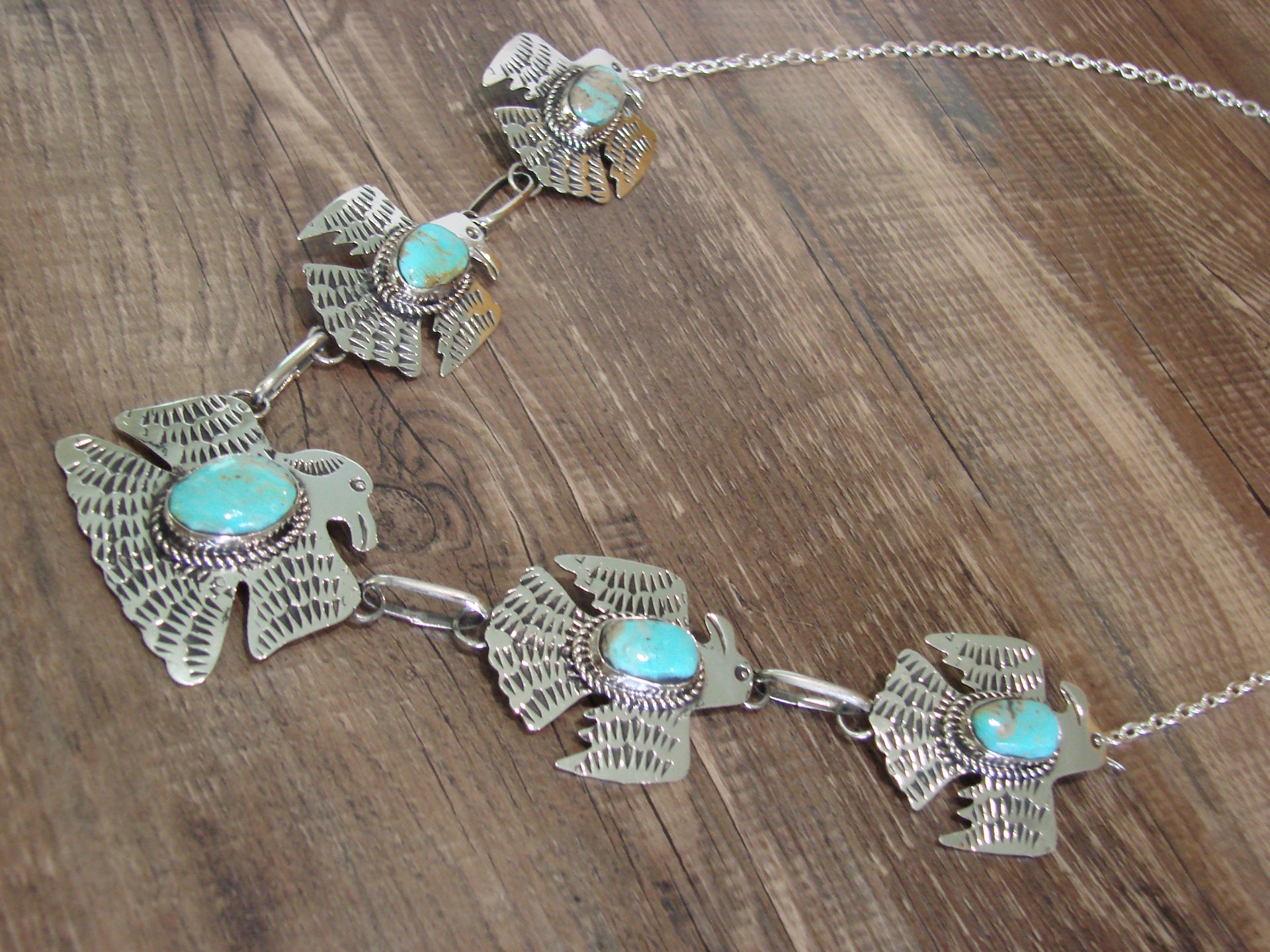 - Native American Nickel Silver & Turquoise Bird Link Necklace by Cleveland