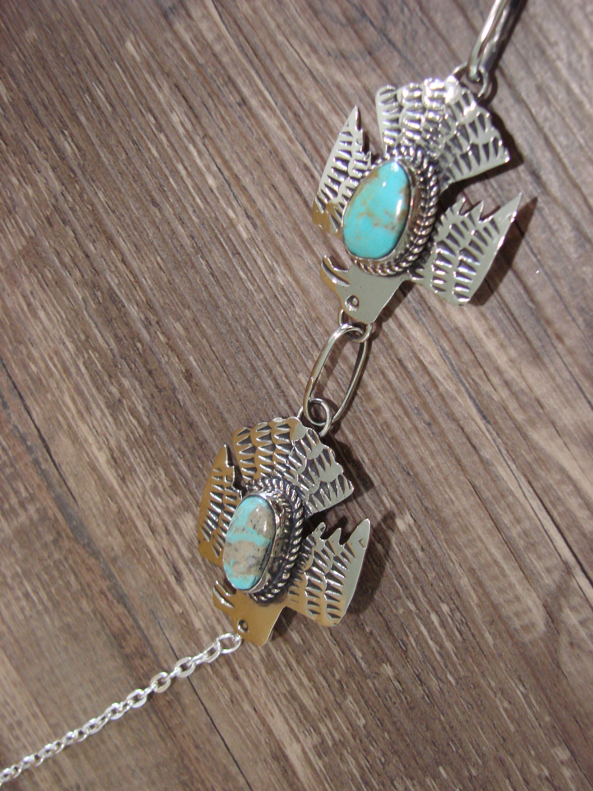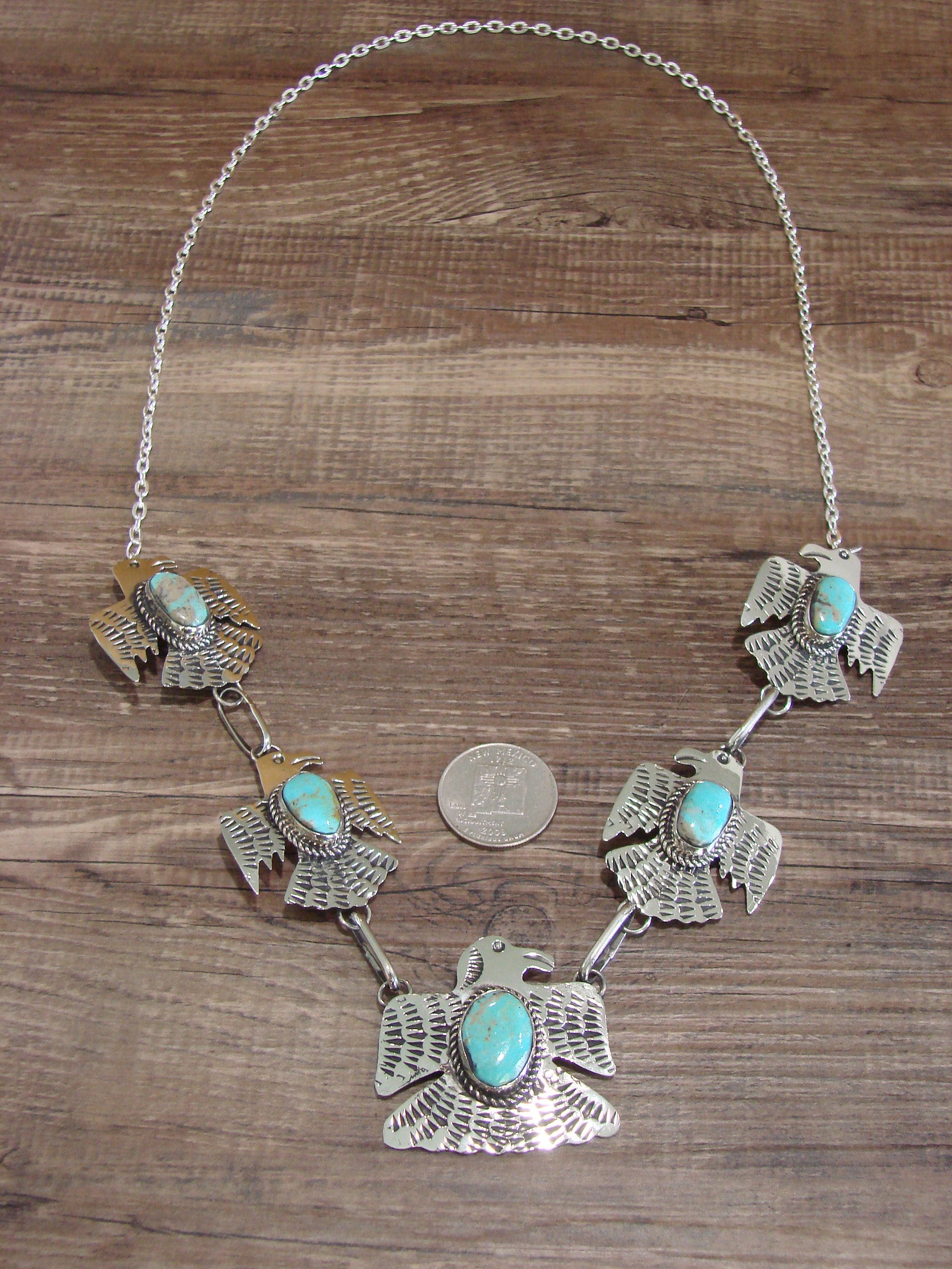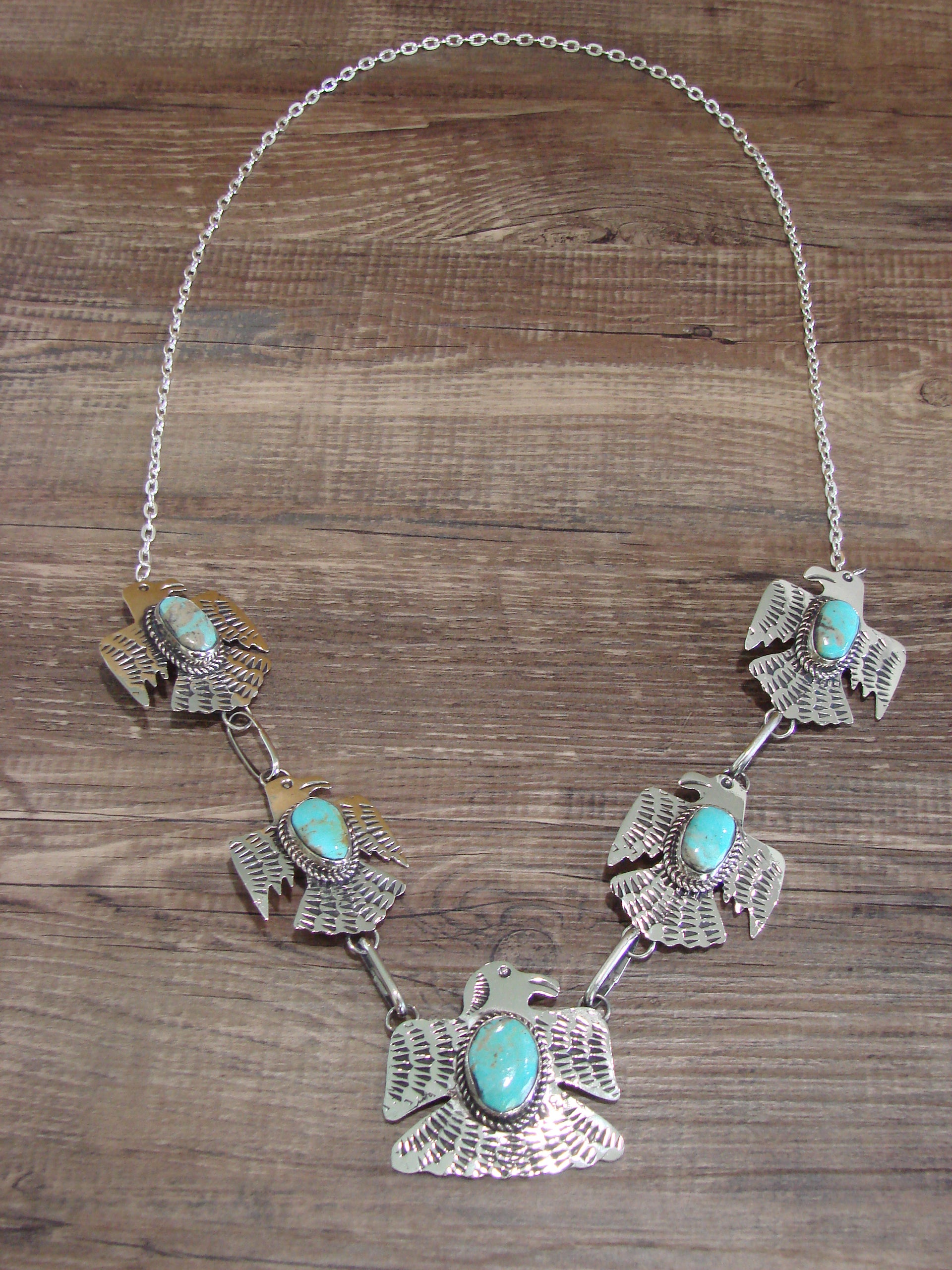 - Native American Nickel Silver & Turquoise Bird Link Necklace by Cleveland