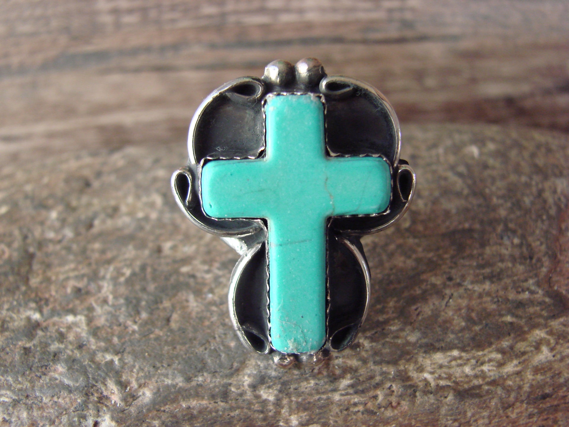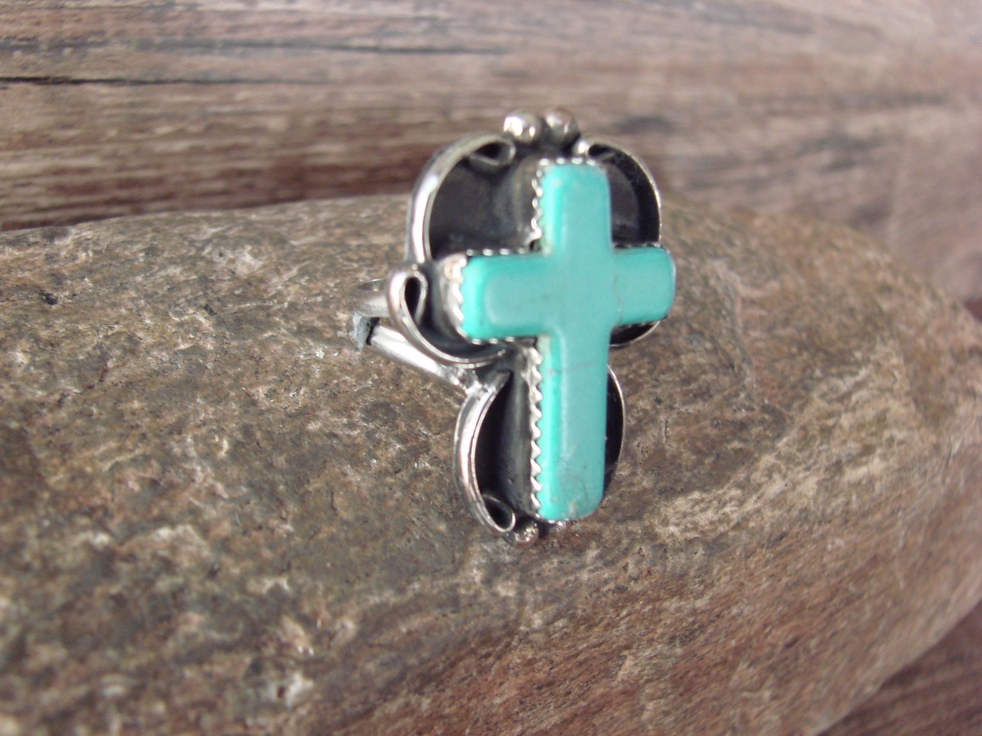 - Native American Nickel Silver & Turquoise Cross Ring by Tolta - Size 6